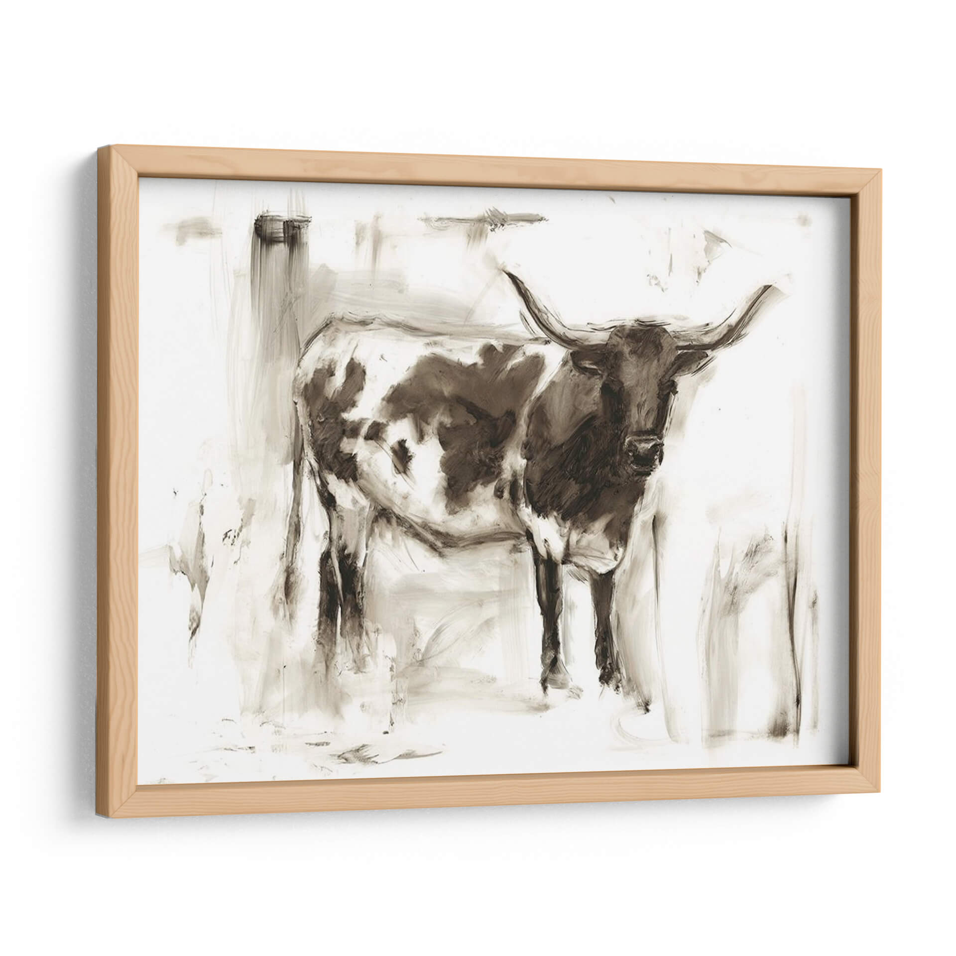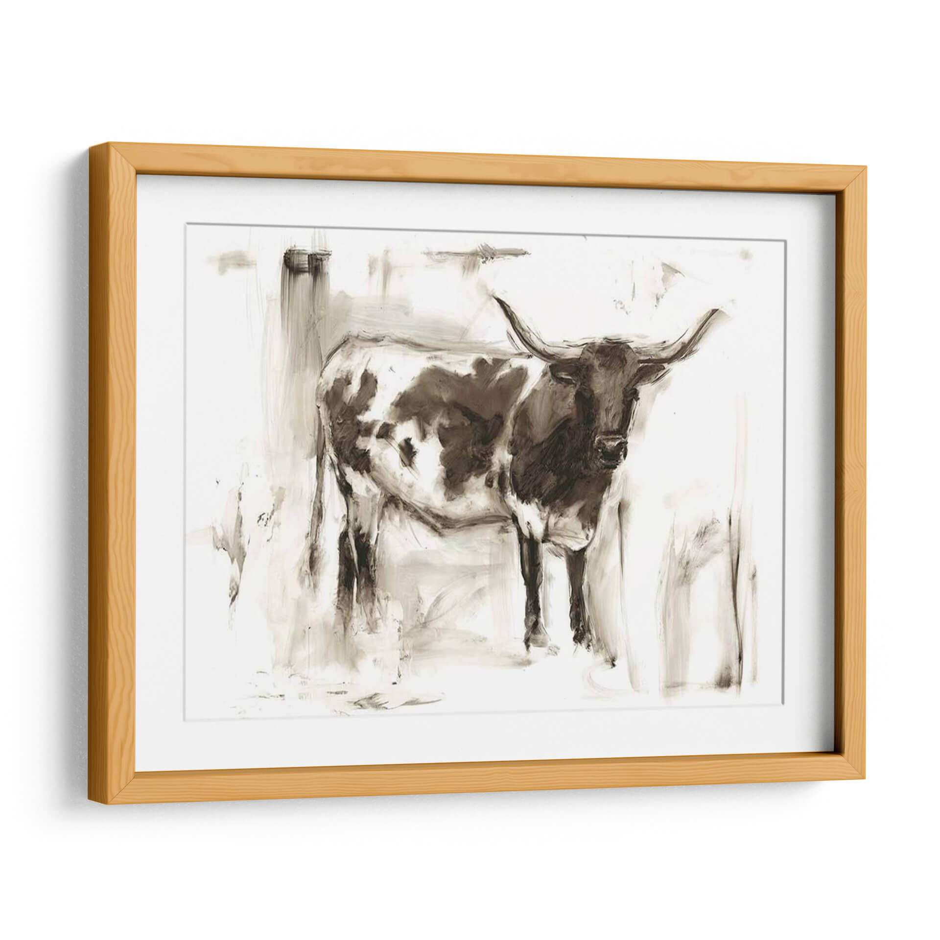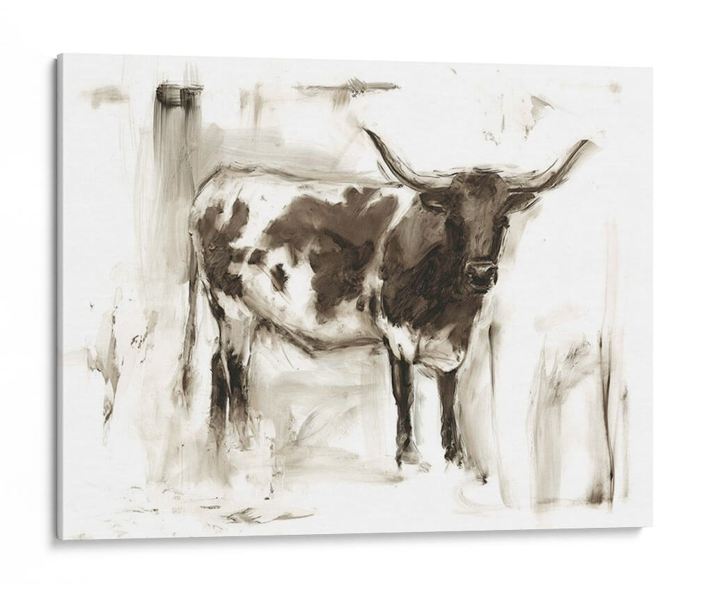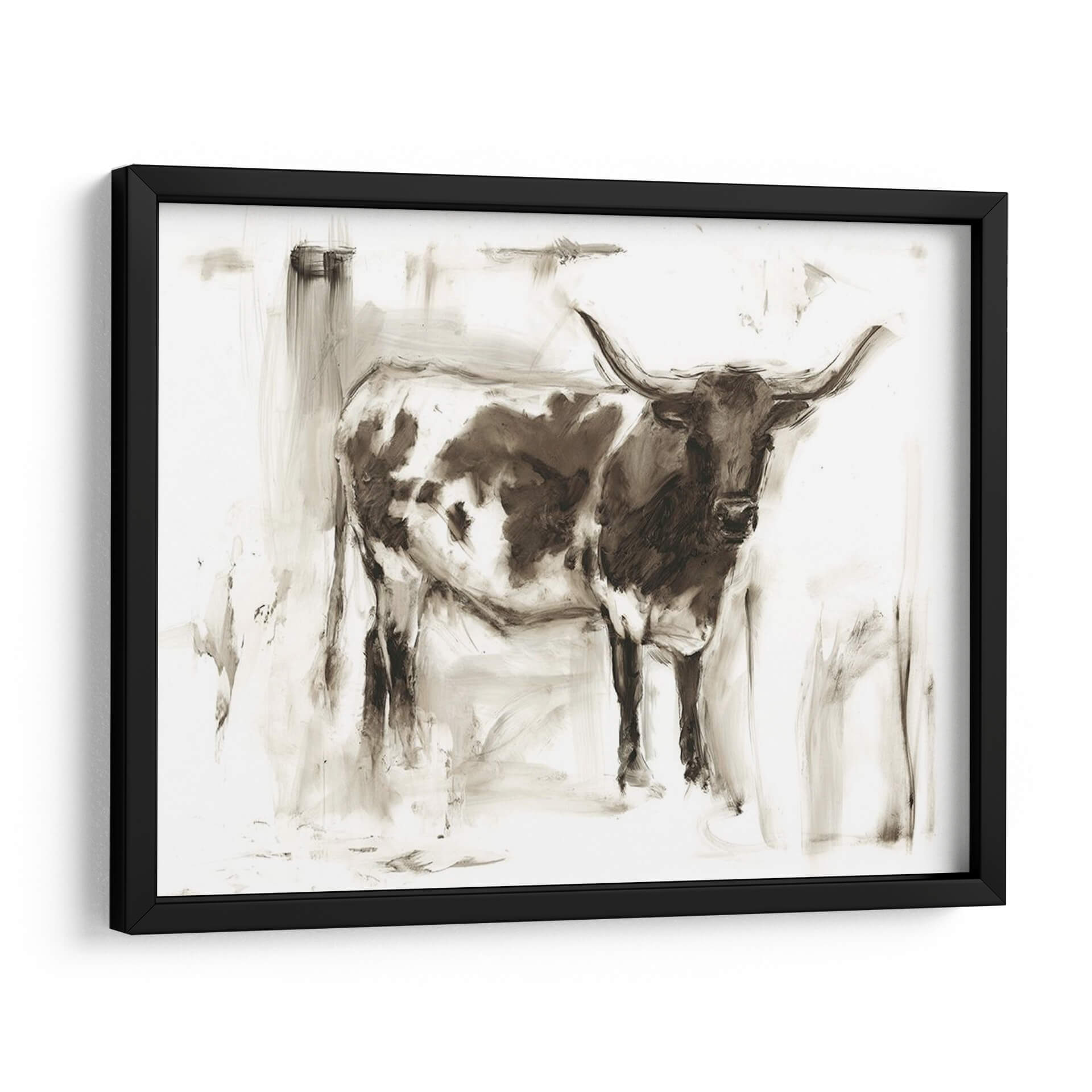 Sumérgete en la majestuosidad rústica con "Estudio De Longhorn I", una obra de arte contemporáneo que captura la esencia de este icónico bovino con una técnica expresionista. El artista Ethan Harper emplea pinceladas audaces y un enfoque monocromático en tonos tierra y sepia para dar vida a una figura imponente sobre un fondo etéreo y texturizado. La composición se centra en la mirada penetrante del longhorn, cuyas curvas majestuosas de los cuernos se extienden con fuerza, mientras que su pelaje, salpicado de contrastes oscuros y claros, añade profundidad y carácter. Esta pieza evoca una sensación de fuerza, resiliencia y una conexión con la naturaleza salvaje, pero a la vez aporta una elegancia sutil a cualquier espacio. Es ideal para añadir un toque de sofisticación moderna a una sala de estar, un estudio o un comedor, creando un punto focal que invita a la contemplación. "Estudio De Longhorn I" no es solo una decoración de pared, es una declaración de estilo que fusiona lo clásico con lo contemporáneo, perfecta para quienes buscan un arte distintivo y lleno de personalidad que resuene con la fuerza y la belleza del mundo natural.