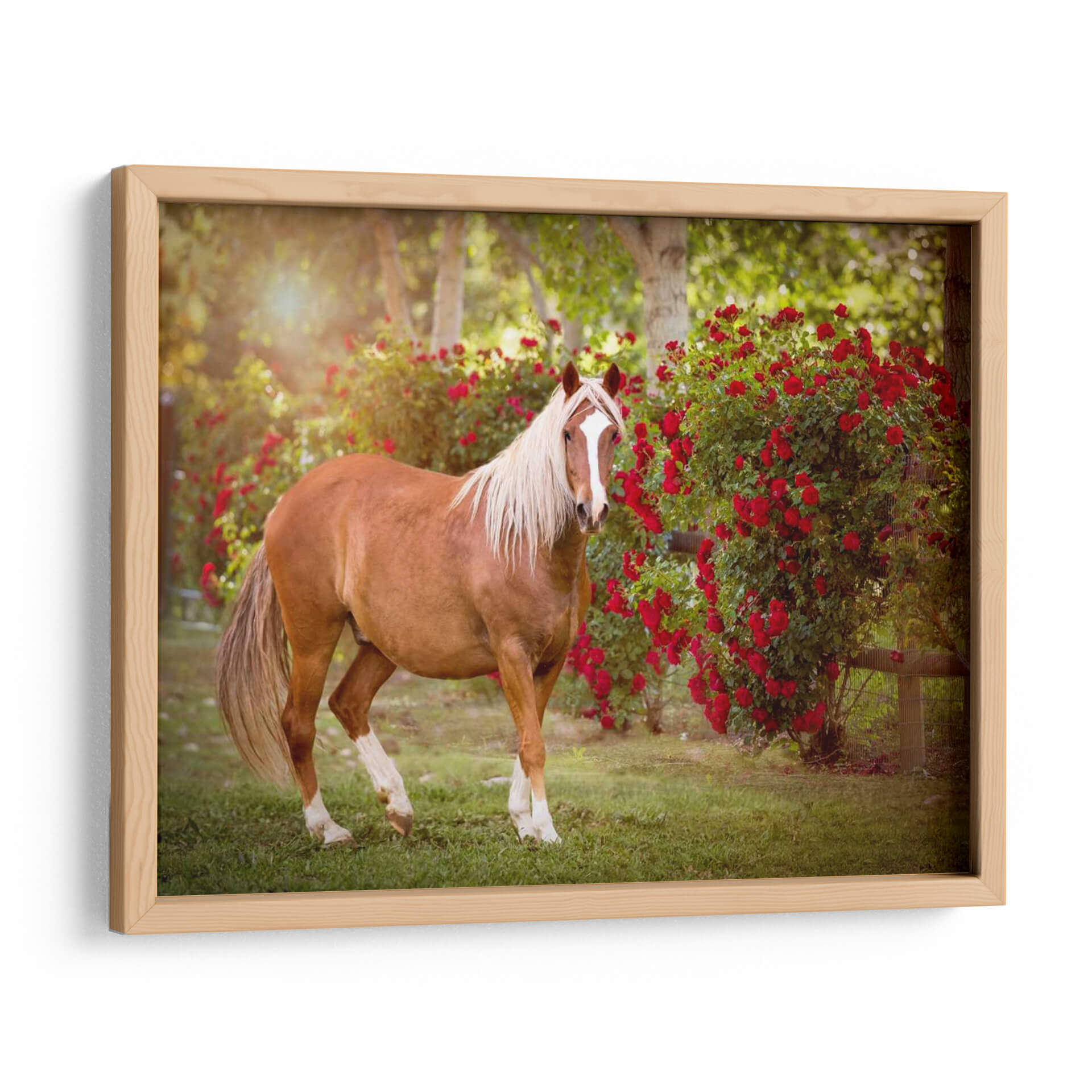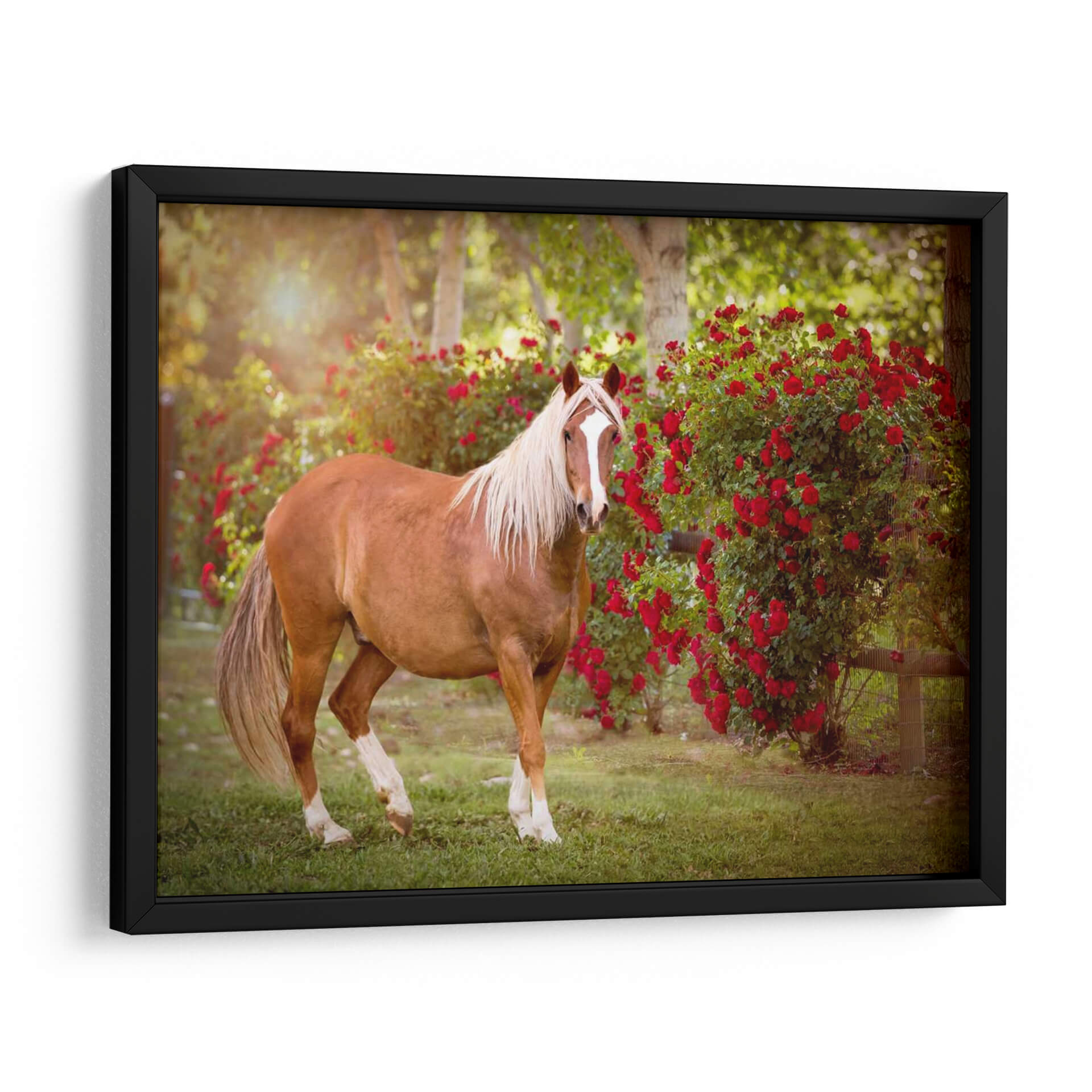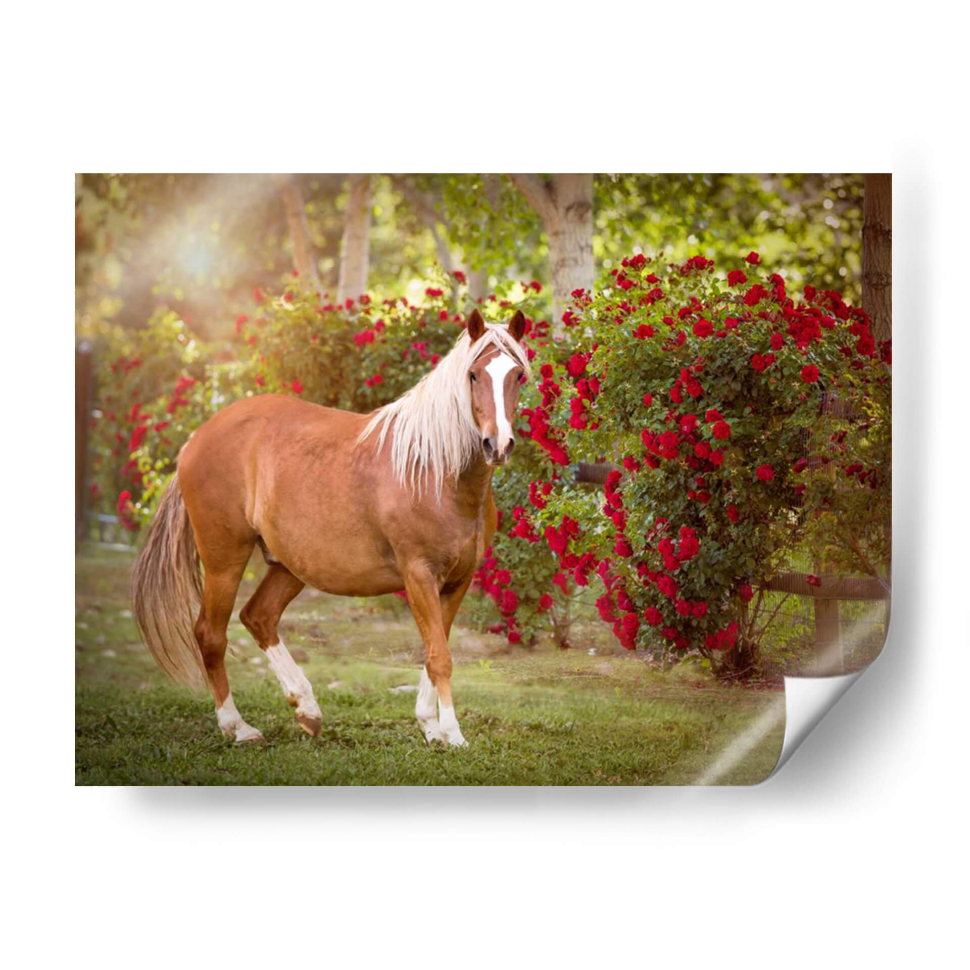 Embárcate en un viaje visual con "Flor Frolick Iv", una cautivadora obra de arte que captura la majestuosidad de un caballo en un entorno idílico. La pieza se centra en un hermoso caballo de pelaje castaño y crines rubias, posicionado en un exuberante jardín salpicado de vibrantes rosales rojos en plena floración. La luz del sol se filtra a través del follaje, creando un ambiente etéreo y cálido que realza la belleza natural de la escena. La composición equilibra la figura del caballo con el entorno, invitando al espectador a sumergirse en la serenidad del paisaje campestre. Los colores, dominados por los tonos tierra del caballo, el verde profundo de la vegetación y el rojo intenso de las rosas, crean una paleta rica y armoniosa que aporta vitalidad y elegancia a cualquier espacio. "Flor Frolick Iv" es ideal para quienes buscan añadir un toque de naturaleza, fuerza y tranquilidad a su hogar u oficina. Este cuadro decorativo es perfecto para salas de estar, dormitorios o estudios, aportando un aire de sofisticación campestre y una conexión con la belleza del mundo natural. Deja que la elegancia atemporal de este caballo y la vitalidad de las flores transformen tu entorno.