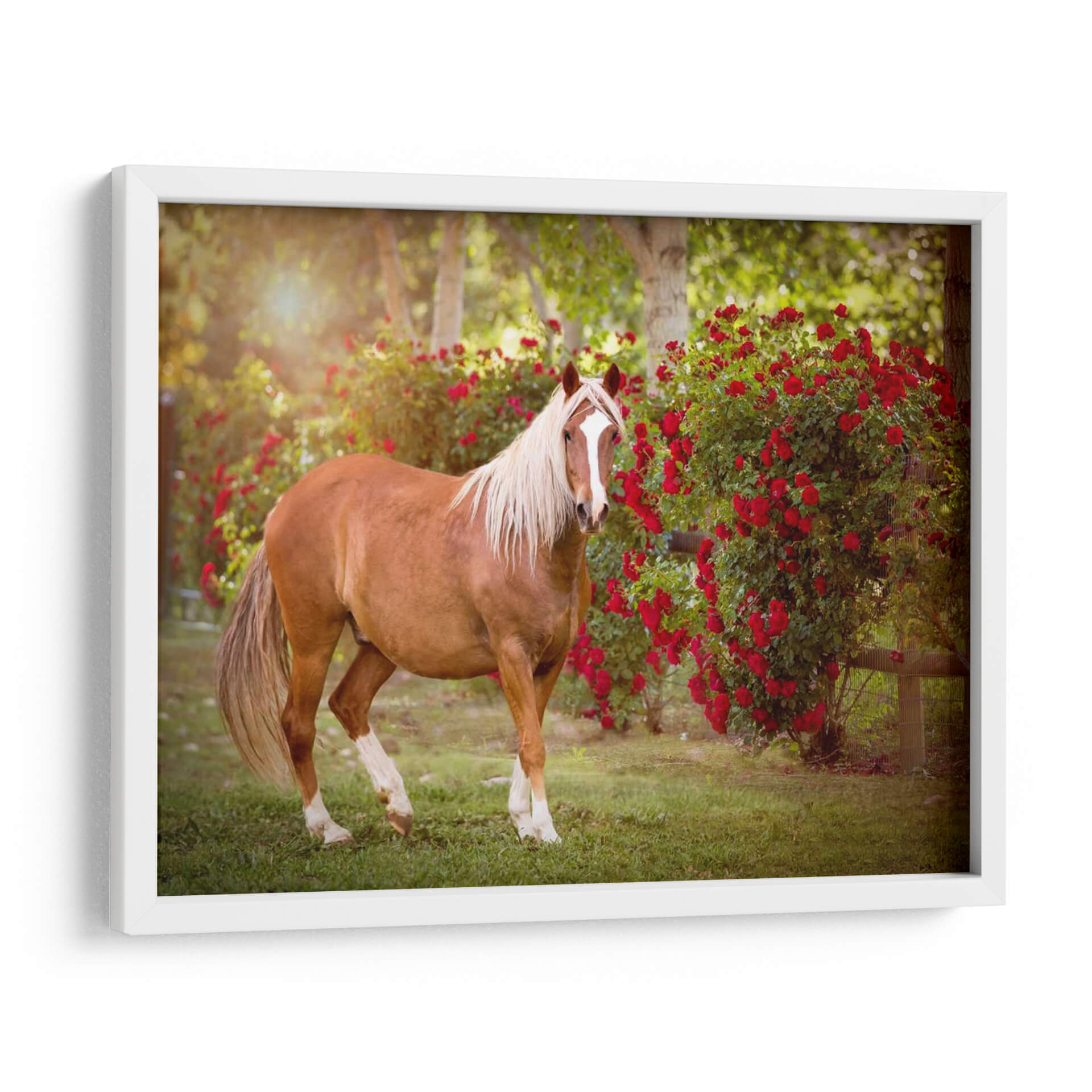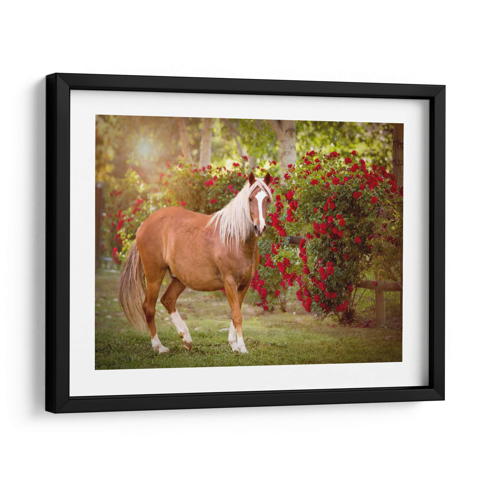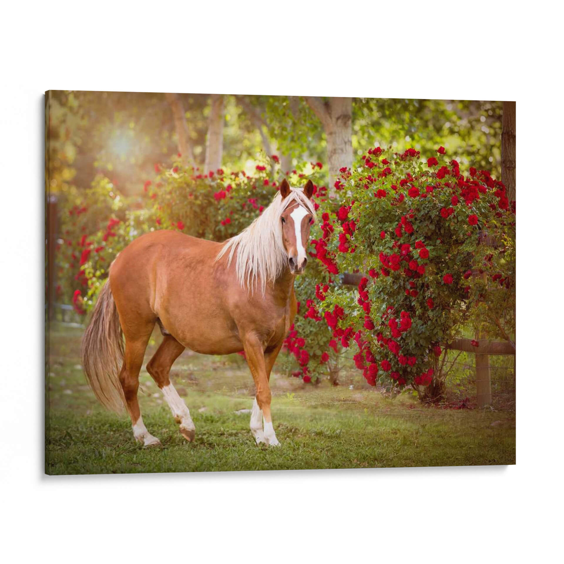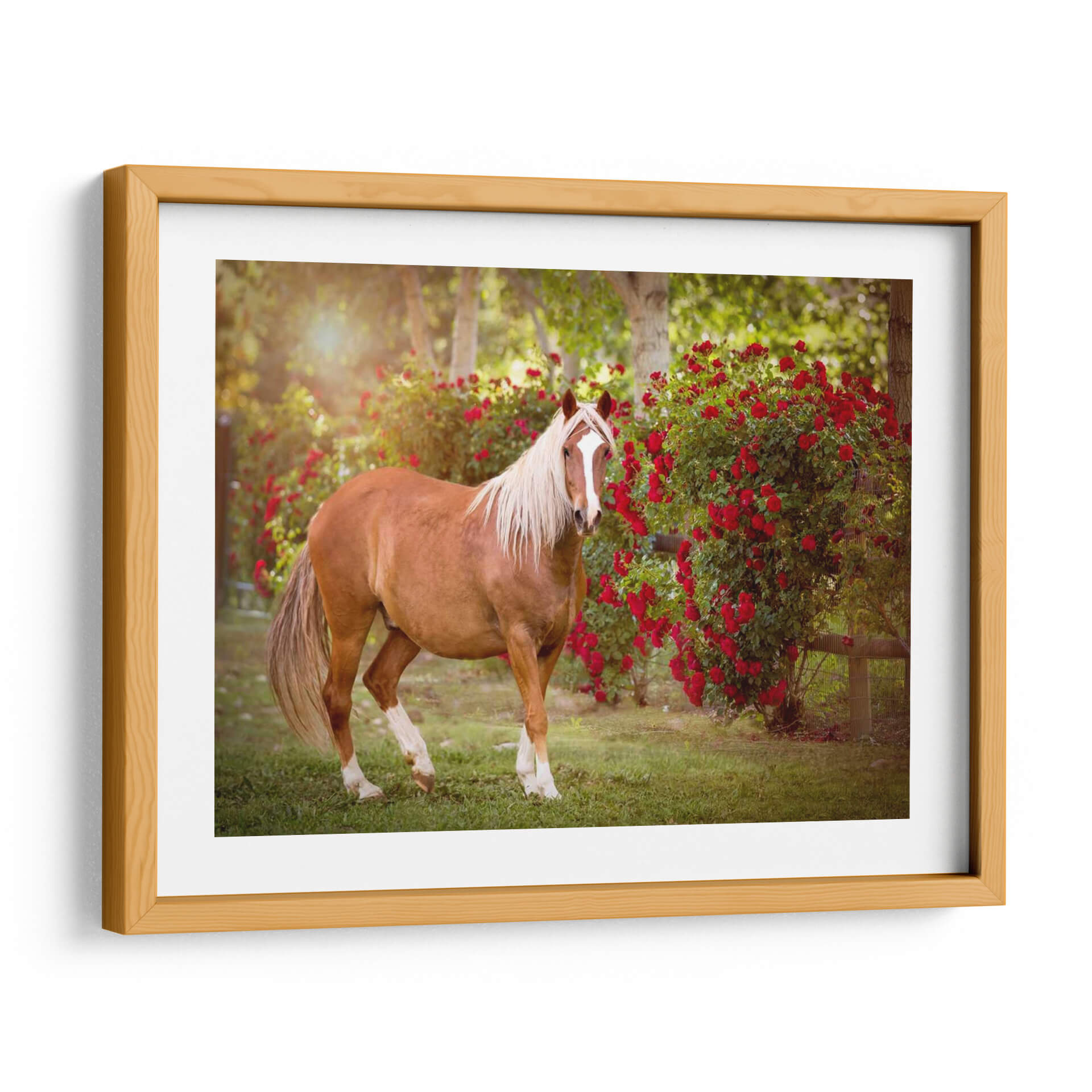 Embárcate en un viaje visual con "Flor Frolick Iv", una cautivadora obra de arte que captura la majestuosidad de un caballo en un entorno idílico. La pieza se centra en un hermoso caballo de pelaje castaño y crines rubias, posicionado en un exuberante jardín salpicado de vibrantes rosales rojos en plena floración. La luz del sol se filtra a través del follaje, creando un ambiente etéreo y cálido que realza la belleza natural de la escena. La composición equilibra la figura del caballo con el entorno, invitando al espectador a sumergirse en la serenidad del paisaje campestre. Los colores, dominados por los tonos tierra del caballo, el verde profundo de la vegetación y el rojo intenso de las rosas, crean una paleta rica y armoniosa que aporta vitalidad y elegancia a cualquier espacio. "Flor Frolick Iv" es ideal para quienes buscan añadir un toque de naturaleza, fuerza y tranquilidad a su hogar u oficina. Este cuadro decorativo es perfecto para salas de estar, dormitorios o estudios, aportando un aire de sofisticación campestre y una conexión con la belleza del mundo natural. Deja que la elegancia atemporal de este caballo y la vitalidad de las flores transformen tu entorno.