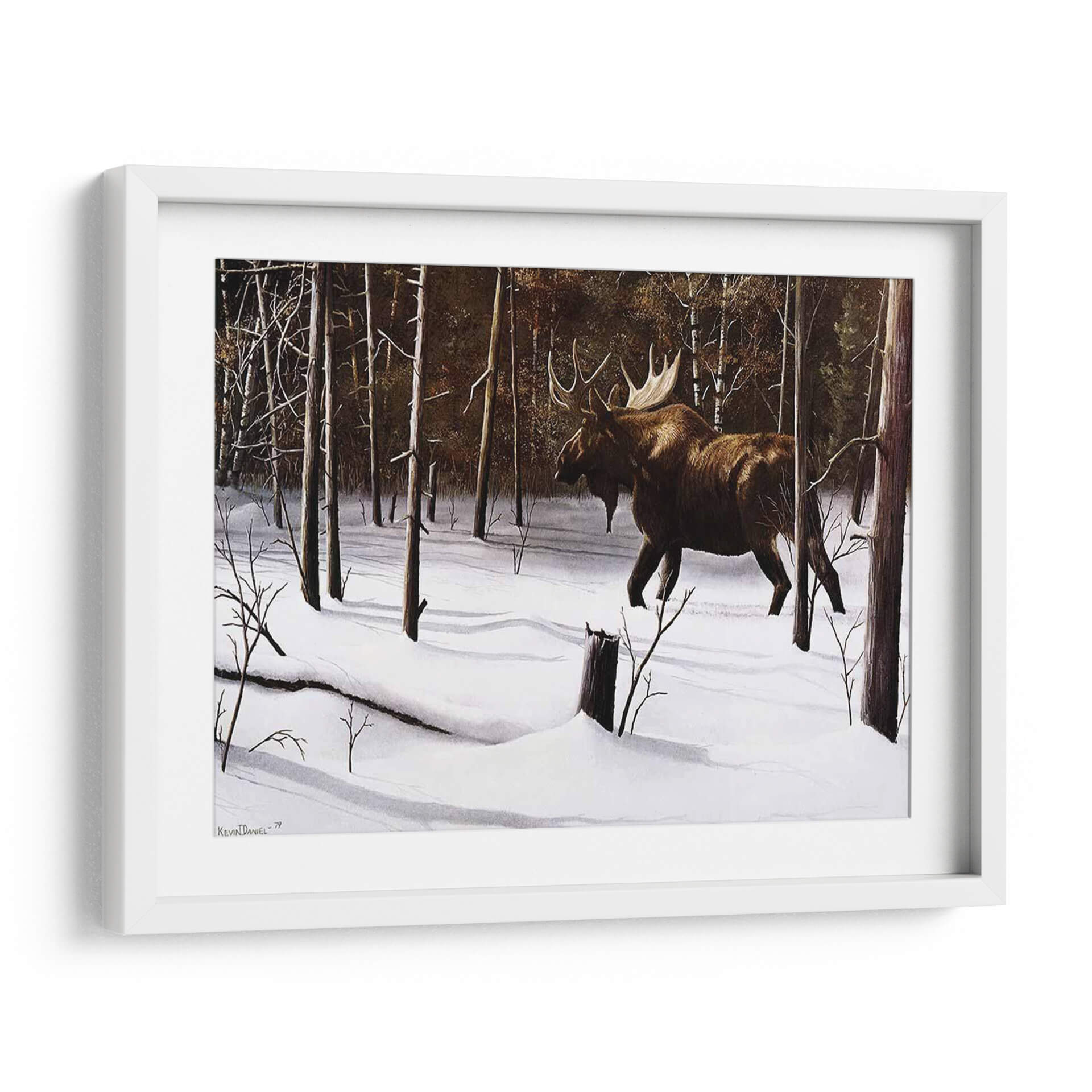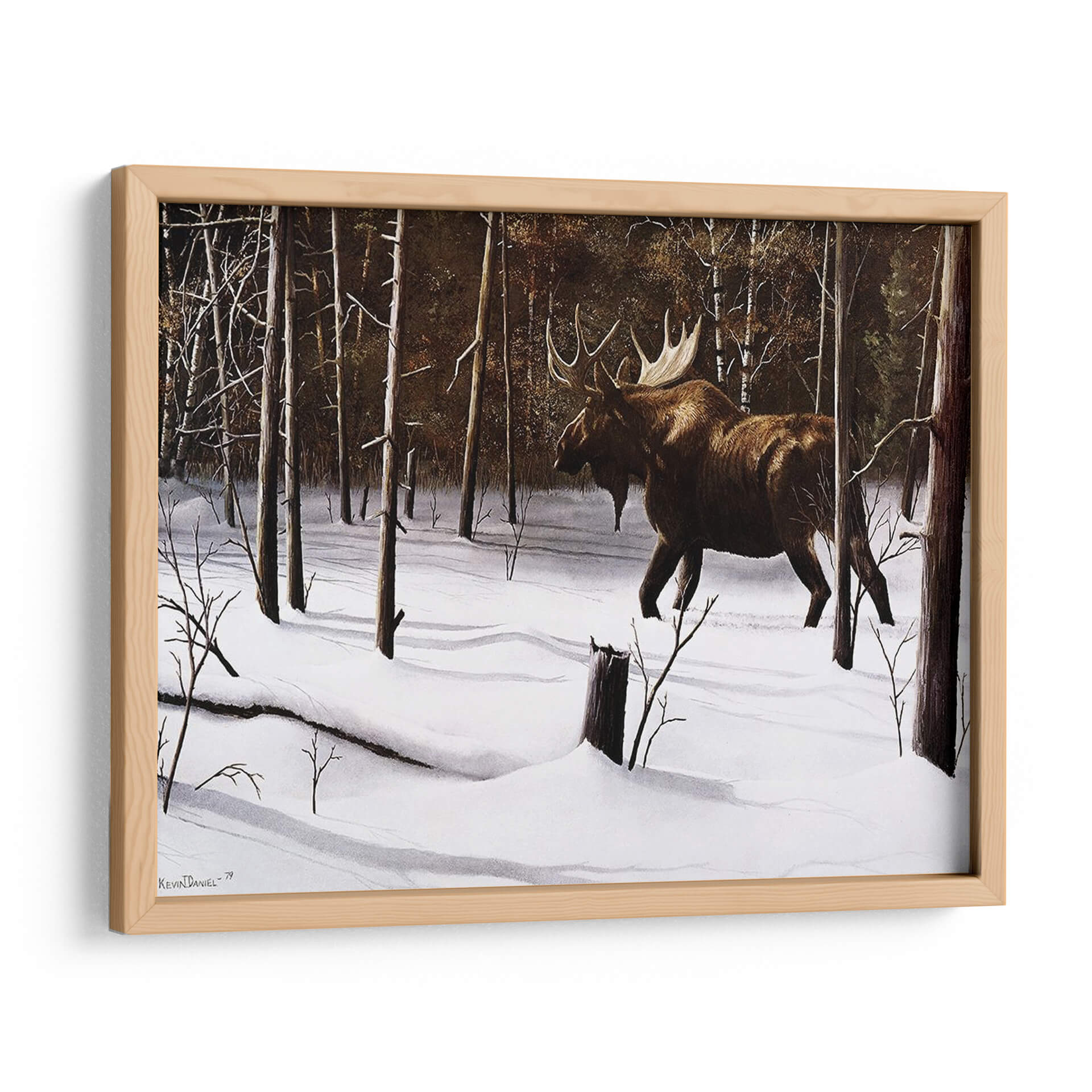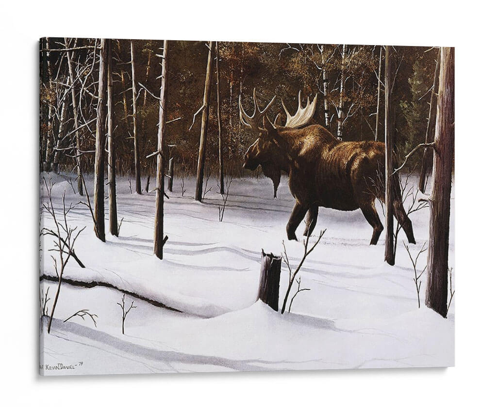 Adéntrate en la serena belleza del invierno con "Forraje de Invierno", una obra de arte cautivadora del artista Kevin Daniel. Esta pieza maestra evoca la majestuosidad de la naturaleza, presentando un imponente alce caminando a través de un paisaje nevado y boscoso. Los intrincados detalles de la corteza de los árboles, la suave textura de la nieve y la imponente figura del alce crean una escena realista y conmovedora. La paleta de colores, dominada por tonos fríos de blanco y azul pálido, acentuada por los marrones cálidos del pelaje del alce y los árboles oscuros, transmite una sensación de tranquilidad invernal y la cruda belleza de la vida silvestre en su hábitat natural. El estilo realista y la composición que enfoca la atención en el animal principal hacen de este cuadro decorativo una adición perfecta para aquellos que aprecian la fauna y los escenarios naturales. Es ideal para espacios que buscan un toque de calma y conexión con la naturaleza, como salas de estar rústicas, estudios o dormitorios, aportando una atmósfera de paz y asombro. Deja que "Forraje de Invierno" traiga la quietud y la majestuosidad de un bosque nevado a tu hogar.