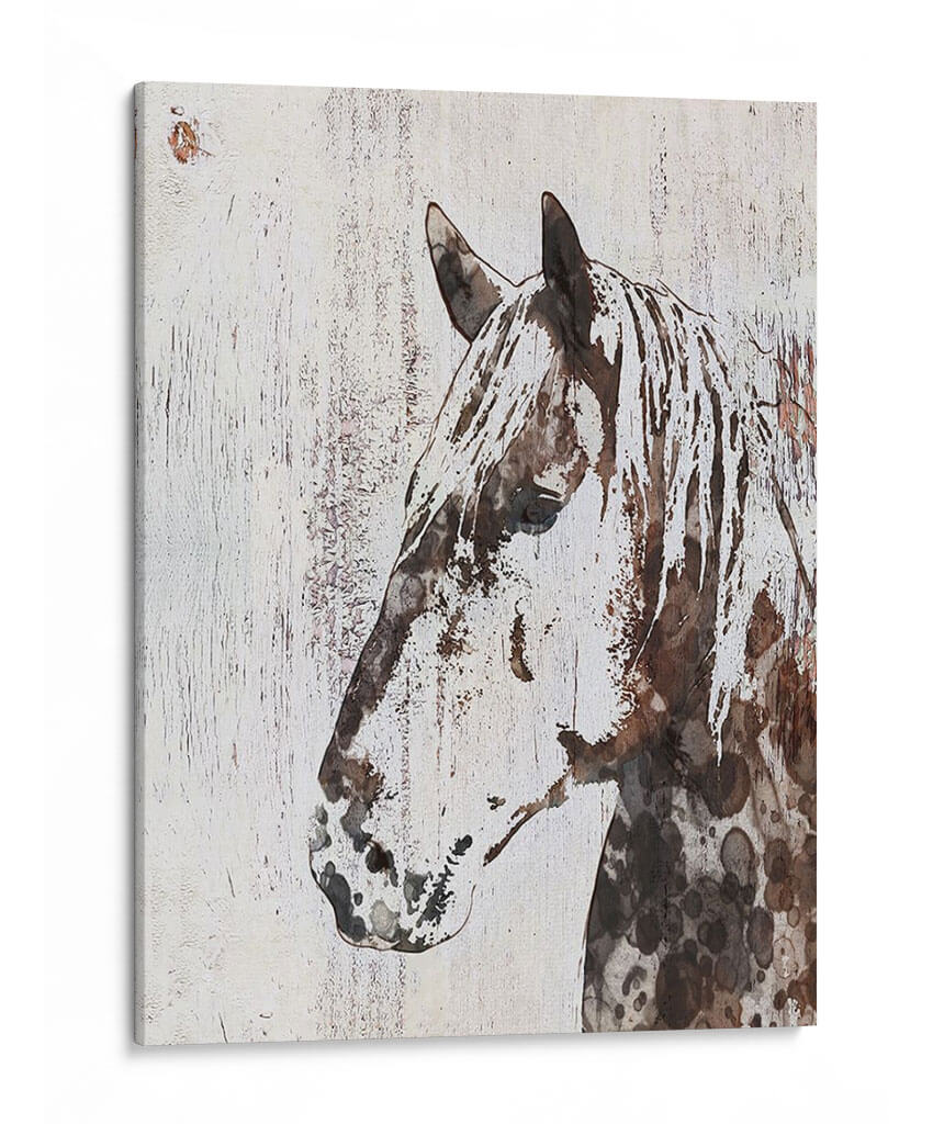Captura la majestuosidad y el espíritu indomable con este cautivador cuadro decorativo "Galaxy Horse III" de Irena Orlov. La obra presenta un detallado retrato de un caballo en perfil, con una textura que evoca la madera rústica y un toque de misterio galáctico. La paleta de colores, dominada por blancos crudos, grises y marrones profundos, crea una atmósfera serena pero poderosa. El estilo artístico combina elementos figurativos con una técnica que sugiere acuarela o tinta salpicada, resultando en un efecto visual dinámico y orgánico. Las manchas de color y las líneas fluidas dan vida al pelaje del caballo, sugiriendo movimiento y carácter. Este cuadro decorativo es ideal para añadir un punto focal de elegancia rústica y contemporánea a tu sala de estar, dormitorio o estudio. Su versatilidad permite integrarlo en decoraciones de estilo moderno, rústico o incluso ecléctico, aportando una dosis de naturaleza salvaje y arte abstracto a tu hogar. Imagina la presencia imponente de este caballo observándote, invitando a la reflexión y añadiendo un toque de sofisticación única a tu espacio personal. Una pieza que trasciende lo ordinario para convertirse en un verdadero tesoro decorativo.