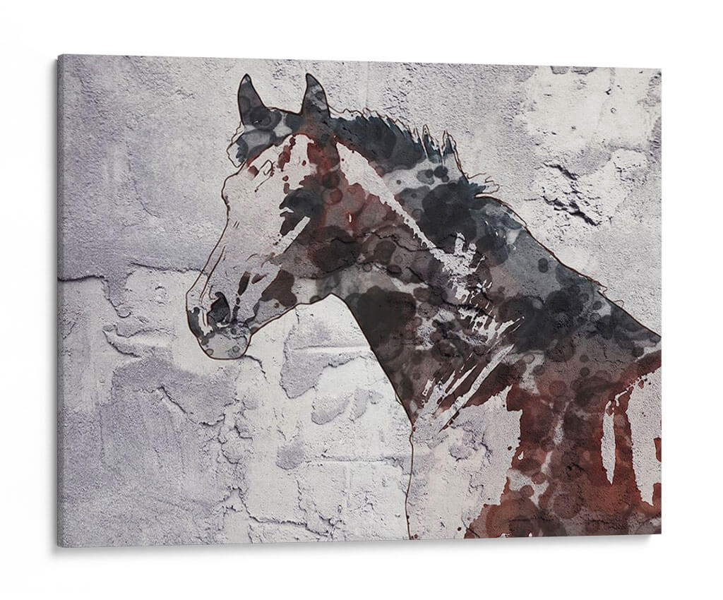 Sumérgete en la majestuosidad y la fuerza indómita con este cautivador cuadro decorativo de un caballo. La obra de Irena Orlov captura la esencia de un equino en un estilo artístico único que fusiona la potencia de la naturaleza con una estética contemporánea. Los vibrantes tonos tierra, ocres y grises se entrelazan sobre un fondo texturizado que simula un muro de piedra, creando una profundidad visual fascinante. La técnica de salpicaduras y trazos audaces otorga a la pieza un dinamismo casi tangible, invitando a la contemplación de la elegancia y la energía del animal. Este cuadro es ideal para añadir un toque de carácter y sofisticación a cualquier espacio, ya sea una sala de estar moderna, un estudio o un recibidor. Su versatilidad cromática y temática lo convierte en una pieza focal que inspira conversaciones y evoca una conexión primal con el mundo natural. Transforma tu hogar u oficina con esta obra de arte que celebra la nobleza del caballo y el poder expresivo del arte abstracto.