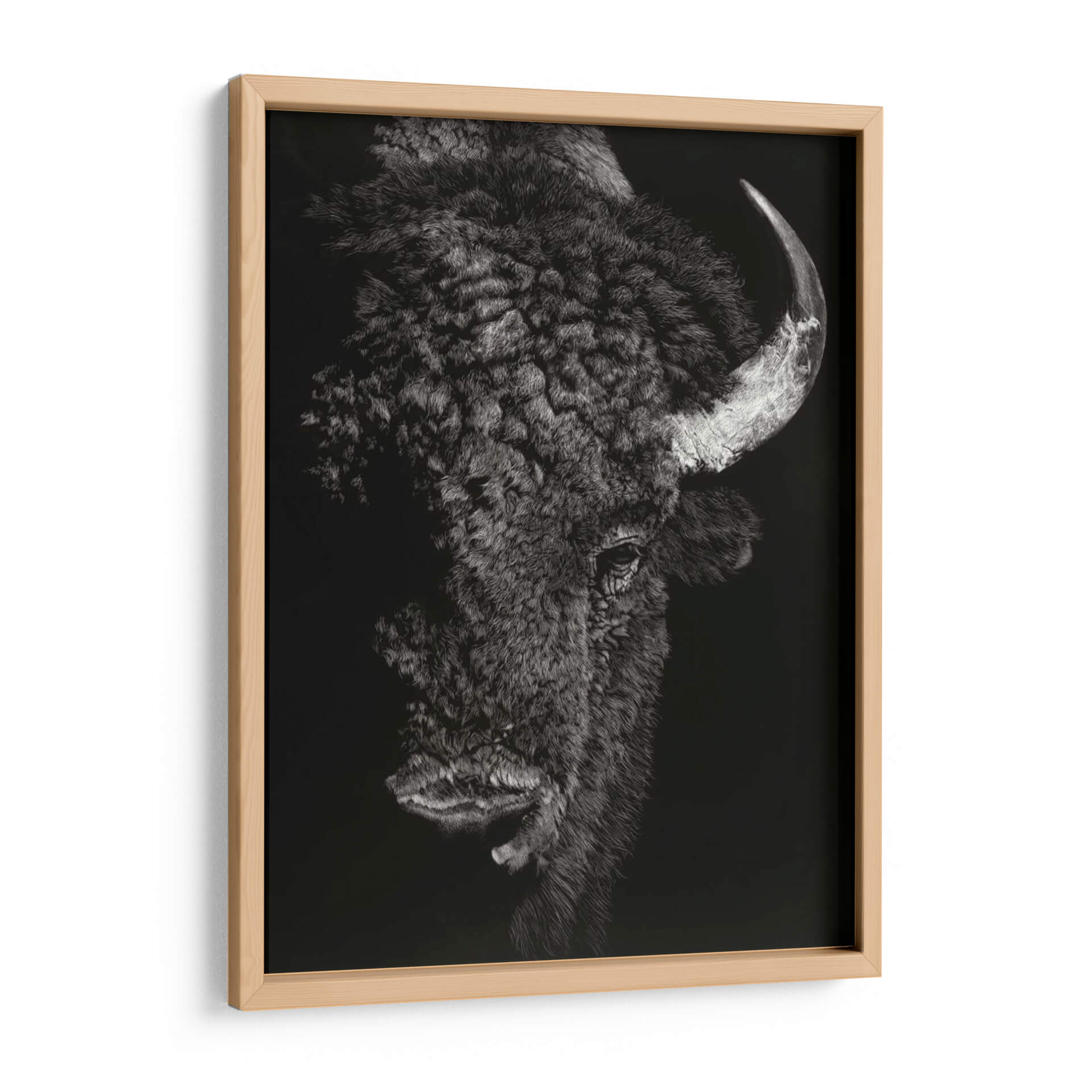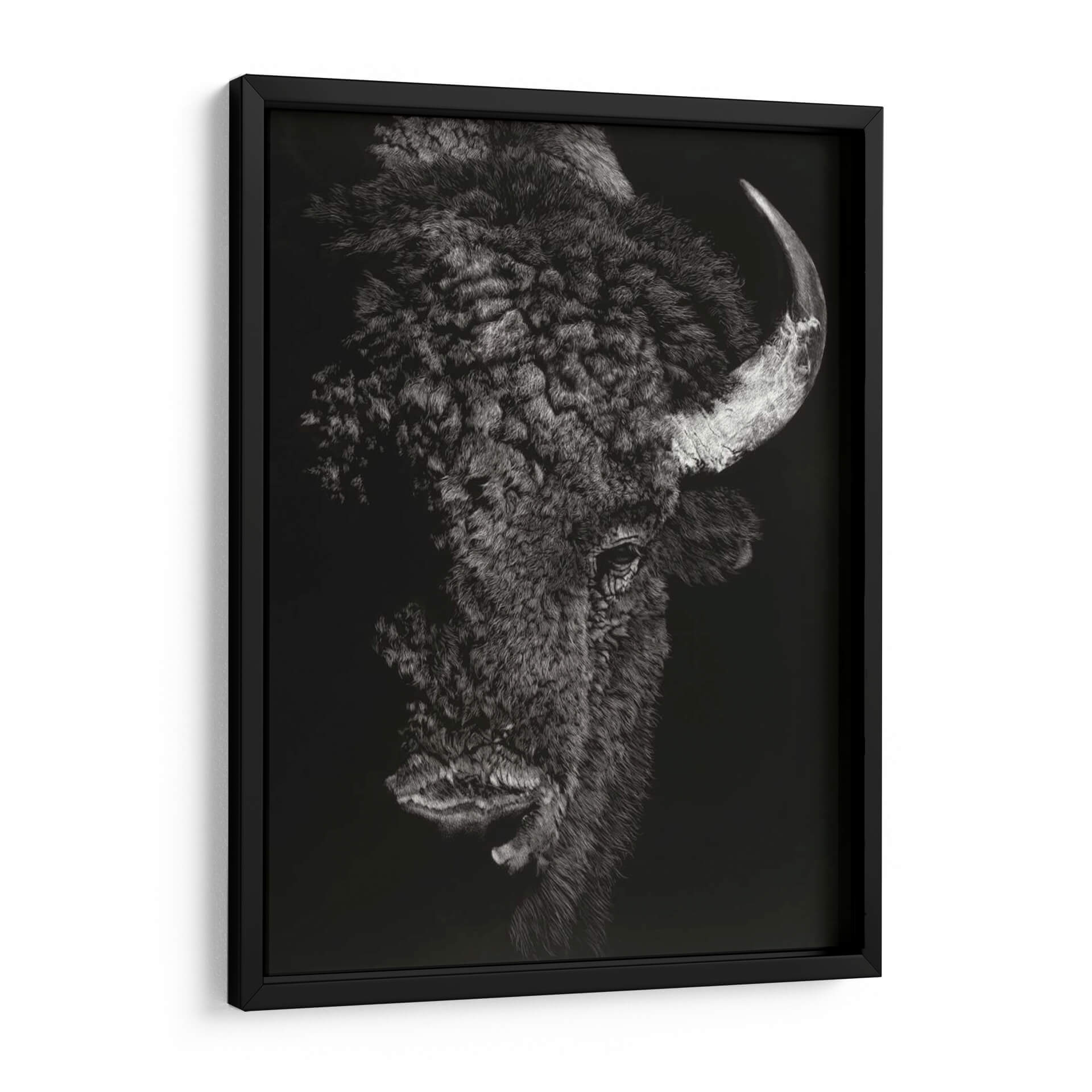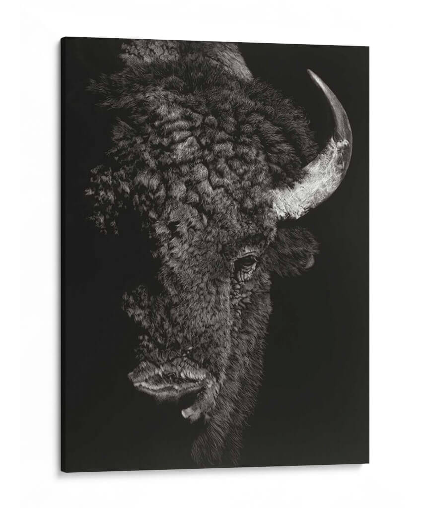Captura la fuerza indómita y la majestuosidad salvaje con "Glimpse Negro I", una obra de arte que evoca la esencia del bisonte en un impactante retrato monocromático. La artista Julie T. Chapman nos presenta un primer plano detallado de este poderoso animal, donde cada hebra de su pelaje parece cobrar vida, creando una textura profunda y casi táctil. La iluminación dramática resalta los contornos del rostro del bisonte, enfocándose en su mirada intensa y penetrante, que transmite una mezcla de serenidad y poder ancestral. La paleta de colores, predominantemente en tonos negros y grises con sutiles brillos, crea una atmósfera de misterio y elegancia atemporal, haciendo que esta pieza sea un punto focal cautivador en cualquier espacio. Este cuadro decorativo es ideal para aquellos que buscan añadir un toque de naturaleza salvaje y sofisticación a su hogar u oficina. Su estilo realista, con un enfoque en la captura de la esencia del animal, lo convierte en una adición perfecta para salones modernos, estudios o cualquier ambiente que se beneficie de una declaración visual audaz y conmovedora. "Glimpse Negro I" no es solo una imagen, es una invitación a contemplar la resistencia y la belleza indómita de la naturaleza, aportando carácter y profundidad a tu decoración.