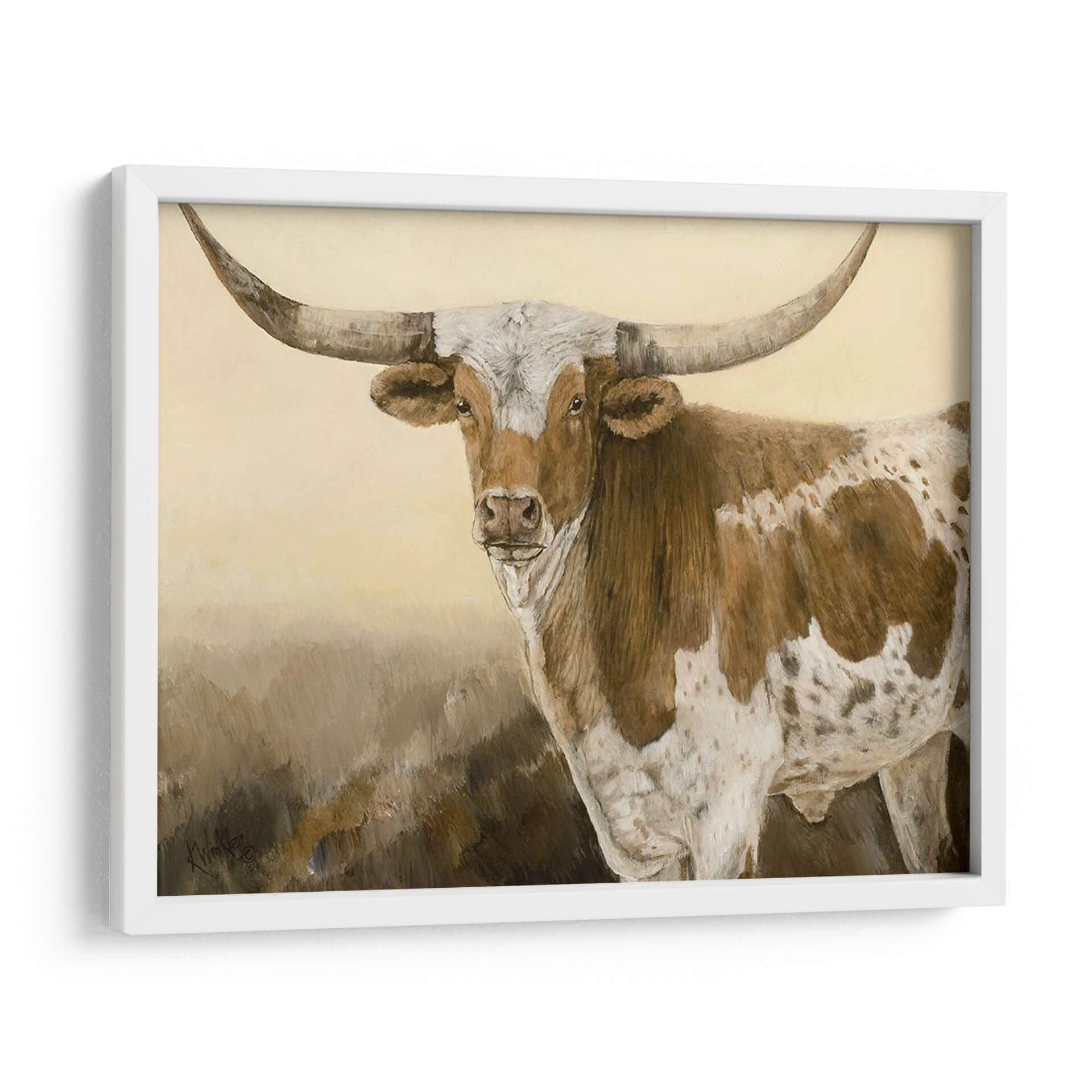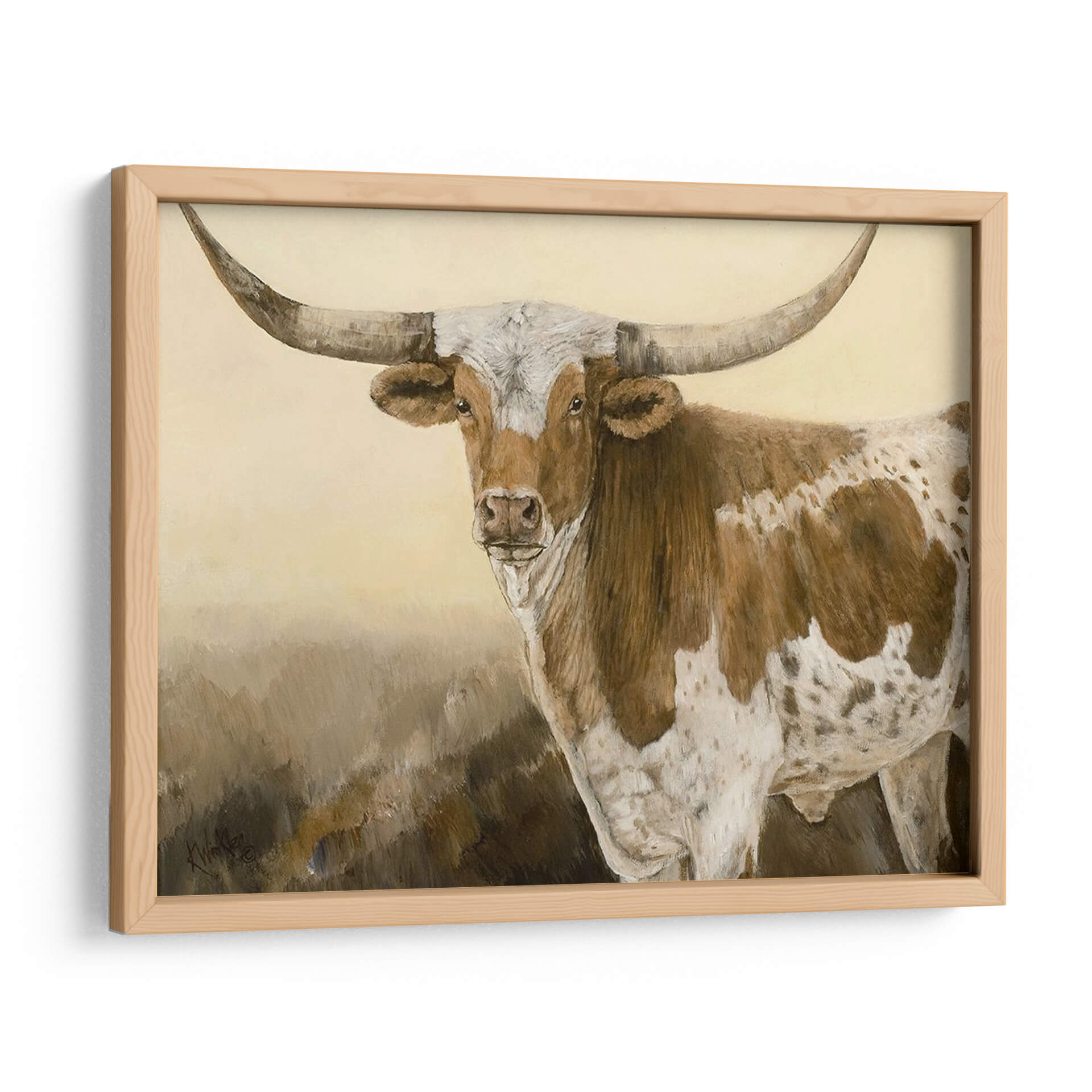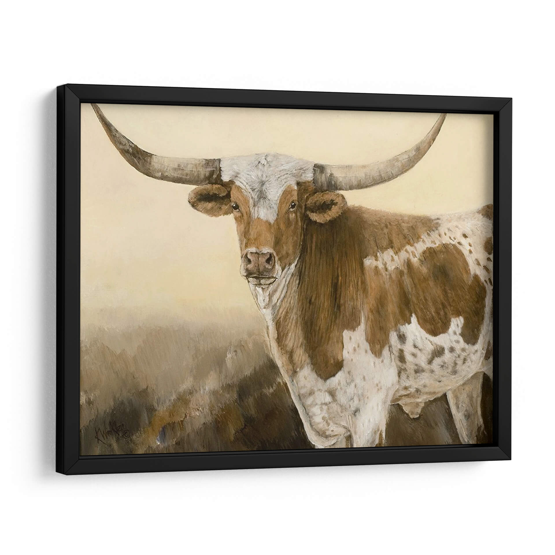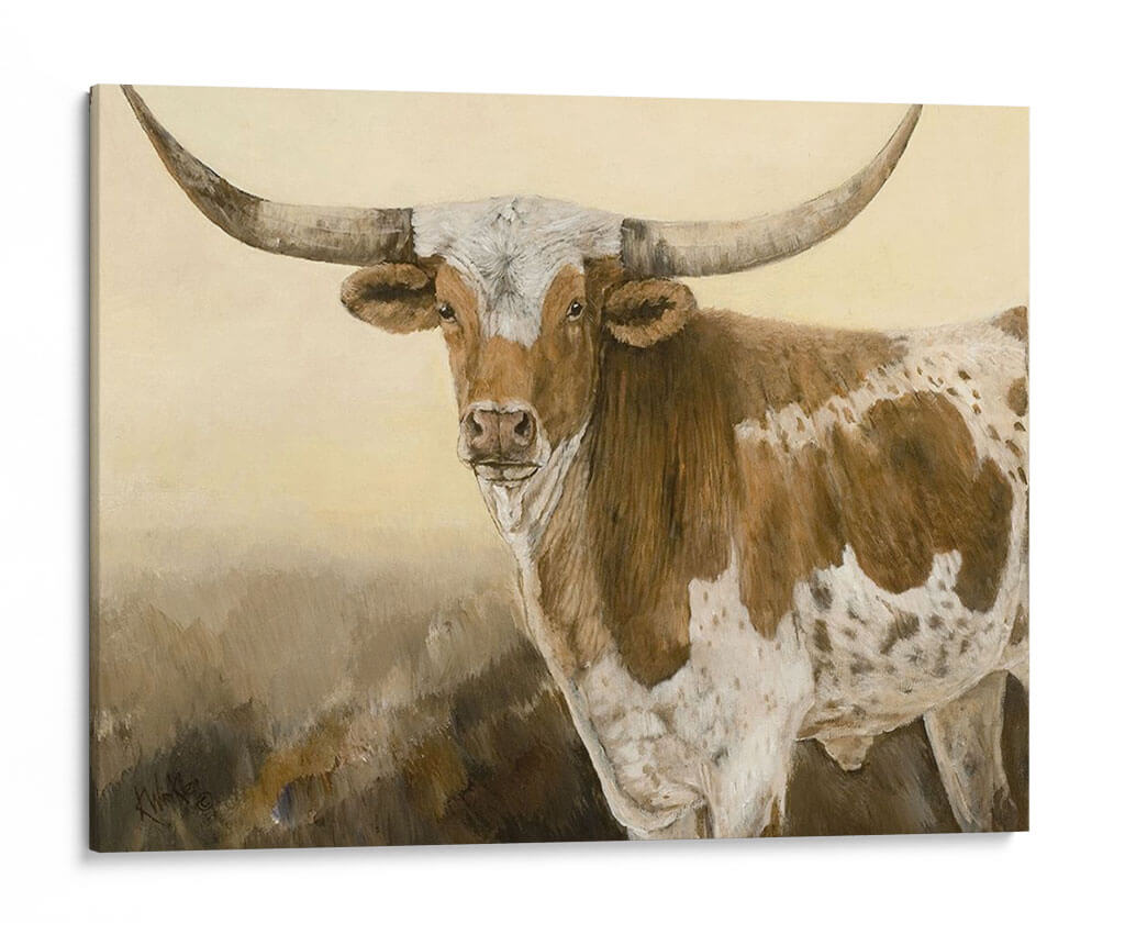 Captura la majestuosidad y la serenidad del campo con "Hace Mucho Tiempo Y Lejano", una obra de arte excepcional de Kathy Winkler. Este cuadro decorativo presenta un impresionante retrato de un toro de cuernos largos, con una mirada penetrante que invita a la reflexión. La paleta de colores se basa en tonos tierra cálidos y suaves, con un degradado sutil que evoca la luz dorada del atardecer o el amanecer sobre un paisaje sereno. Winkler emplea una técnica pictórica que aporta textura y profundidad, haciendo que la figura del animal destaque con realismo y carácter. El estilo, con reminiscencias realistas y un toque impresionista en el fondo, crea una atmósfera de calma y nostalgia, perfecta para aquellos que aprecian la belleza rústica y la fuerza tranquila de la naturaleza. Este cuadro decorativo es ideal para añadir un punto focal distintivo y una sensación de conexión con el mundo natural a tu hogar u oficina. Imagina esta pieza embelleciendo tu sala de estar, estudio o incluso un dormitorio, aportando un aire de sofisticación rústica y un recordatorio de la grandeza del reino animal. "Hace Mucho Tiempo Y Lejano" no es solo una decoración, es una ventana a un momento de paz y poder.