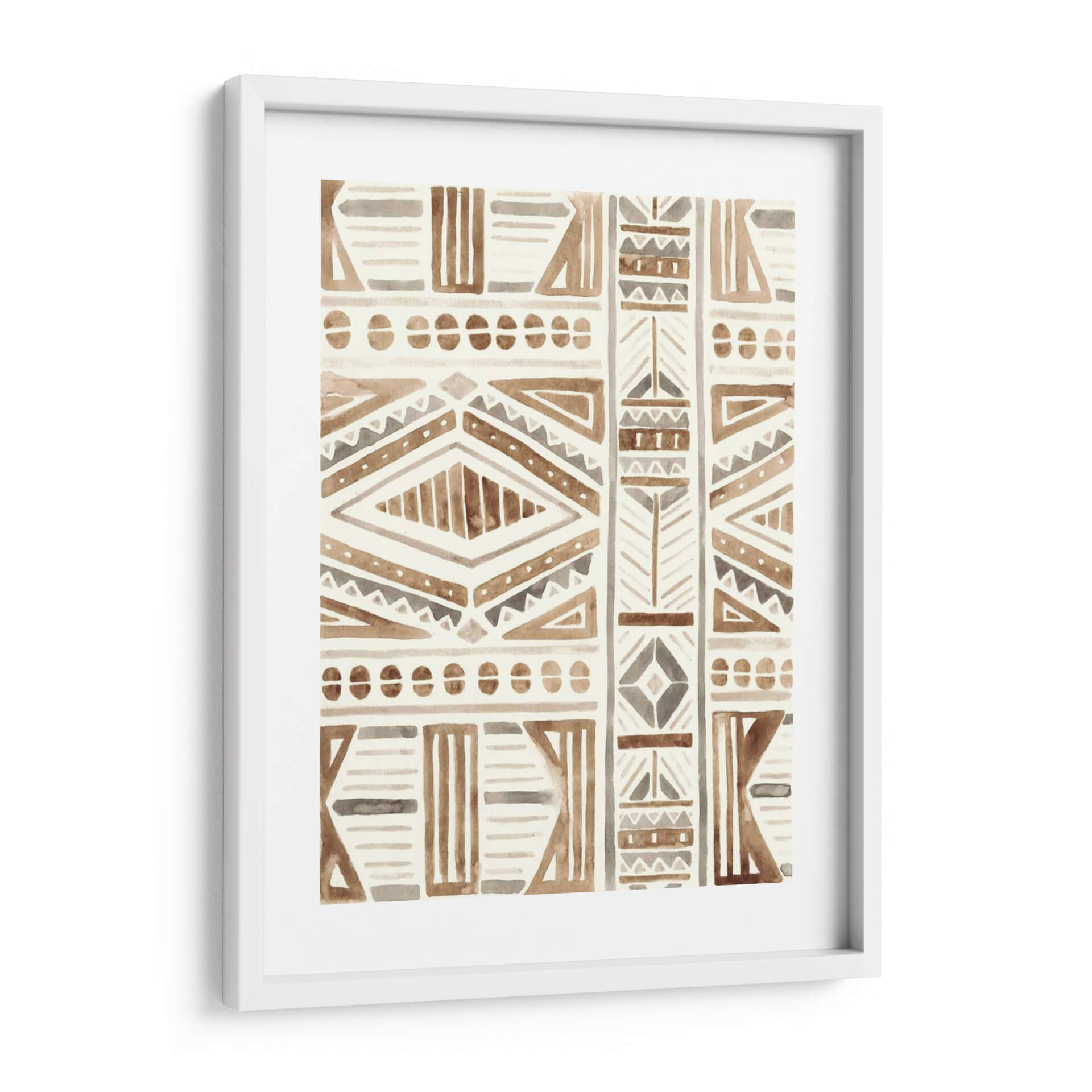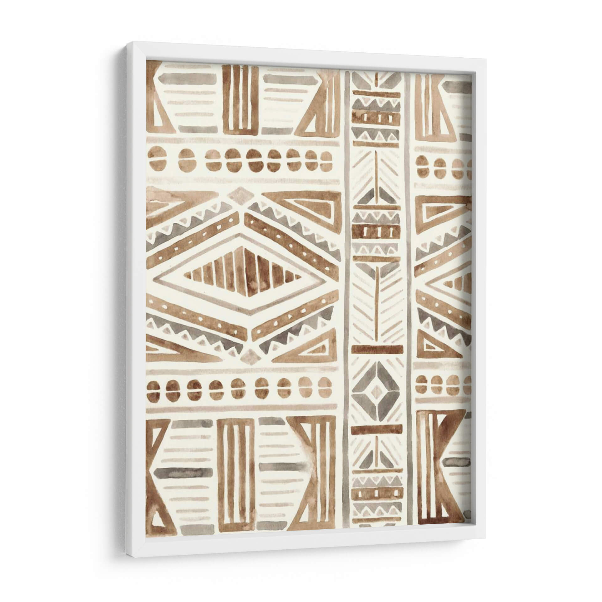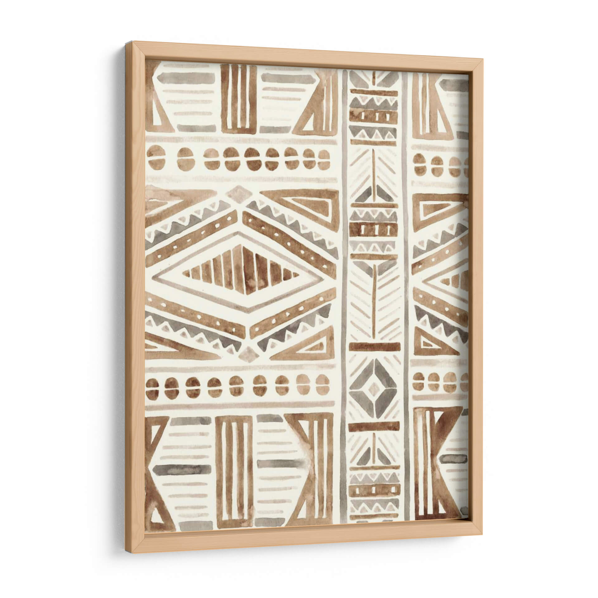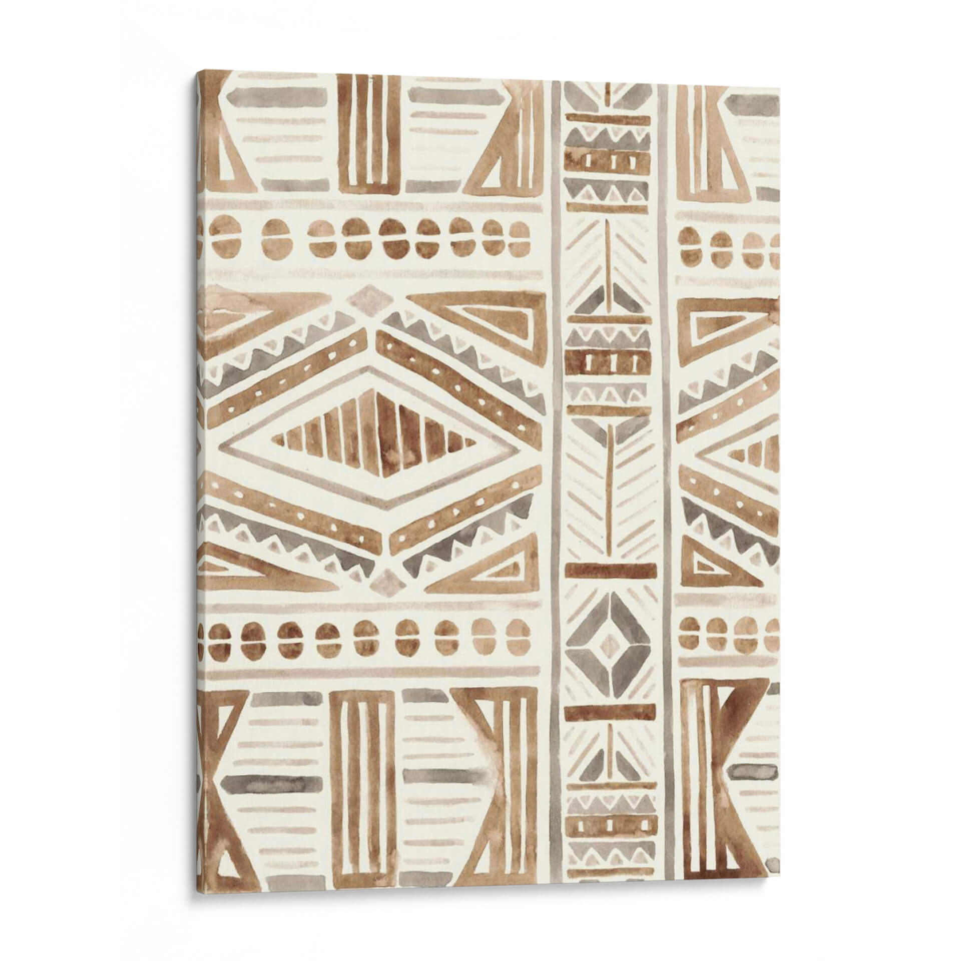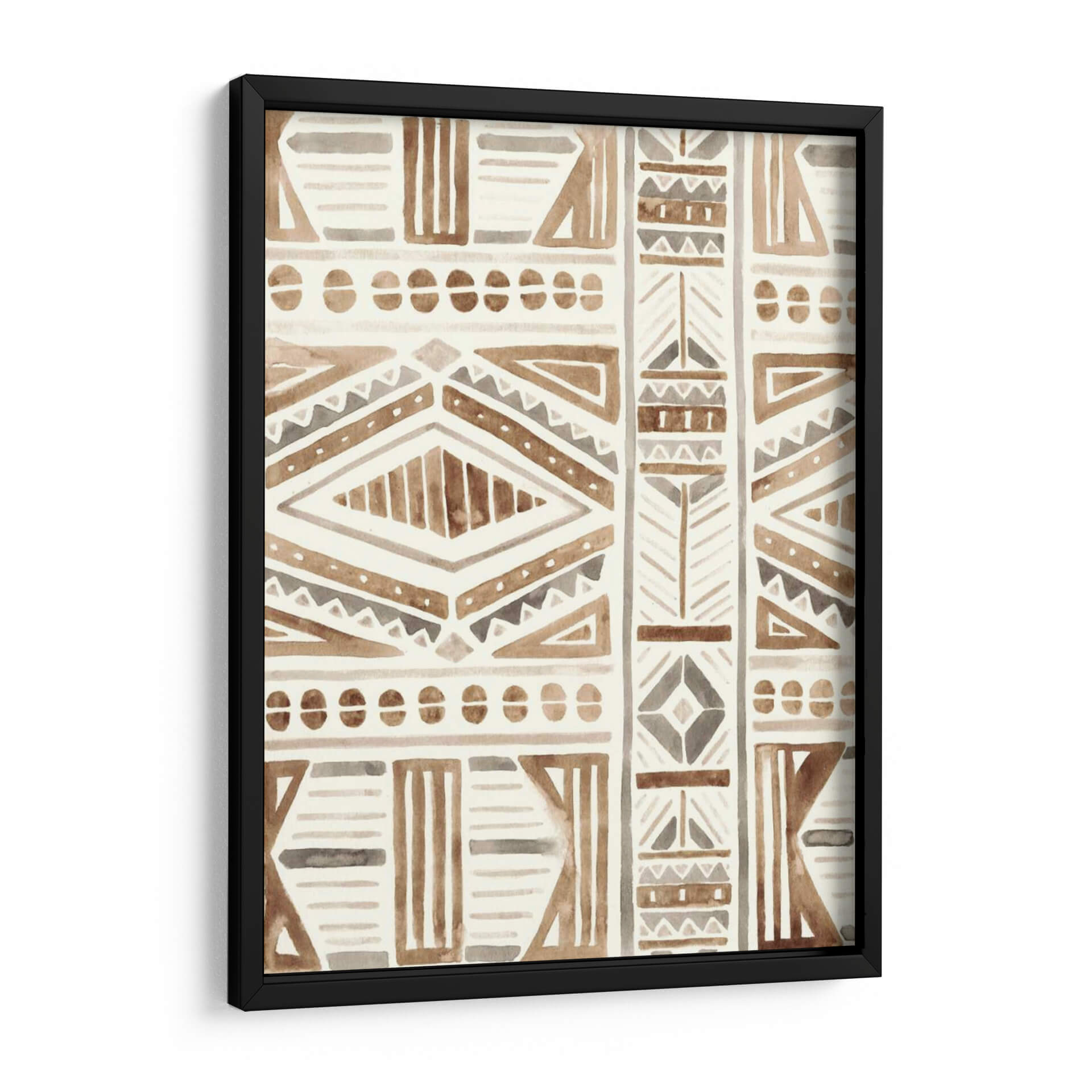 Sumérgete en la calidez terrosa y la elegancia tribal con "Impresiones Tribales II", una cautivadora obra de arte contemporáneo de June Erica Vess. Este cuadro decorativo presenta un intrincado patrón de formas geométricas y líneas fluidas, ejecutado con una paleta de colores suaves en tonos tierra, marrones y grises, aplicados con una delicadeza acuarelada que aporta profundidad y textura. Cada elemento, desde los rombos y triángulos hasta las series de puntos y líneas paralelas, evoca un sentido de historia y conexión con las raíces culturales, sin ser específico de una región, lo que le permite integrarse armoniosamente en diversos estilos decorativos. La composición equilibrada y la atmósfera serena de "Impresiones Tribales II" la convierten en la pieza ideal para infundir calma y sofisticación en tu hogar u oficina. Imagina este cuadro como el punto focal de tu sala de estar, aportando un toque de diseño orgánico y moderno, o como un elemento de serenidad en tu dormitorio o estudio. Su estilo abstracto y etnocentrista lo hace perfecto para espacios que buscan un acento de carácter y una narrativa visual sutil. Descubre cómo este lienzo puede transformar tu ambiente, invitando a la contemplación y al aprecio por el arte abstracto con inspiración tribal.