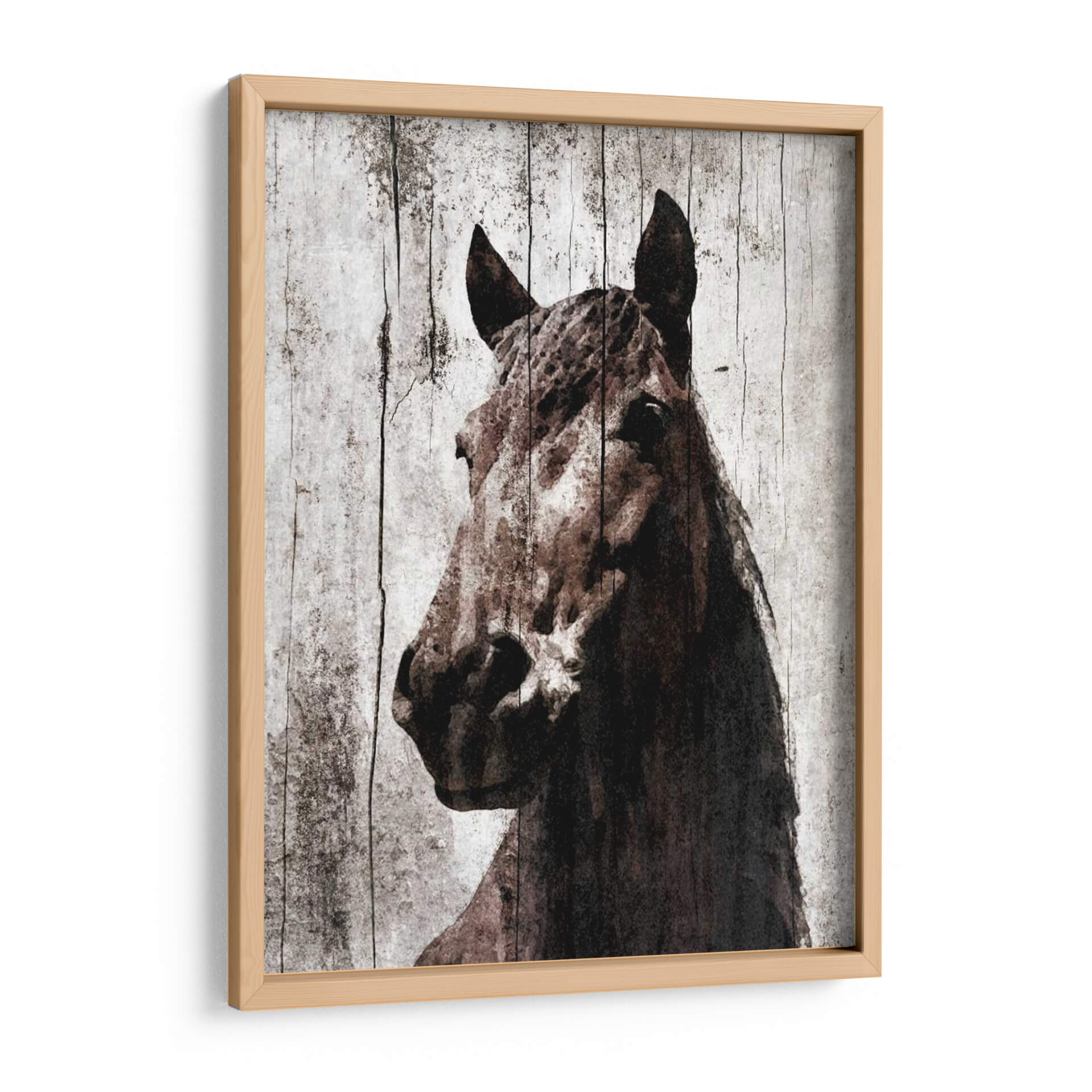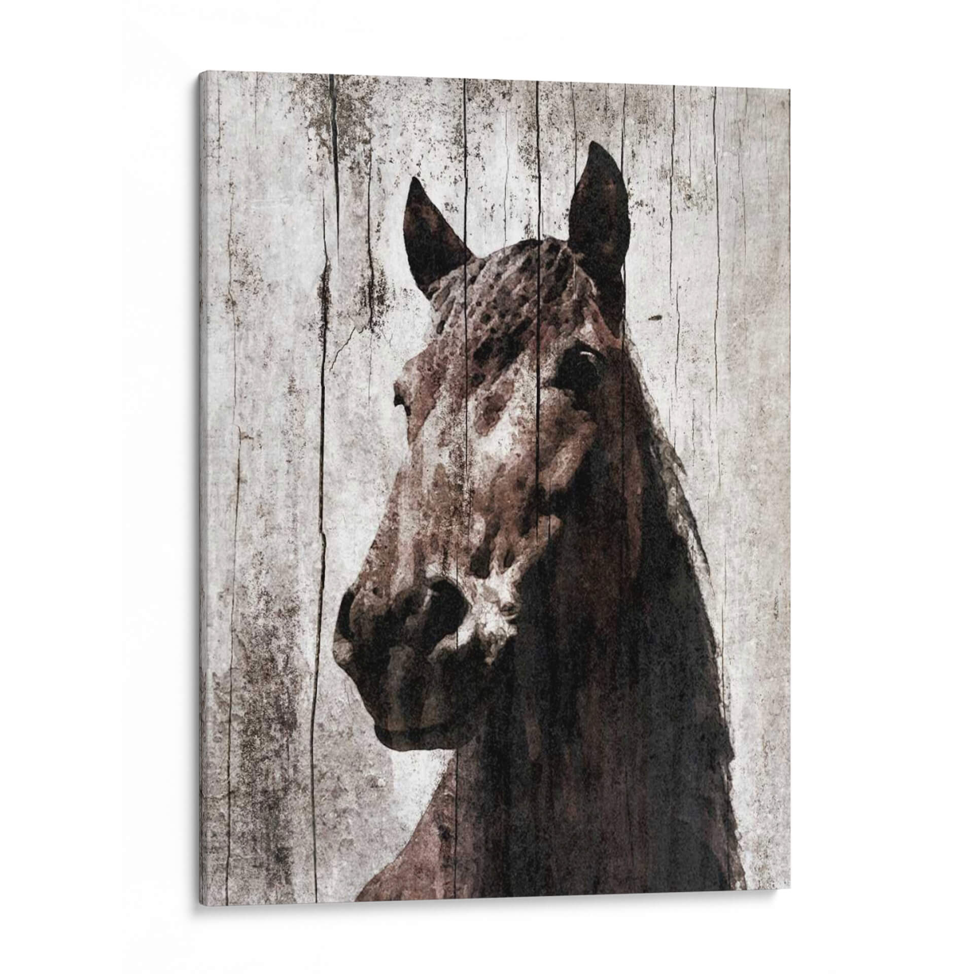 Sumérgete en la majestuosidad equina con "Le Musa II", un cuadro decorativo que captura la esencia de un caballo en un estilo texturizado y evocador. La obra presenta un primer plano del rostro de un caballo, cuya mirada profunda parece contemplar horizontes lejanos. Irena Orlov utiliza una paleta de colores predominantemente en tonos tierra, marrones oscuros y grises, que se fusionan con un fondo que imita la madera envejecida y desgastada, aportando una sensación rústica y atemporal. La técnica de la artista crea una textura visual rica, con pinceladas que sugieren el movimiento y la fuerza inherente del animal, mientras que el fondo de madera agrietada añade un carácter orgánico y natural. Este cuadro decorativo es ideal para espacios que buscan una conexión con la naturaleza o un toque de elegancia salvaje. Perfecto para salones, estudios o incluso recibidores, "Le Musa II" infunde una atmósfera de calma, nobleza y poder silencioso, convirtiéndose en un punto focal que inspira admiración y respeto. Añade un toque de arte contemporáneo con alma a tu decoración.