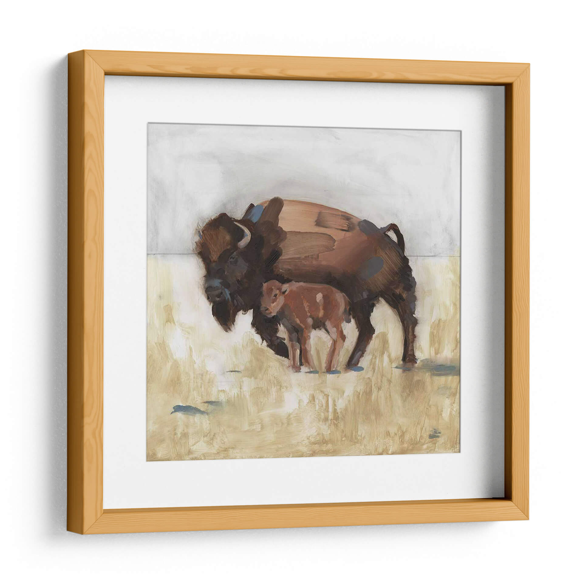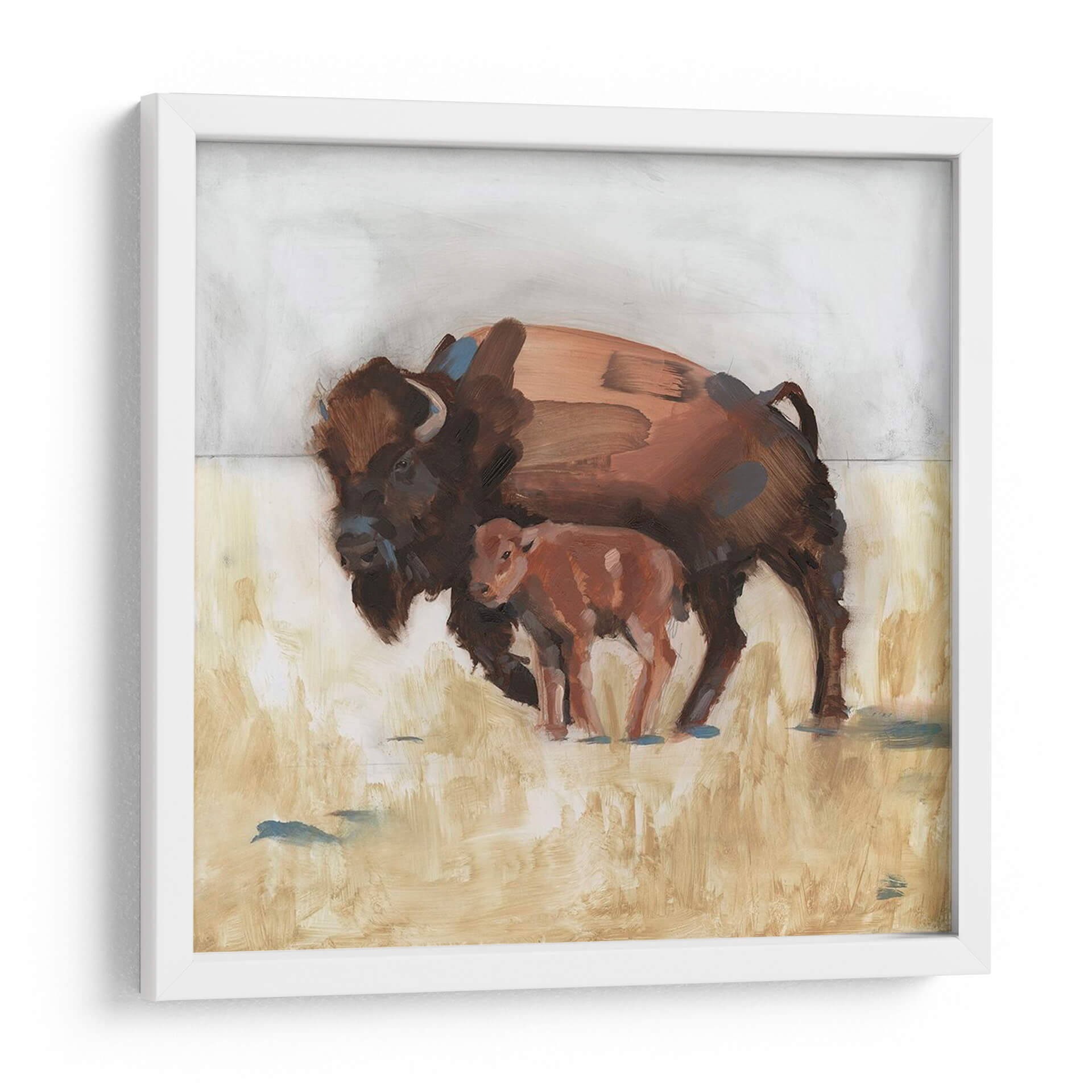 Captura la esencia de la naturaleza y el vínculo materno con "Lodge Guardian IV", una obra de arte evocadora del artista W. Rutledge. Este cuadro decorativo presenta un imponente bisonte protegiendo tiernamente a su cría en un entorno de tonos tierra. La paleta de colores, dominada por marrones cálidos, ocres y un sutil gris neutro en el fondo, crea una atmósfera serena y orgánica. La técnica pictórica, con pinceladas audaces y expresivas, añade textura y profundidad, confiriendo a la pieza un estilo contemporáneo con toques rústicos. La composición centra la atención en la poderosa figura del bisonte adulto y la vulnerabilidad de la cría, transmitiendo un sentimiento de protección, fuerza y conexión familiar. "Lodge Guardian IV" es una elección perfecta para añadir un toque de calidez y carácter a salones, dormitorios o espacios de trabajo que busquen una conexión con la vida salvaje y la belleza del mundo natural. Su estilo versátil se integra fácilmente en decoraciones rústicas, modernas o de inspiración campestre, convirtiéndose en un punto focal que inspira paz y admiración.