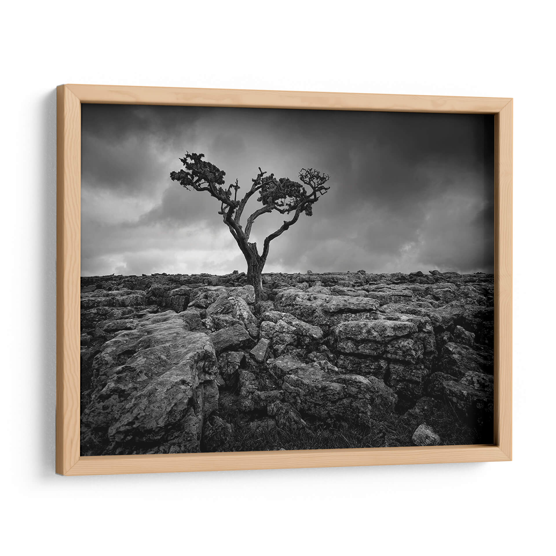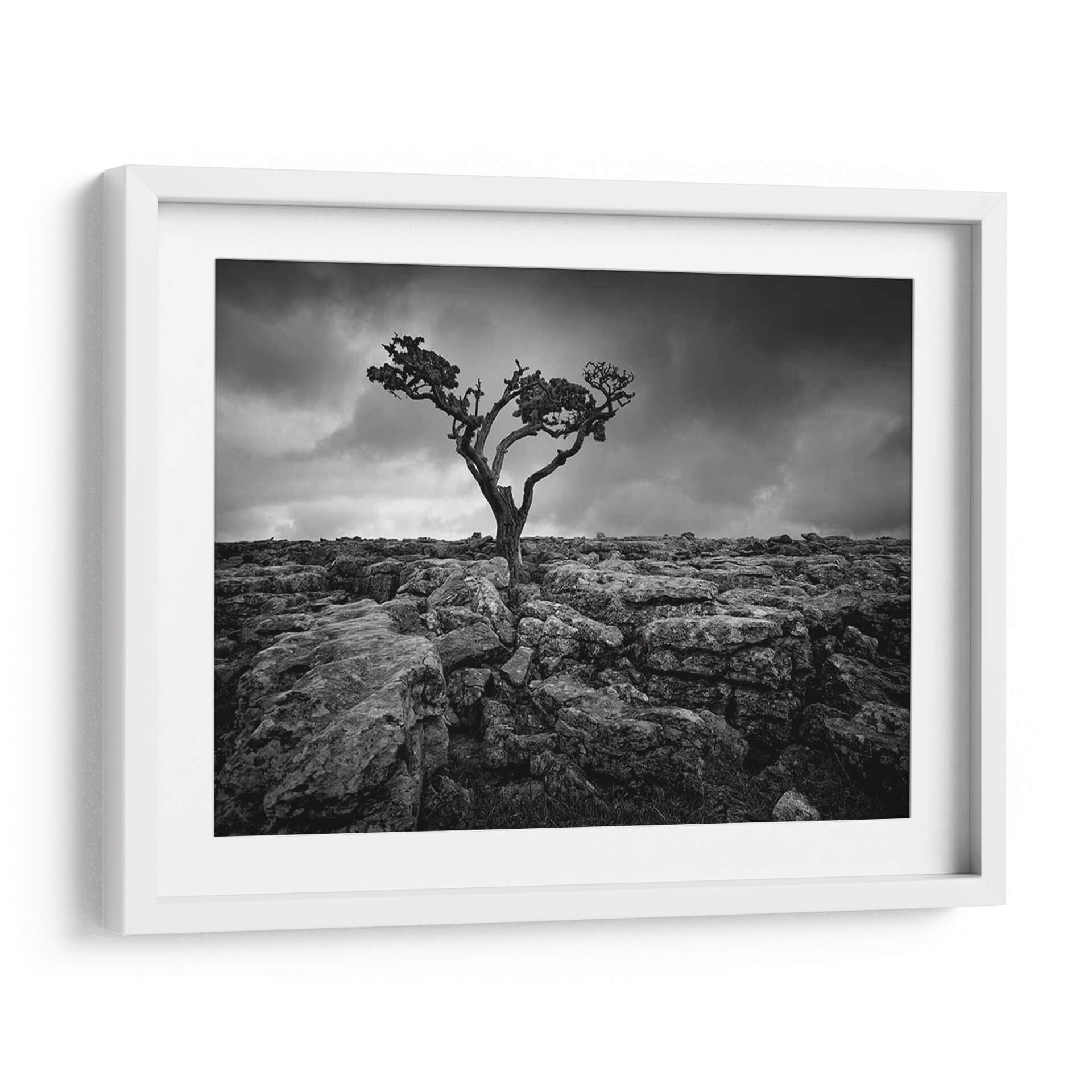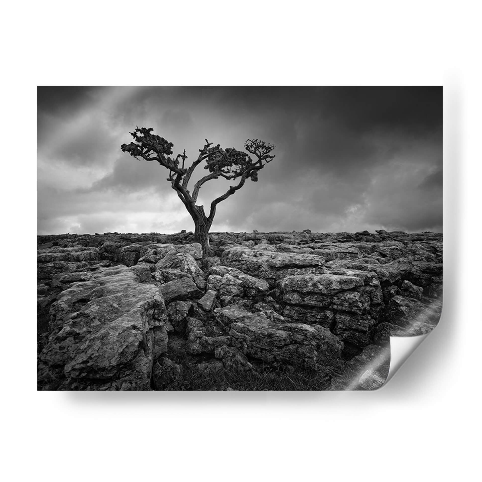 Descubre la fuerza y la soledad capturadas en 'Pavimento Y Árbol II', una obra maestra de Martin Henson. Esta impactante fotografía en blanco y negro presenta un árbol retorcido, anclado en un terreno rocoso y yermo, bajo un cielo dramático y cargado de nubes. La composición evoca una sensación de resiliencia y la belleza austera de la naturaleza en su estado más puro. Los tonos grises y negros, junto con las texturas rugosas de las rocas y la silueta escultural del árbol, crean una atmósfera profunda y contemplativa. Ideal para espacios que buscan un toque de drama y carácter, este cuadro decorativo es perfecto para salas de estar modernas, estudios o cualquier ambiente que aprecie el arte con alma y profundidad. Añade una pieza que incite a la reflexión y celebre la perseverancia de la vida frente a la adversidad. La sencillez de la paleta de colores permite que se integre fácilmente en diversas decoraciones, aportando un punto de interés visual y una narrativa silenciosa que cautivará a tus invitados y te recordará la belleza indómita del paisaje.
