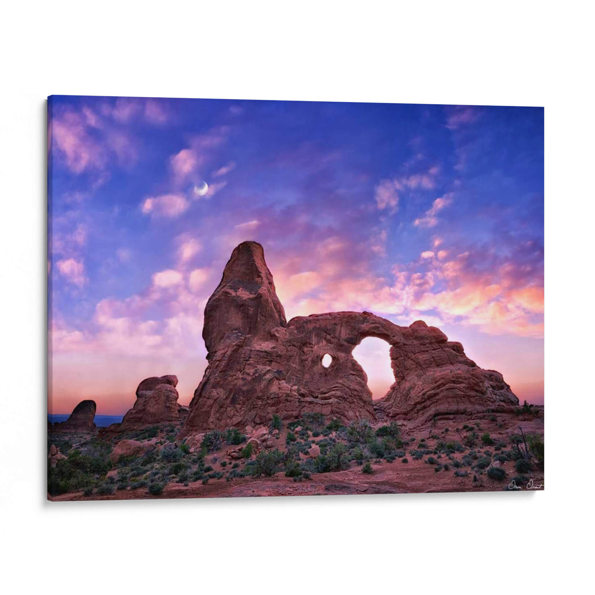 Captura la majestuosidad del desierto con nuestro cuadro decorativo "Puesta De Sol En El Desierto I" de David Drost. Esta obra maestra evoca la serenidad y la belleza cruda de un paisaje árido al atardecer. La paleta de colores se despliega en tonos cálidos de rojizo y anaranjado que se funden con púrpuras y azules profundos en el cielo, creando una atmósfera etérea. Nubes difuminadas y una luna creciente en el firmamento añaden un toque de misticismo a la escena. La composición se centra en formaciones rocosas imponentes, esculpidas por el tiempo, con un arco natural que invita a la contemplación. El arte de David Drost se caracteriza por su habilidad para capturar la luz y la textura de la naturaleza, transmitiendo una sensación de paz y asombro. Este cuadro decorativo es ideal para añadir un toque de tranquilidad y elegancia a tu salón, dormitorio o estudio, transformando cualquier espacio en un refugio de calma y belleza natural. Es la pieza perfecta para amantes de la fotografía de paisajes, la naturaleza y el arte contemporáneo que buscan una conexión con la esencia del desierto.