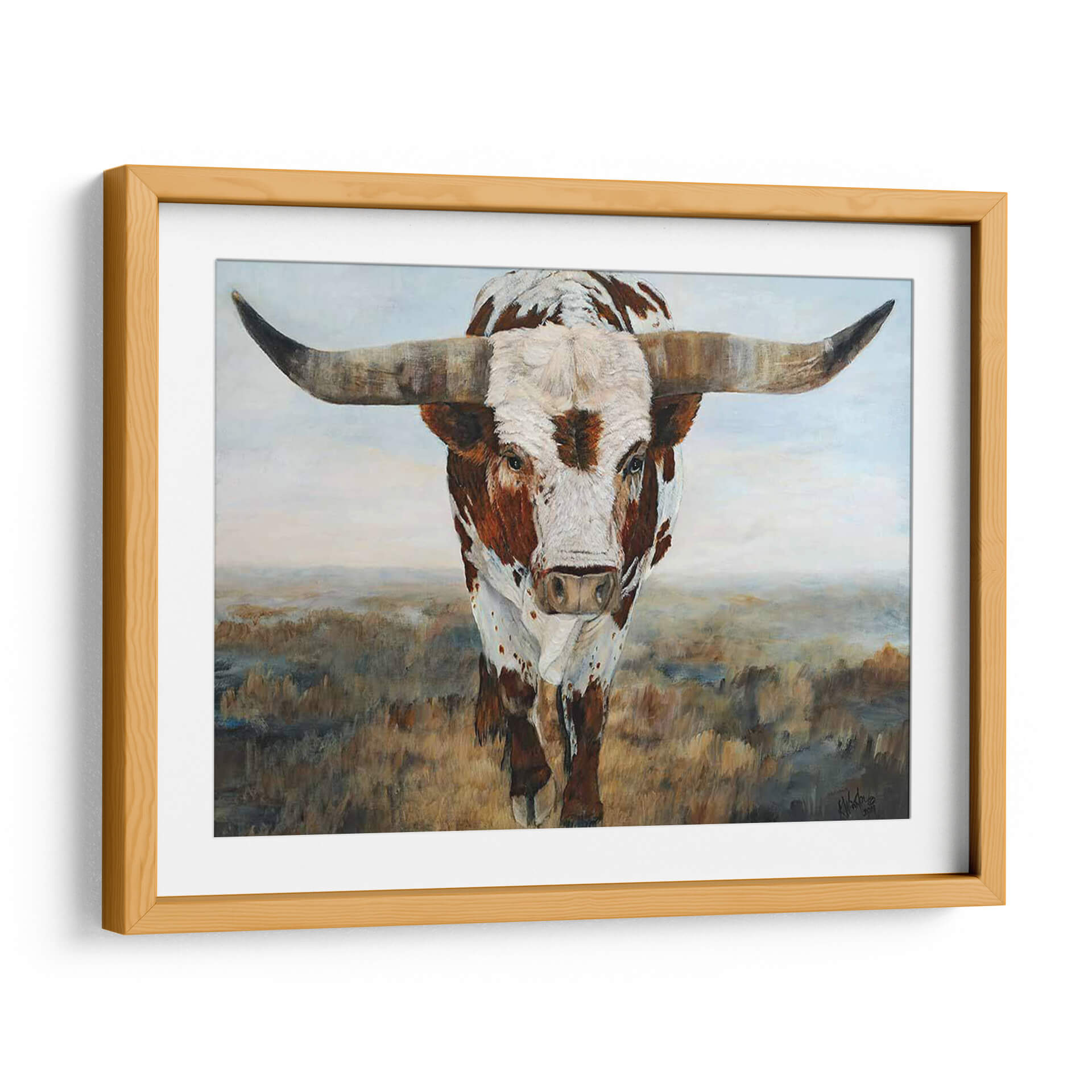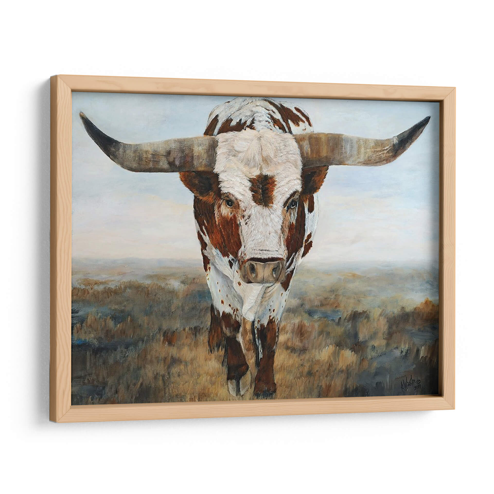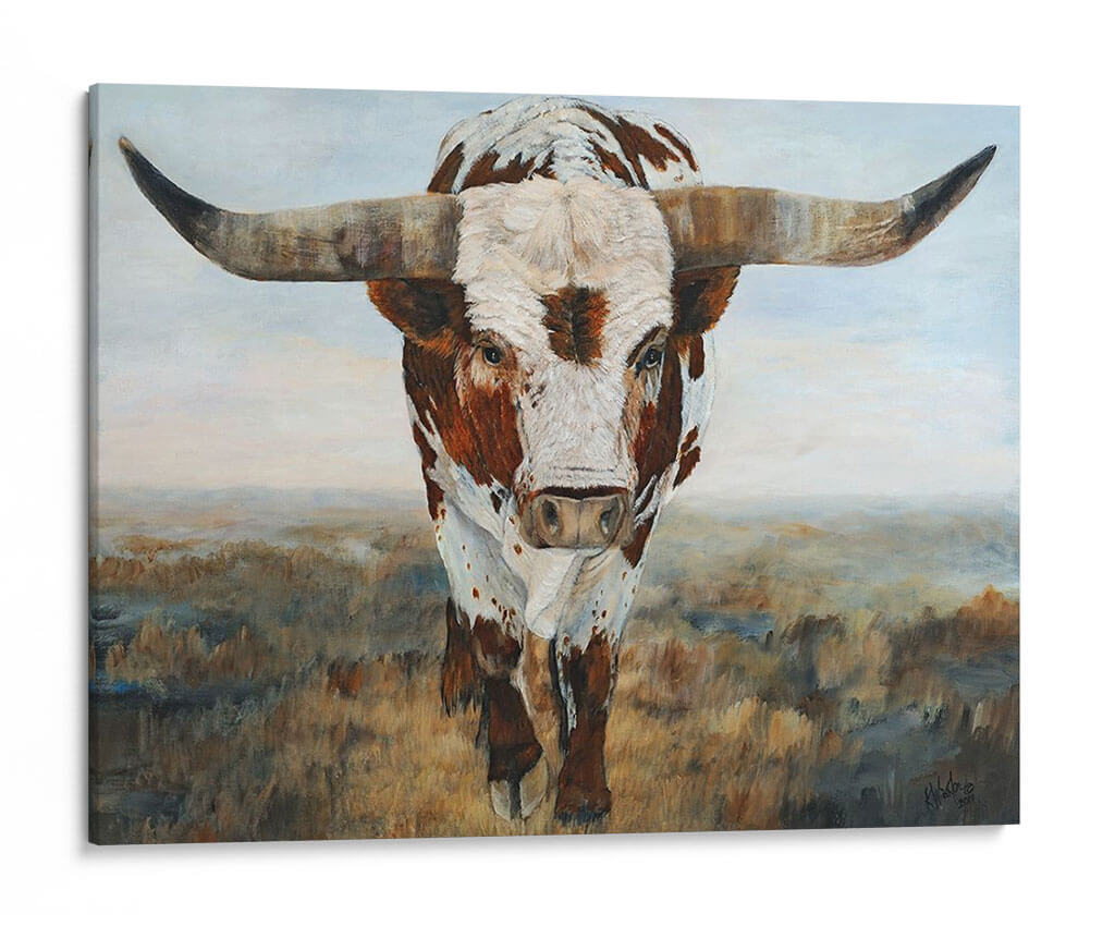 Sumérgete en la majestuosidad del oeste americano con "Ramblin En II", una obra de arte cautivadora de Kathy Winkler. Este cuadro decorativo captura la imponente presencia de un toro de cuernos largos en un paisaje etéreo, con una paleta de colores que evoca la vastedad y la serenidad de las llanuras. Los tonos tierra, marrones y blancos se mezclan con un cielo azul pálido y brumoso, creando una atmósfera de tranquilidad y fuerza natural. La técnica pictórica de Winkler añade profundidad y textura, dando vida a cada pincelada y resaltando la nobleza del animal. Ideal para aquellos que buscan infundir carácter y un toque rústico-chic en sus espacios, este lienzo es perfecto para salones, estudios o cualquier habitación que necesite un punto focal con alma. Su composición centrada y la mirada directa del toro invitan a la contemplación, convirtiéndolo en una pieza de conversación que transporta a quienes la observan a un mundo de belleza salvaje y autenticidad. Añade esta pieza única a tu colección y experimenta la conexión con la naturaleza y la vida rural a través del arte.