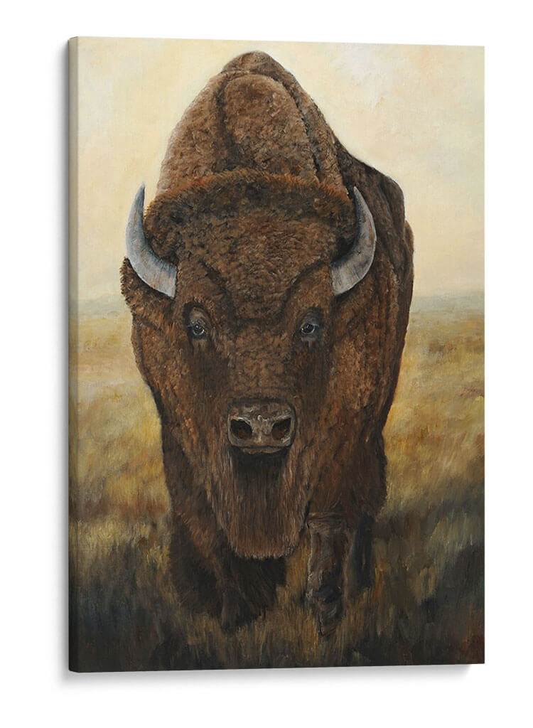 Captura la majestuosidad y la fuerza indómita de la naturaleza con "Respetame", una obra de arte excepcional de Kathy Winkler. Este cuadro decorativo presenta un bisonte imponente en primer plano, cuya mirada directa y poderosa te invita a una conexión profunda. La técnica pictórica resalta la textura del pelaje y la presencia sólida del animal, mientras que la paleta de colores terrosos y ocres evoca la vastedad de las praderas. El fondo, con sus tonos suaves y difuminados, centra toda la atención en la figura central, creando una atmósfera de solemnidad y respeto. Esta pieza es ideal para quienes buscan infundir carácter y un toque de la vida salvaje en sus espacios. Perfecta para salones, estudios u oficinas, "Respetame" no es solo una decoración, sino una declaración de poder y resistencia. Añade una pieza de arte contemporáneo que habla de la belleza cruda y la esencia de la vida salvaje, transformando cualquier ambiente en un santuario de apreciación natural. Una elección audaz y significativa para coleccionistas y amantes del arte que valoran la autenticidad y la profundidad.
