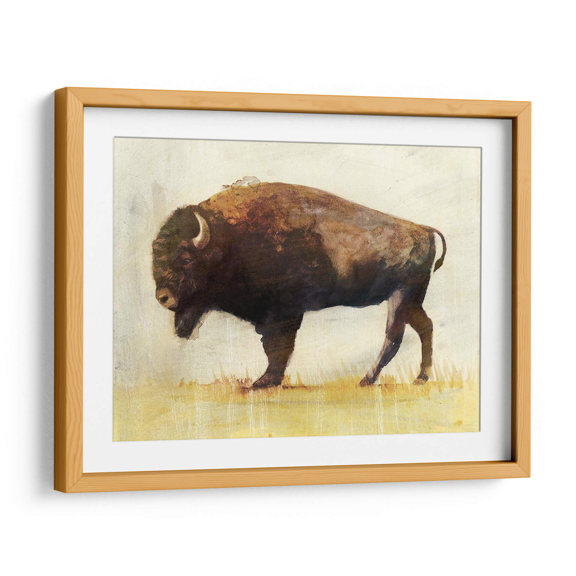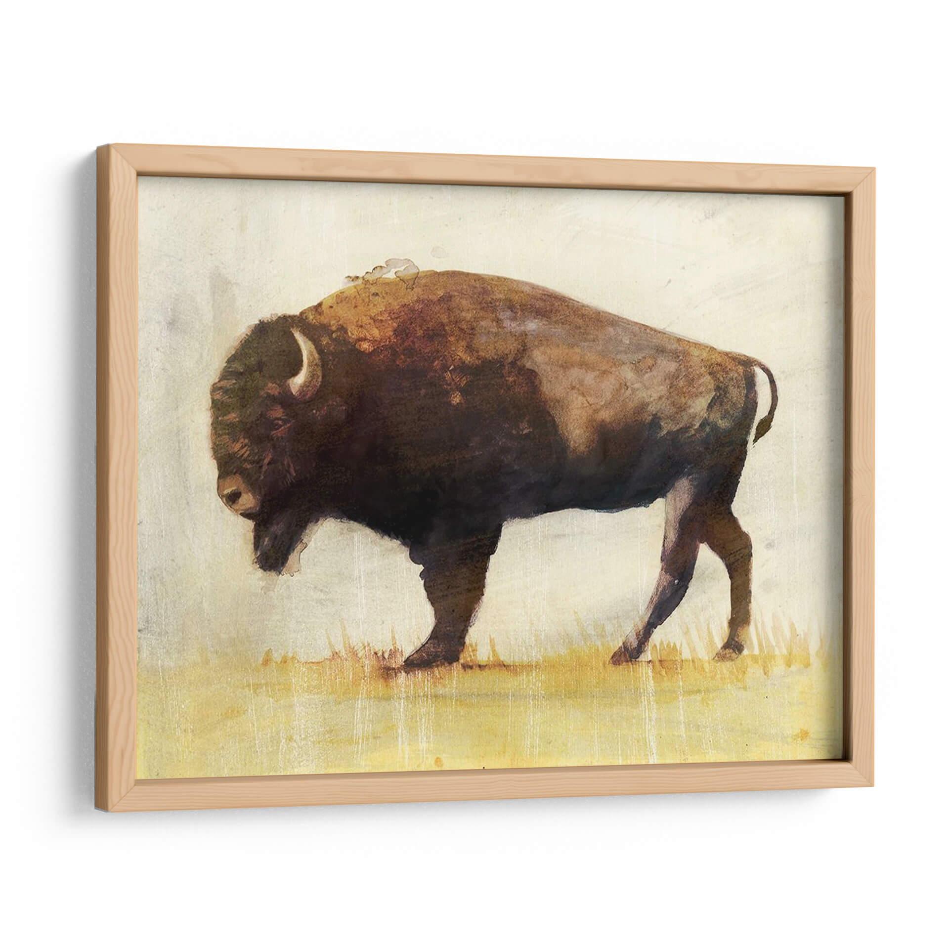Sumérgete en la majestuosidad de la naturaleza con 'Roam I', una obra de arte excepcional de Victoria Borges. Este cuadro decorativo captura la imponente presencia de un bisonte en un entorno sutil y evocador. La paleta de colores, dominada por tonos tierra y ocres, crea una atmósfera cálida y orgánica, mientras que las pinceladas texturizadas y el estilo ligeramente impresionista añaden profundidad y carácter. La figura del bisonte, representada con gran detalle en su pelaje y musculatura, irradia una fuerza serena y una conexión profunda con el paisaje salvaje. Es una pieza ideal para quienes buscan infundir sus espacios con una sensación de poder natural y tranquilidad, perfecta para salones, estudios o incluso oficinas que deseen un toque de elegancia rústica. 'Roam I' no es solo una decoración, es una invitación a contemplar la belleza indómita y la resistencia de la vida silvestre, aportando un aire de sofisticación atemporal a cualquier ambiente. Su composición centrada y el fondo delicadamente texturizado permiten que el bisonte sea el protagonista indiscutible, guiando la mirada y generando un punto focal cautivador. Añade esta pieza única a tu colección y siente la energía de la naturaleza en tu hogar.