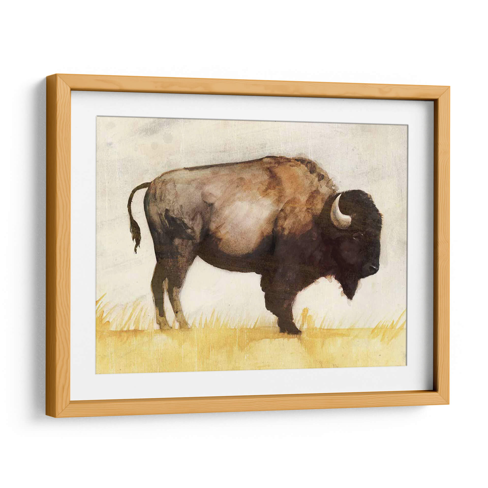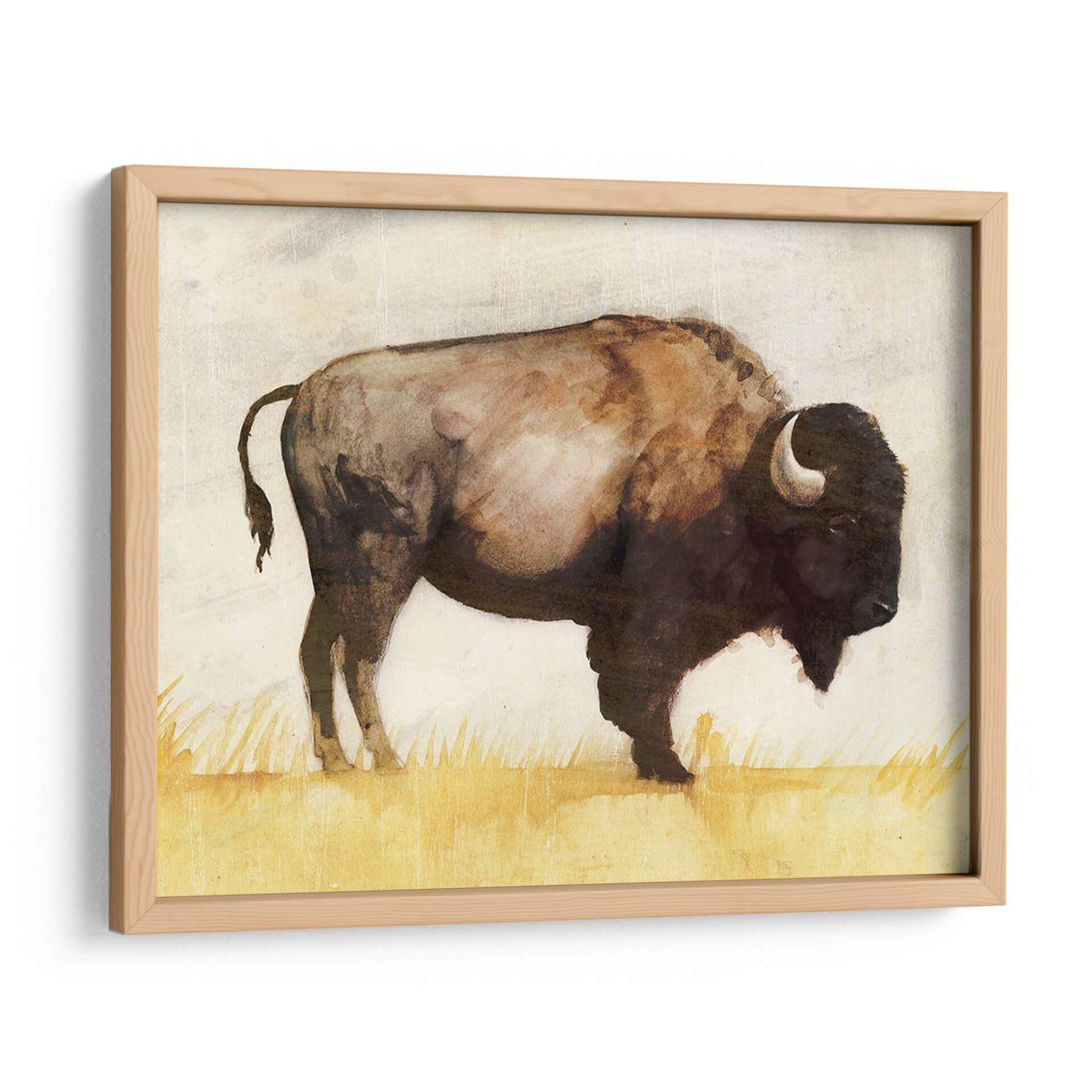 Sumérgete en la majestuosidad de la naturaleza con 'Roam II', una obra de arte de Victoria Borges que captura la imponente presencia de un bisonte. Esta pieza, ejecutada con una técnica que evoca la acuarela, presenta al majestuoso animal sobre un campo de hierba dorada, con un fondo texturizado en tonos neutros que realza su figura. Los colores cálidos y terrosos dominan la paleta, creando una atmósfera de calma y conexión con lo salvaje. La composición enfoca al bisonte en un perfil sereno, permitiendo apreciar los detalles sutiles de su pelaje y su mirada introspectiva. El estilo pictórico, con pinceladas sueltas y un tratamiento suave de la luz, confiere a la obra una cualidad atemporal y evocadora. Este cuadro decorativo es perfecto para añadir un toque de carácter rústico y elegancia natural a cualquier espacio, desde una sala de estar moderna hasta un estudio o una oficina que busque inspiración en la fuerza y la resiliencia de la vida silvestre. 'Roam II' no es solo una imagen, sino una ventana a la pradera, invitando a la reflexión sobre la belleza indómita del mundo natural y el espíritu libre que representa este icónico animal.