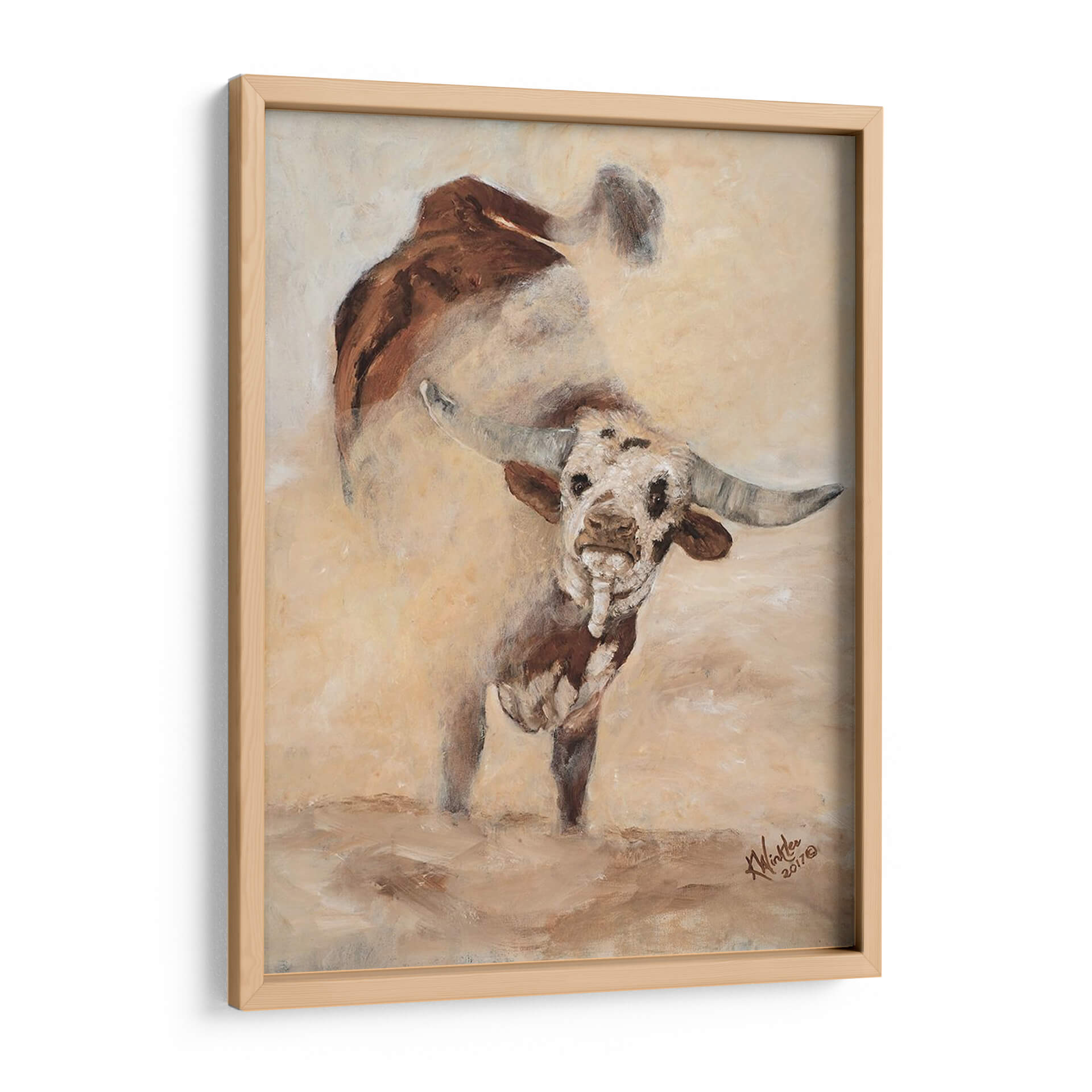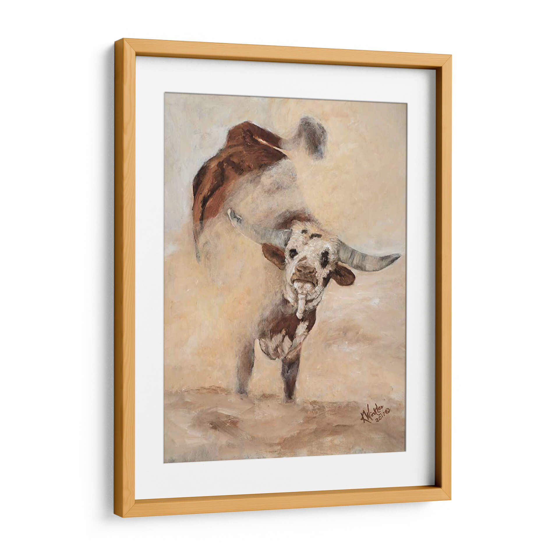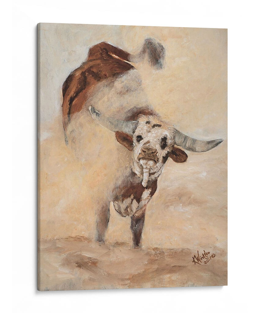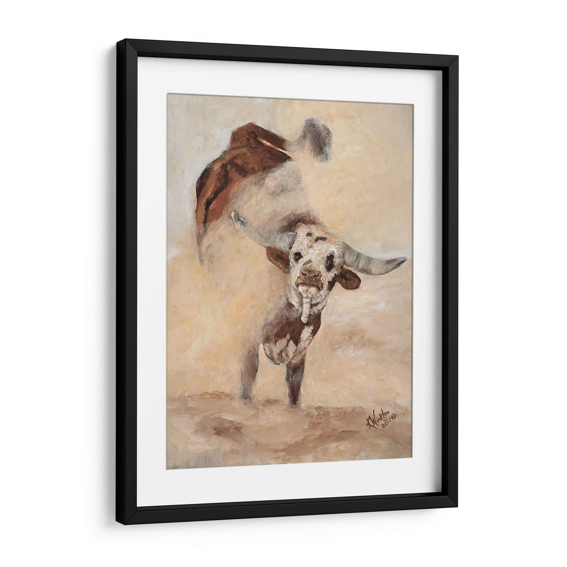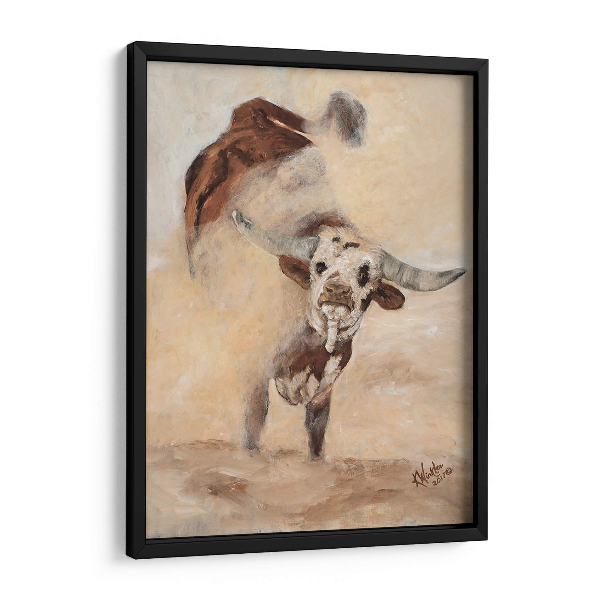 Captura la fuerza y el espíritu indomable con "Sacudiráteo Y Rollo I", una obra de arte cautivadora de Kathy Winkler. Este cuadro decorativo representa un toro majestuoso en medio de una nube de polvo, evocando una sensación de poder crudo y movimiento dinámico. La paleta de colores terrosos, con sus tonos cálidos de marrón, beige y crema, crea una atmósfera acogedora y rústica, perfecta para añadir carácter a cualquier espacio. El estilo realista y expresivo del artista da vida a la textura del pelaje y la intensidad de la mirada del animal, invitando al espectador a una conexión visceral. La composición, centrada en la figura imponente del toro, genera un punto focal inmediato, ideal para salas de estar, estudios o espacios que busquen un toque de naturaleza salvaje y energía.