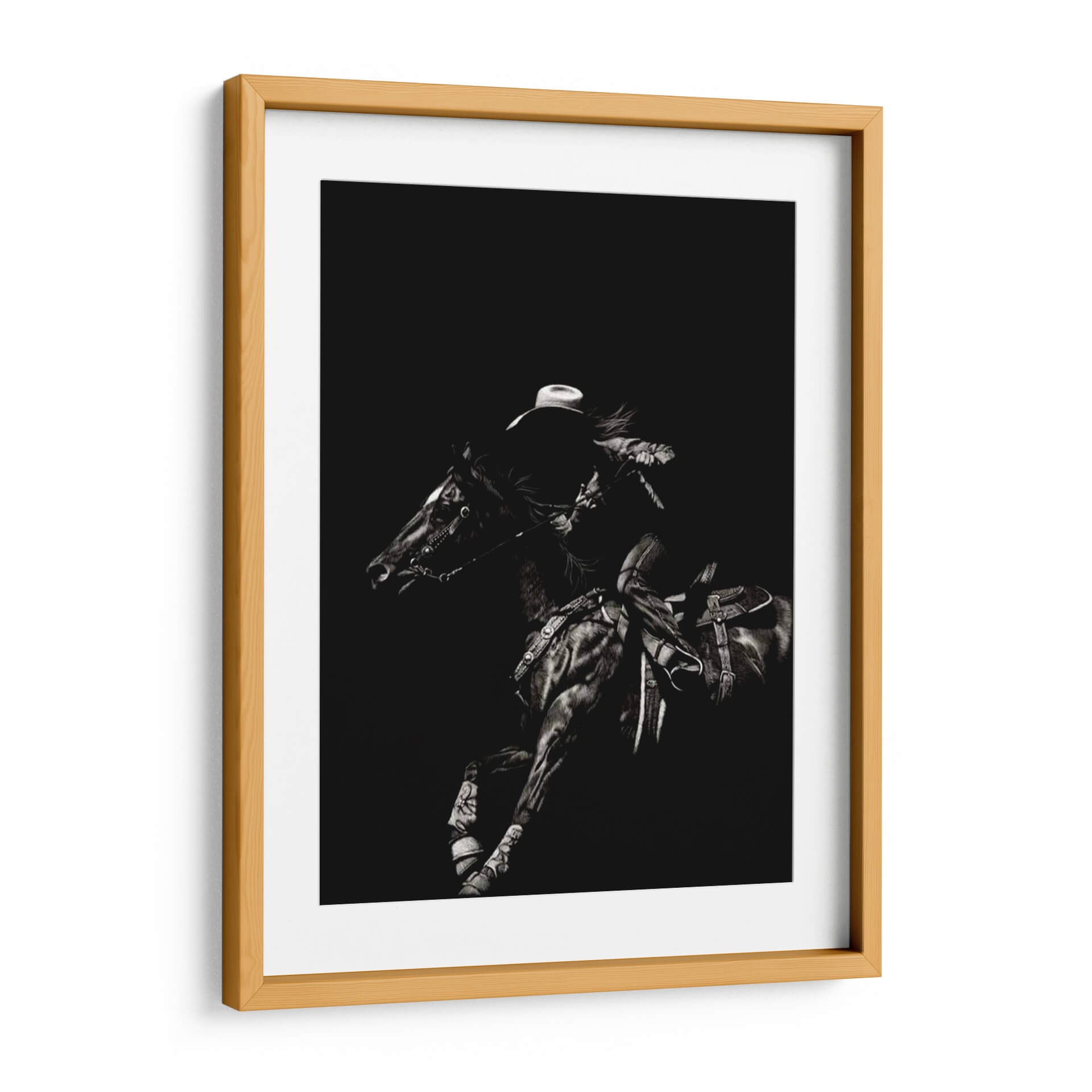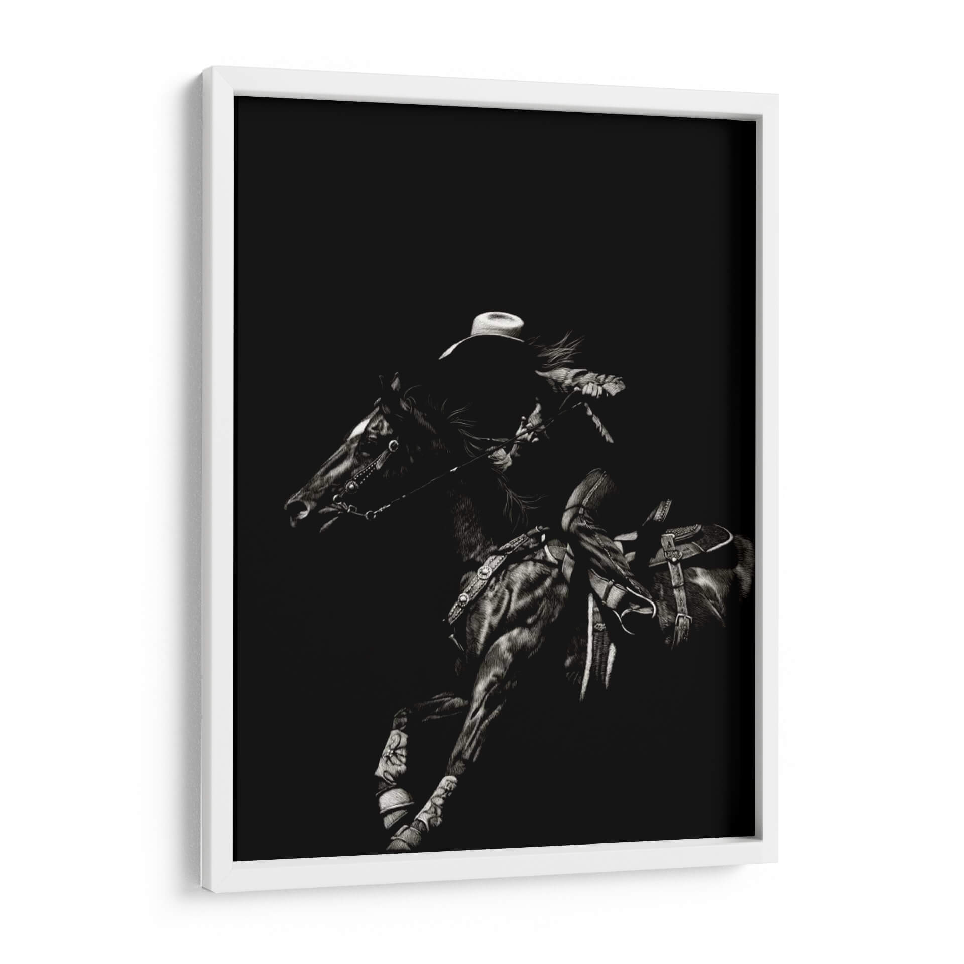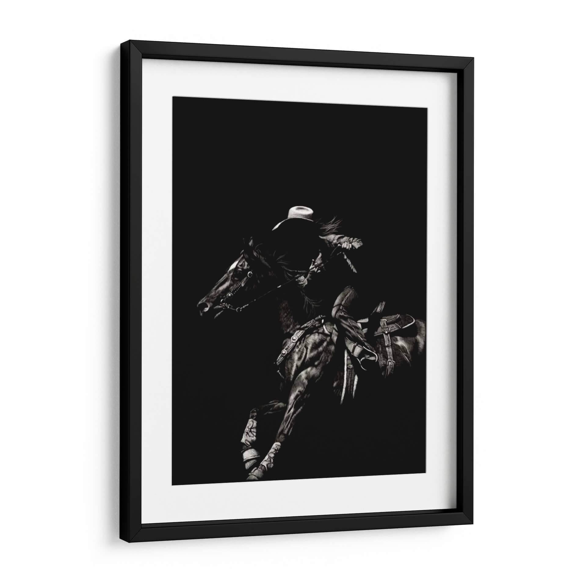 Captura la esencia dinámica y el espíritu indomable del oeste americano con "Scratchboard Rodeo I" de Julie T. Chapman. Esta obra maestra en blanco y negro, ejecutada con una técnica de scratchboard detallada, presenta un jinete y su caballo en pleno movimiento, evocando la adrenalina y la destreza de una competición de rodeo. Los contrastes dramáticos entre la luz y la oscuridad resaltan la musculatura del caballo, la textura del cuero de la silla de montar y la determinación del jinete bajo su sombrero. La composición captura un instante fugaz de acción intensa, con el viento agitando la melena del caballo y la ropa del jinete, creando una sensación de velocidad y energía cruda. Es una pieza ideal para aquellos que aprecian la fuerza, la valentía y la estética clásica del arte ecuestre, añadiendo un toque de carácter y dramatismo a cualquier espacio, desde una sala de estar moderna hasta un estudio rústico o una oficina con temática occidental. "Scratchboard Rodeo I" no es solo una imagen, es una celebración de la pasión y el coraje, un testimonio visual de la conexión entre el hombre y el animal en el corazón de la tradición vaquera.