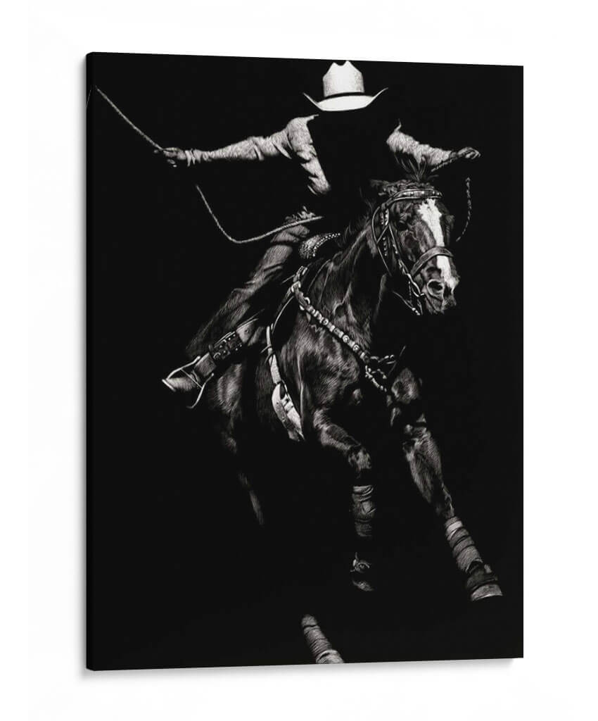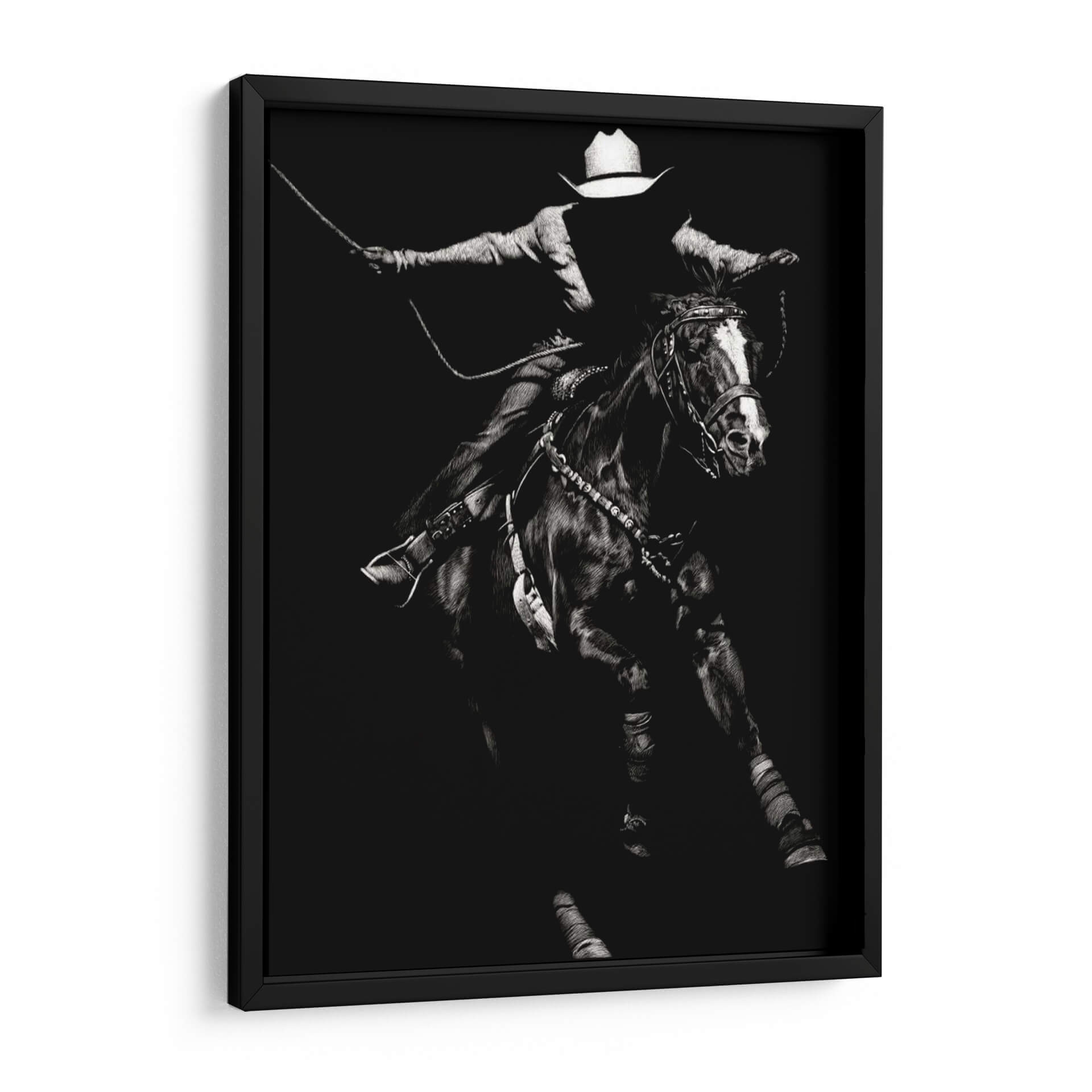 Sumérgete en la dinámica y la intensidad del oeste americano con este cautivador cuadro decorativo "Scratchboard Rodeo Iii" de Julie T. Chapman. La obra maestra presenta a un jinete de rodeo en pleno movimiento, capturado con un detalle asombroso y un fuerte contraste que resalta la acción y la energía del momento. La paleta monocromática, con sus profundos negros y blancos brillantes, evoca una sensación de dramatismo y atemporalidad, haciendo que la pieza sea un punto focal impactante en cualquier espacio. La composición dinámica, que enfoca la figura del jinete y su caballo en plena faena, transmite una sensación de poder y destreza. Este cuadro decorativo es ideal para salones modernos, estudios rústicos o cualquier ambiente que busque un toque de carácter y una narrativa visual fuerte. Aporta una dosis de la emoción del rodeo a tu hogar u oficina, creando un ambiente lleno de vida y movimiento. La habilidad del artista para capturar la tensión y la belleza del deporte ecuestre lo convierte en una adición única y memorable a tu colección de arte de pared.