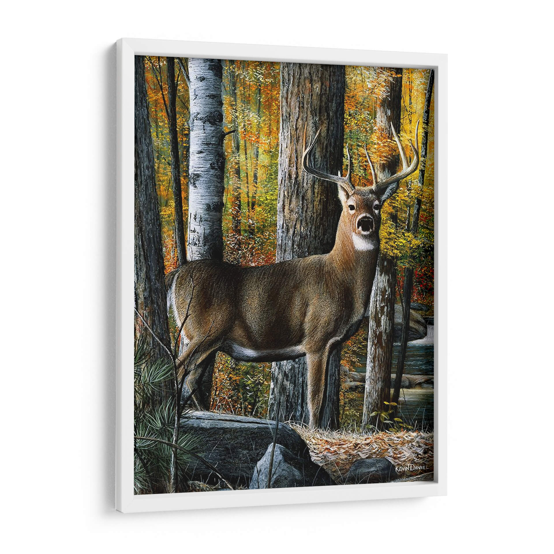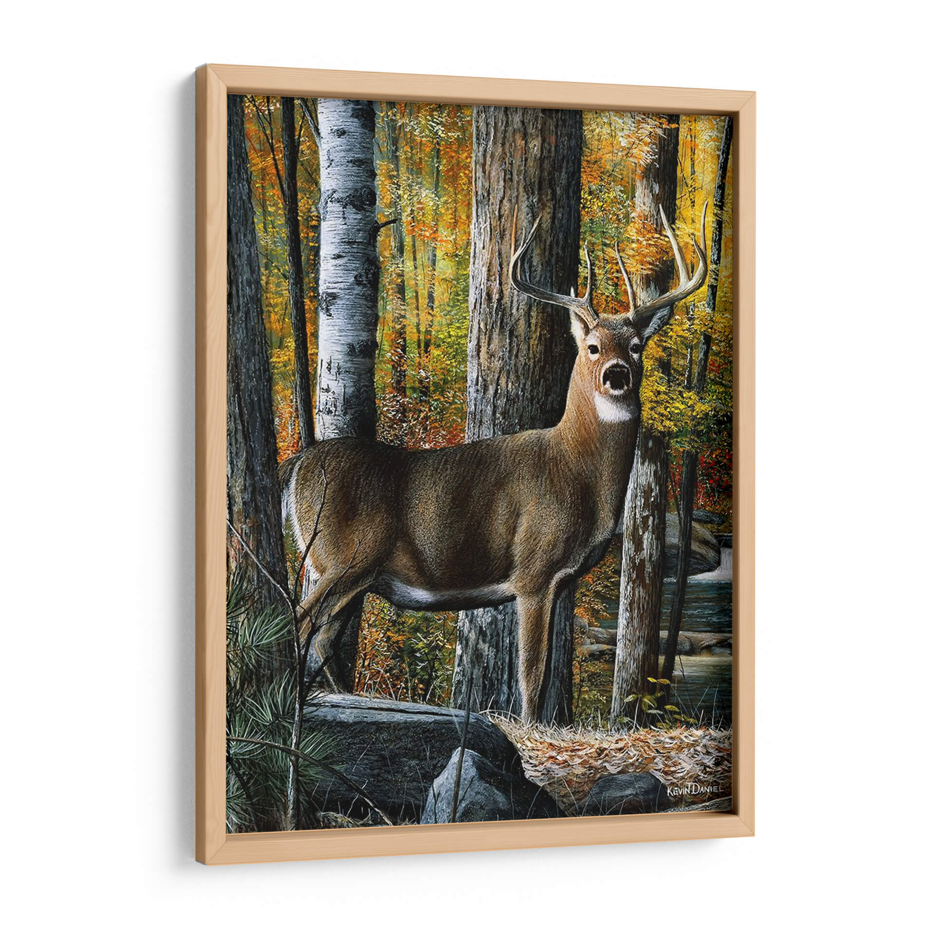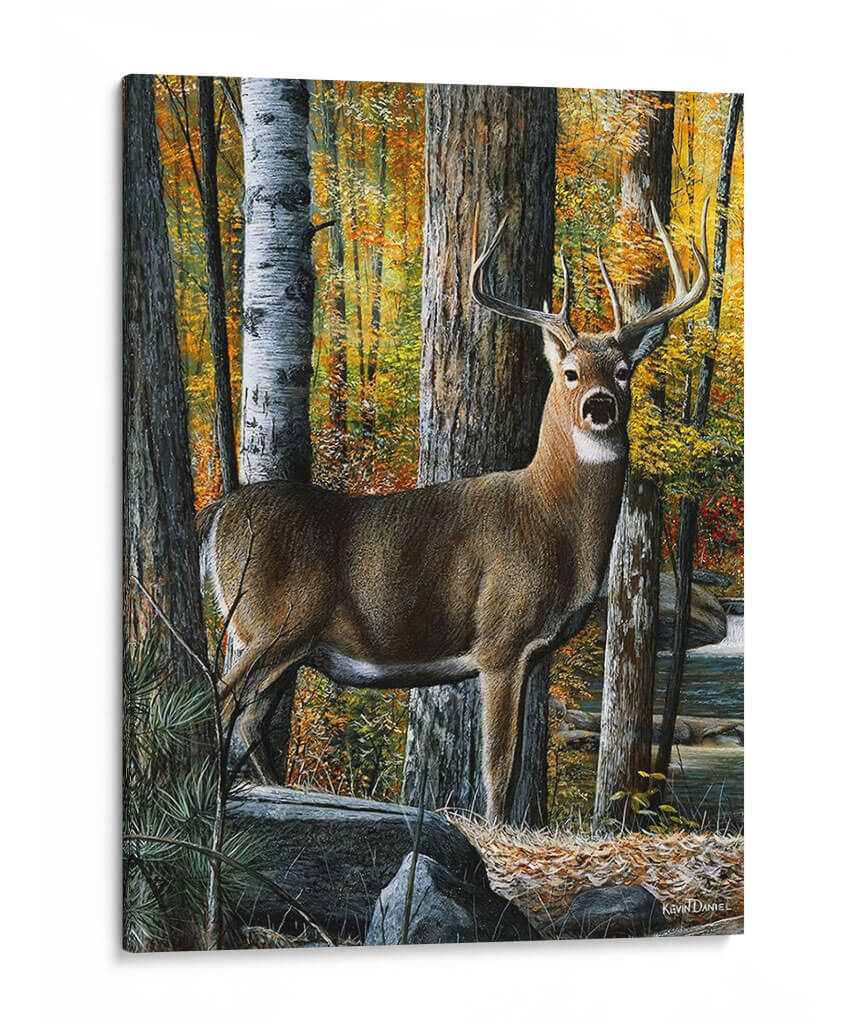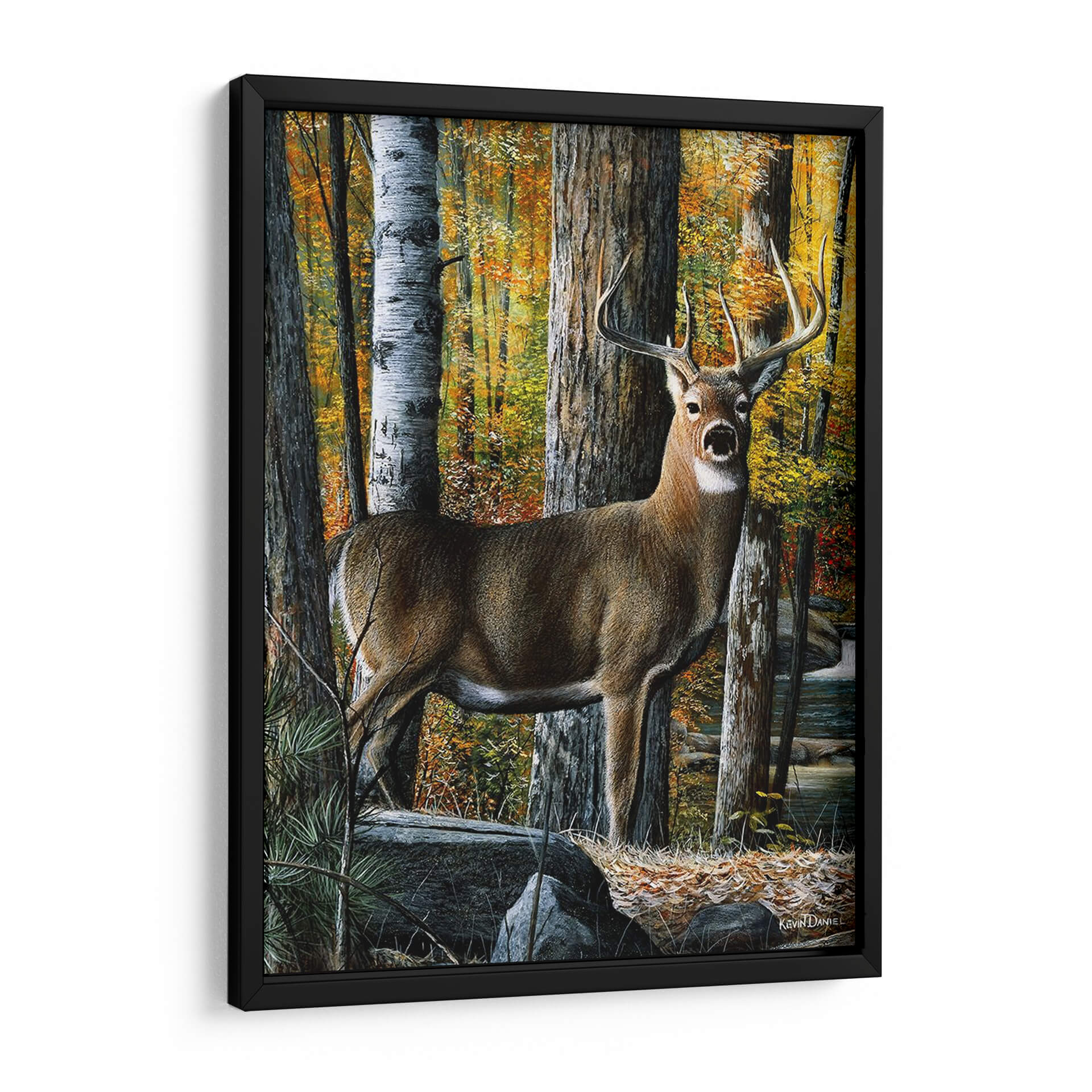 Sumérgete en la majestuosidad de la naturaleza con este cautivador cuadro decorativo titulado "Silencio Roto" del artista Kevin Daniel. La obra presenta un imponente ciervo de cornamenta exuberante, posicionado en el corazón de un frondoso bosque otoñal. Los vibrantes tonos ocres, dorados y rojizos de las hojas crean un telón de fondo espectacular, contrastando con la corteza texturizada de los árboles y el pelaje detallado del animal. La luz del sol se filtra entre las ramas, iluminando sutilmente la escena y añadiendo profundidad y realismo. La composición, con el ciervo como punto focal y un arroyo serpenteante al fondo, evoca una sensación de tranquilidad y la pureza de la vida silvestre. Este cuadro es ideal para añadir un toque de serenidad y conexión con la naturaleza a tu sala de estar, dormitorio o estudio. "Silencio Roto" no es solo una pieza de arte, sino una ventana a un momento de paz salvaje, perfecta para los amantes de la naturaleza y el arte figurativo realista. Transforma tu espacio en un santuario natural con esta obra maestra que captura la esencia del otoño y la grandeza del reino animal, invitando a la contemplación y la admiración.
