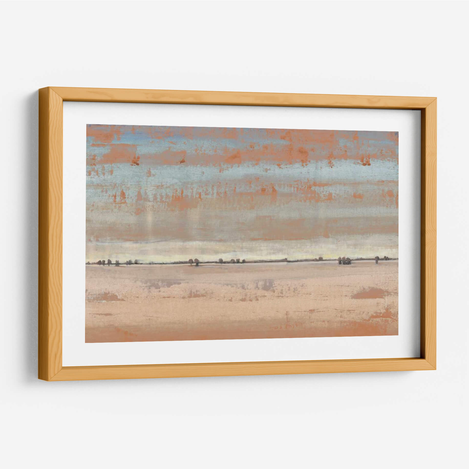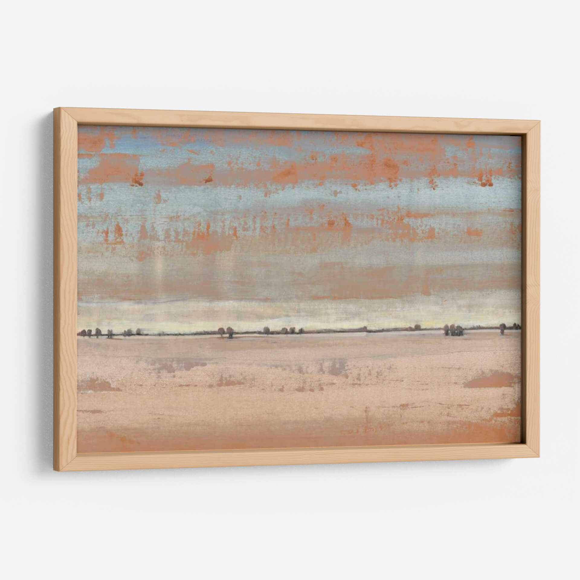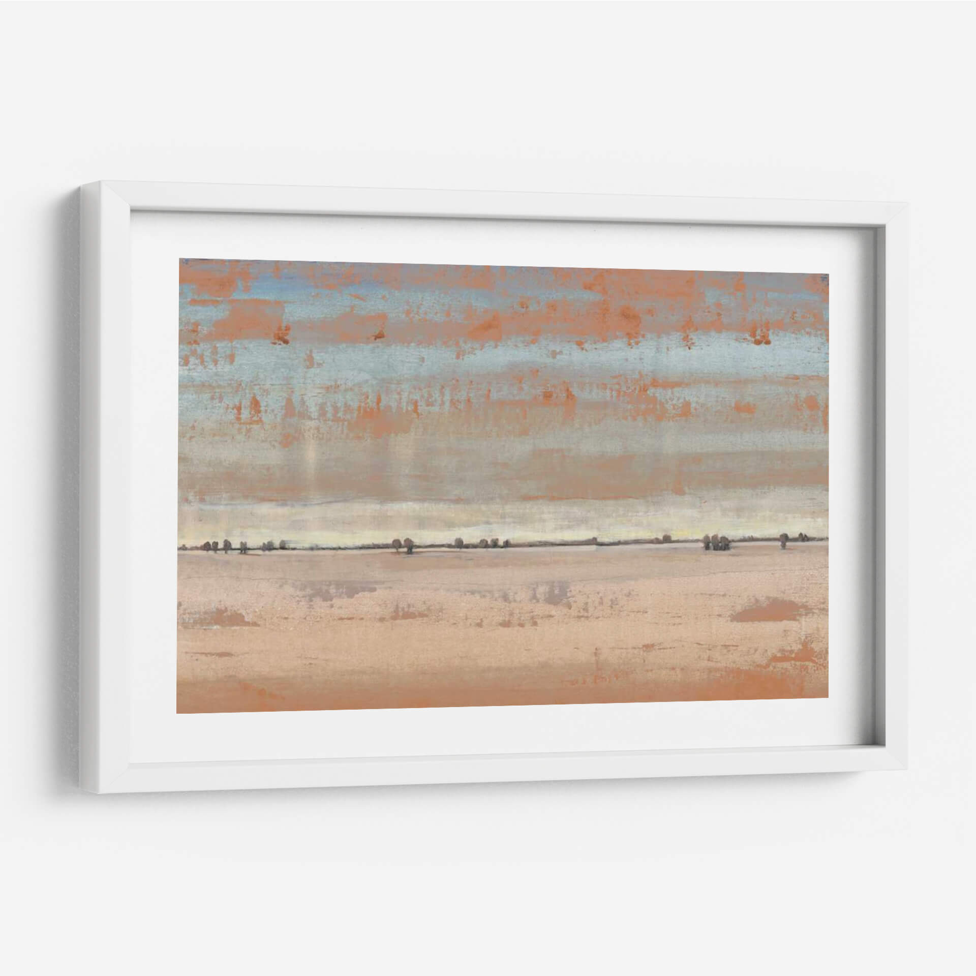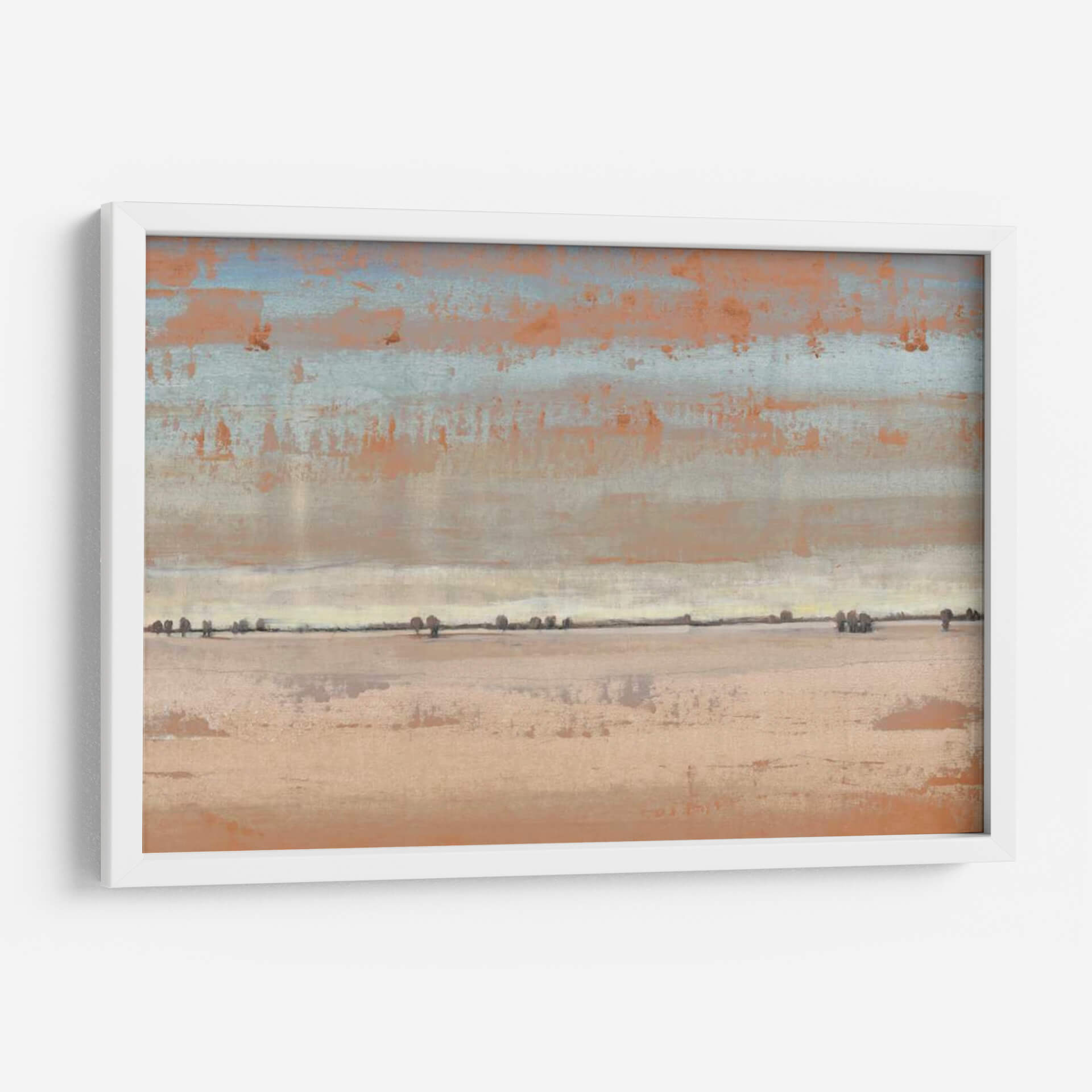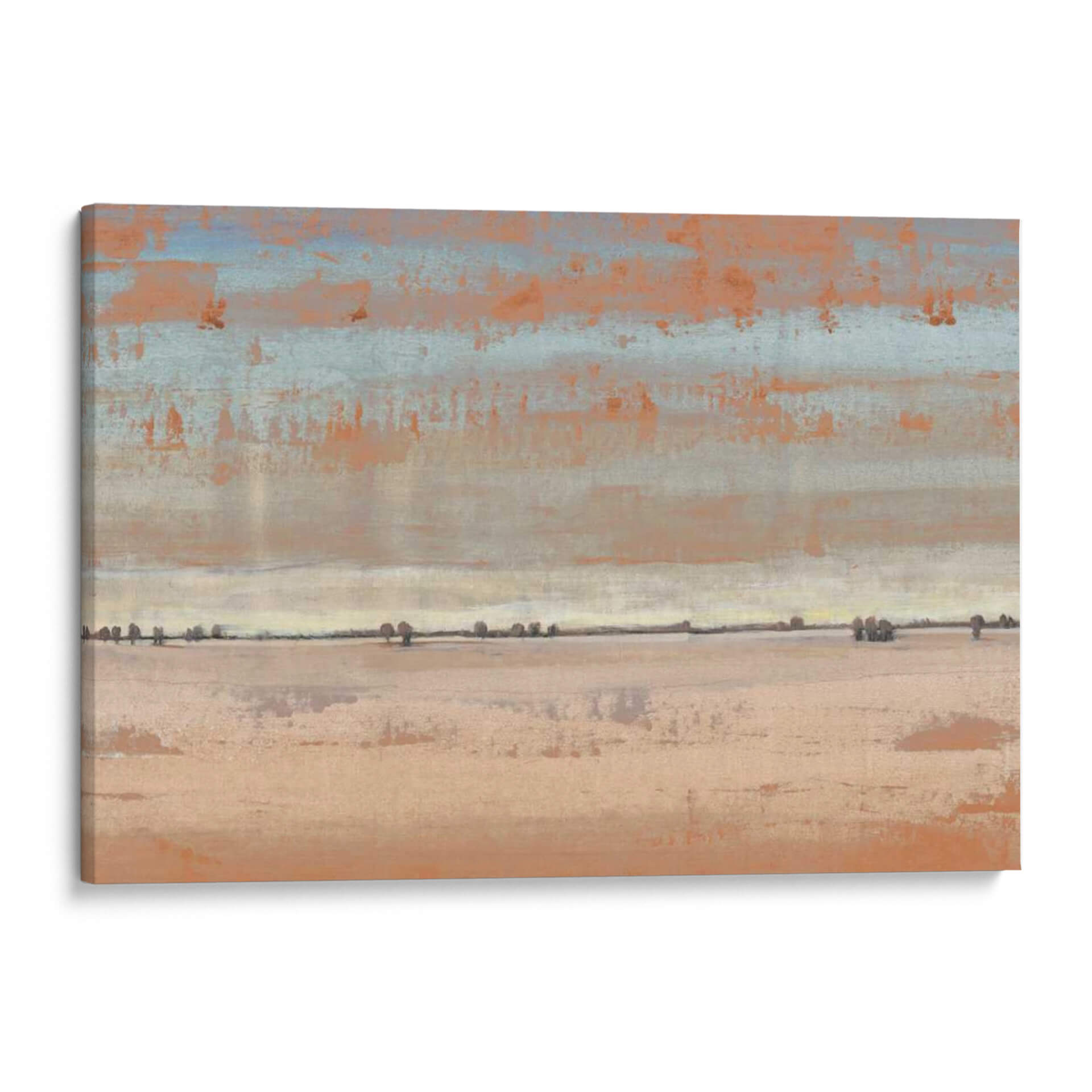 Transporta tu espacio a horizontes serenos con "Southwest Vista I" de Tim O'Toole. Esta cautivadora obra de arte abstracto evoca la inmensidad y la tranquilidad de un paisaje desértico al amanecer o atardecer. La paleta de colores, dominada por tonos tierra, naranjas cálidos y sutiles toques de azul cielo, crea una atmósfera de calma y calidez. Las pinceladas texturizadas y las capas de color sugieren una profundidad intrigante, invitando a la contemplación. La composición, dividida en bandas horizontales que representan el cielo, la línea del horizonte y la tierra, junto con las siluetas dispersas de vegetación, añade un elemento de minimalismo contemplativo. "Southwest Vista I" es ideal para añadir un toque de sofisticación natural y paz a tu sala de estar, dormitorio u oficina. Este cuadro decorativo contemporáneo sirve como un recordatorio visual de la belleza simple y la quietud del mundo natural, convirtiéndose en un punto focal sereno y elegante para cualquier decoración.
