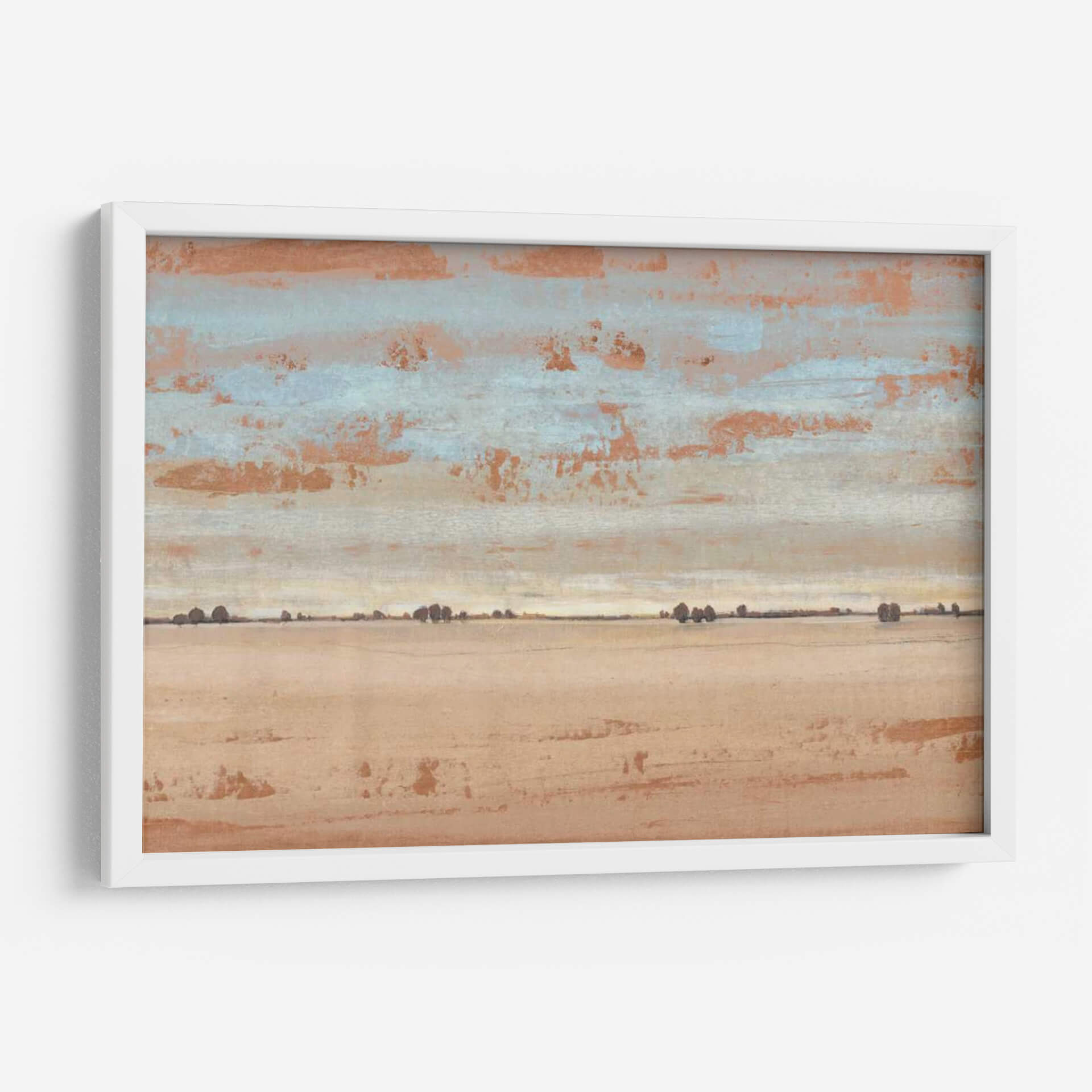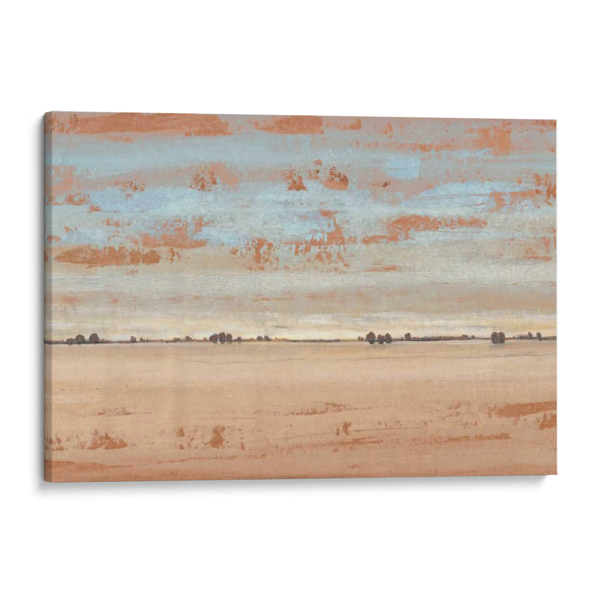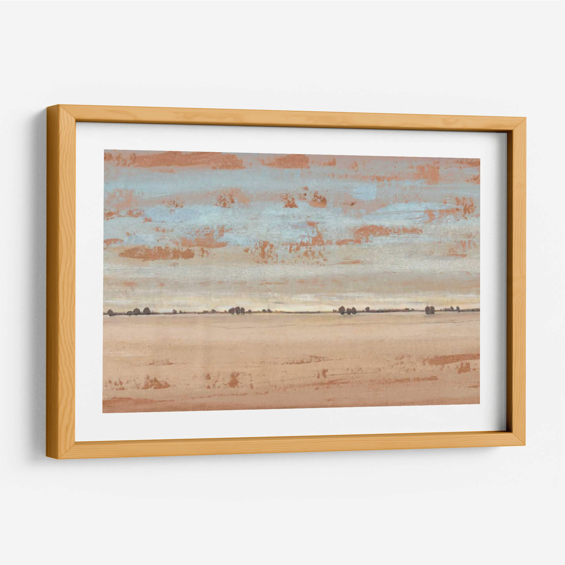 Sumérgete en la serenidad del paisaje con 'Southwest Vista Ii', una obra de arte abstracto de Tim O'Toole que evoca la inmensidad y la tranquilidad de los horizontes abiertos. Esta pieza captura la esencia de una vista expansiva, donde suaves capas de tonos tierra se funden con pinceladas etéreas de azul pálido y sutiles toques de terracota, creando una atmósfera etérea y contemplativa. La composición minimalista, con una línea de horizonte definida por una sutil silueta de árboles dispersos, invita a la meditación y al respiro. El estilo pictórico, con texturas que sugieren la caricia del viento sobre la tierra, añade profundidad y carácter a la obra. 'Southwest Vista Ii' es ideal para espacios que buscan un toque de calma y conexión con la naturaleza, como un dormitorio sereno, una sala de estar acogedora o una oficina que necesite un punto de enfoque pacífico. Este cuadro decorativo contemporáneo transformará tu pared en una ventana a la serenidad, aportando equilibrio y una estética refinada a tu decoración.