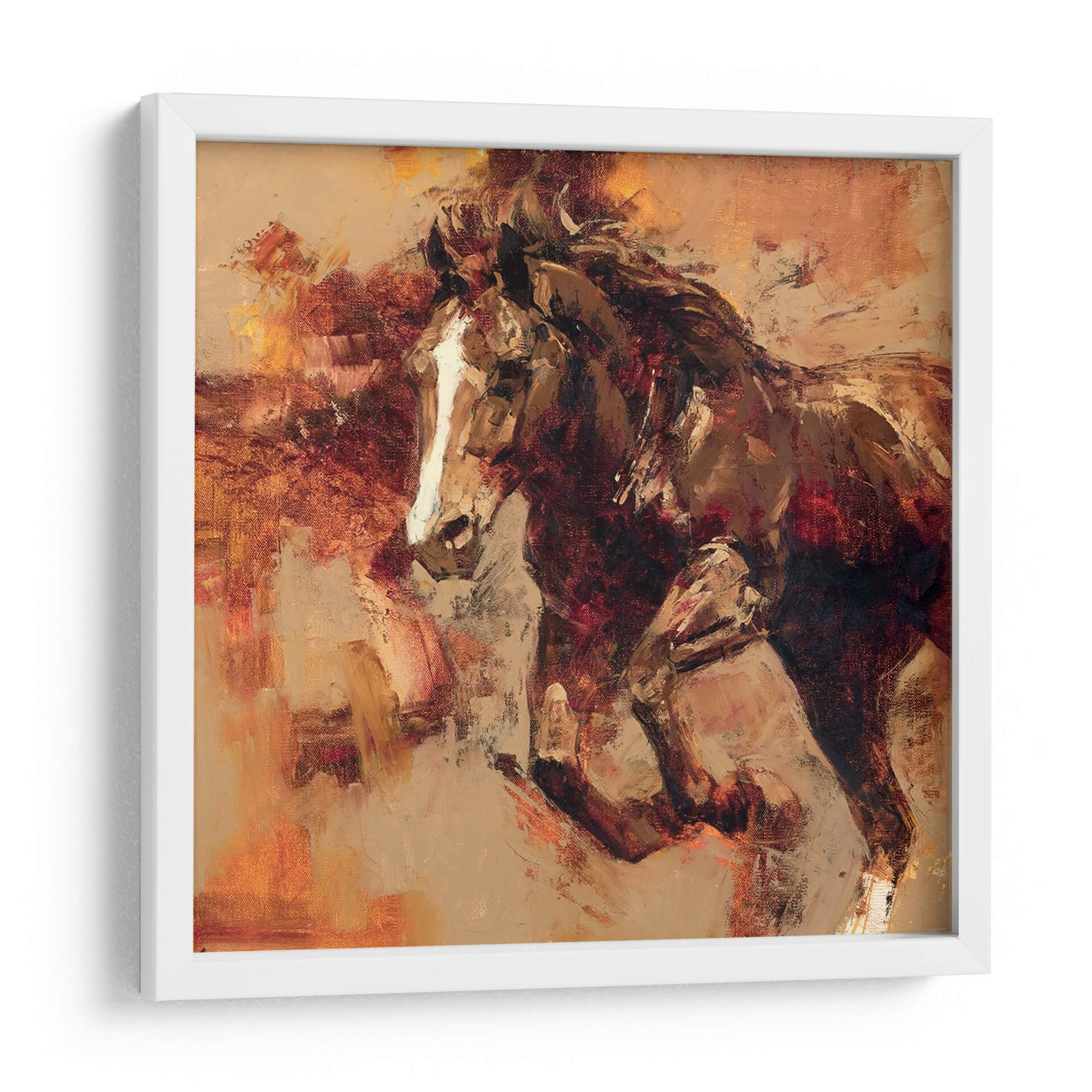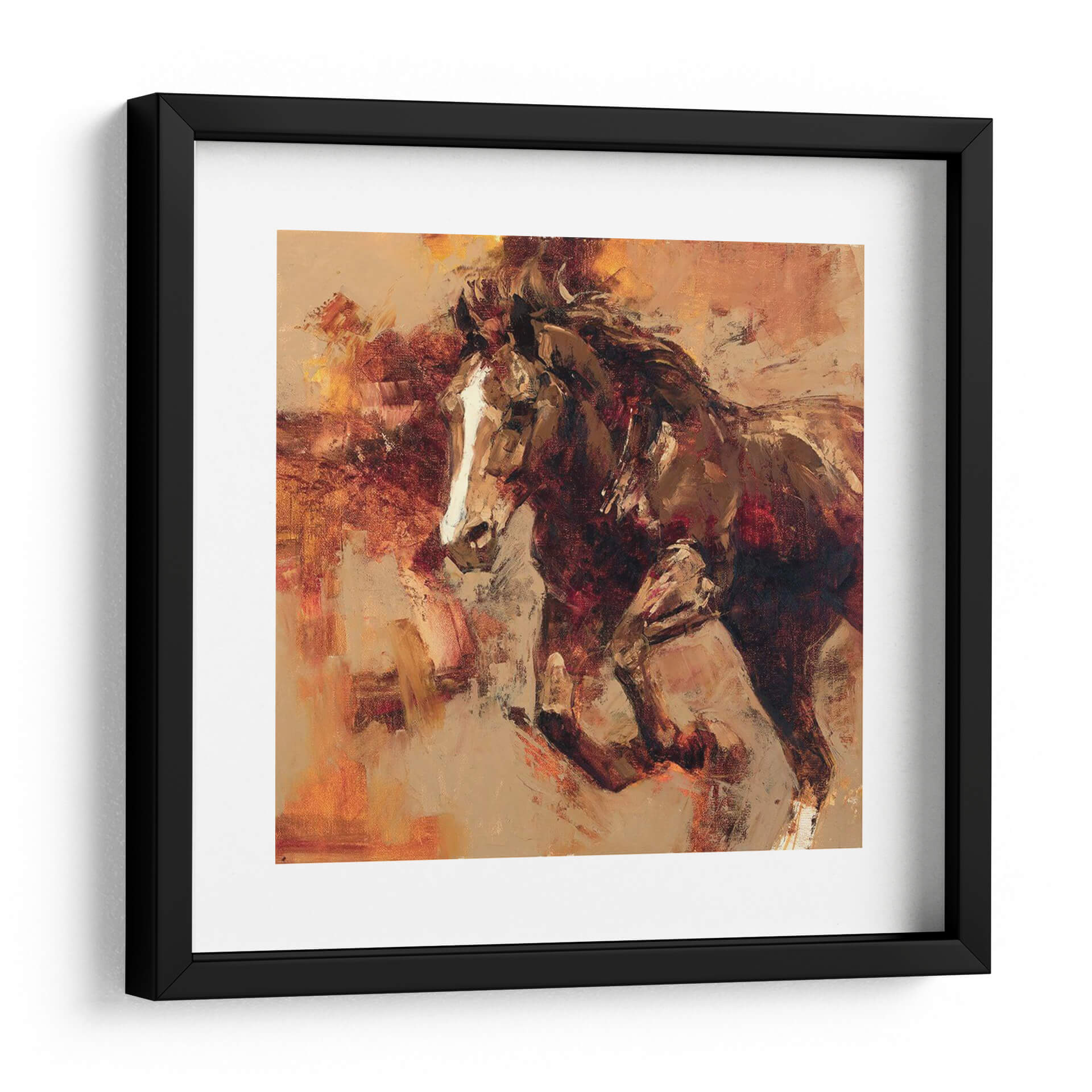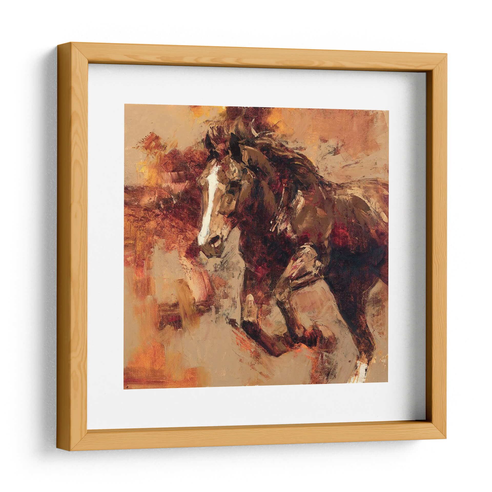Sumérgete en la fuerza y la pasión con el cuadro decorativo "Tierra, Viento, Y Fuego" de Julie T. Chapman. Esta obra maestra captura la esencia indómita de un caballo en pleno galope, un símbolo de libertad y poder. La técnica expresionista de Chapman se manifiesta en pinceladas audaces y texturas ricas que dan vida a la figura del corcel, creando una sensación de movimiento y energía palpable. La paleta de colores, dominada por tonos cálidos de tierra, ocres, rojos intensos y destellos dorados, evoca la fuerza elemental de la naturaleza y la vitalidad desbordante. El contraste entre las sombras profundas y las luces vibrantes añade dramatismo y profundidad a la composición, invitando a la contemplación. Este cuadro decorativo es perfecto para infundir carácter y dinamismo a cualquier espacio, ya sea una sala de estar moderna, un estudio o una oficina que busque un toque de inspiración salvaje. La representación emocional y la maestría técnica hacen de esta pieza una adición impactante y atemporal a tu colección de arte de pared, resonando con aquellos que aprecian la belleza del movimiento y la fuerza de la naturaleza.