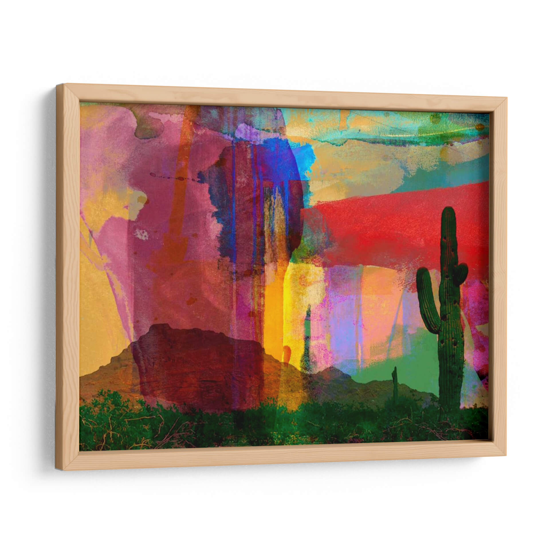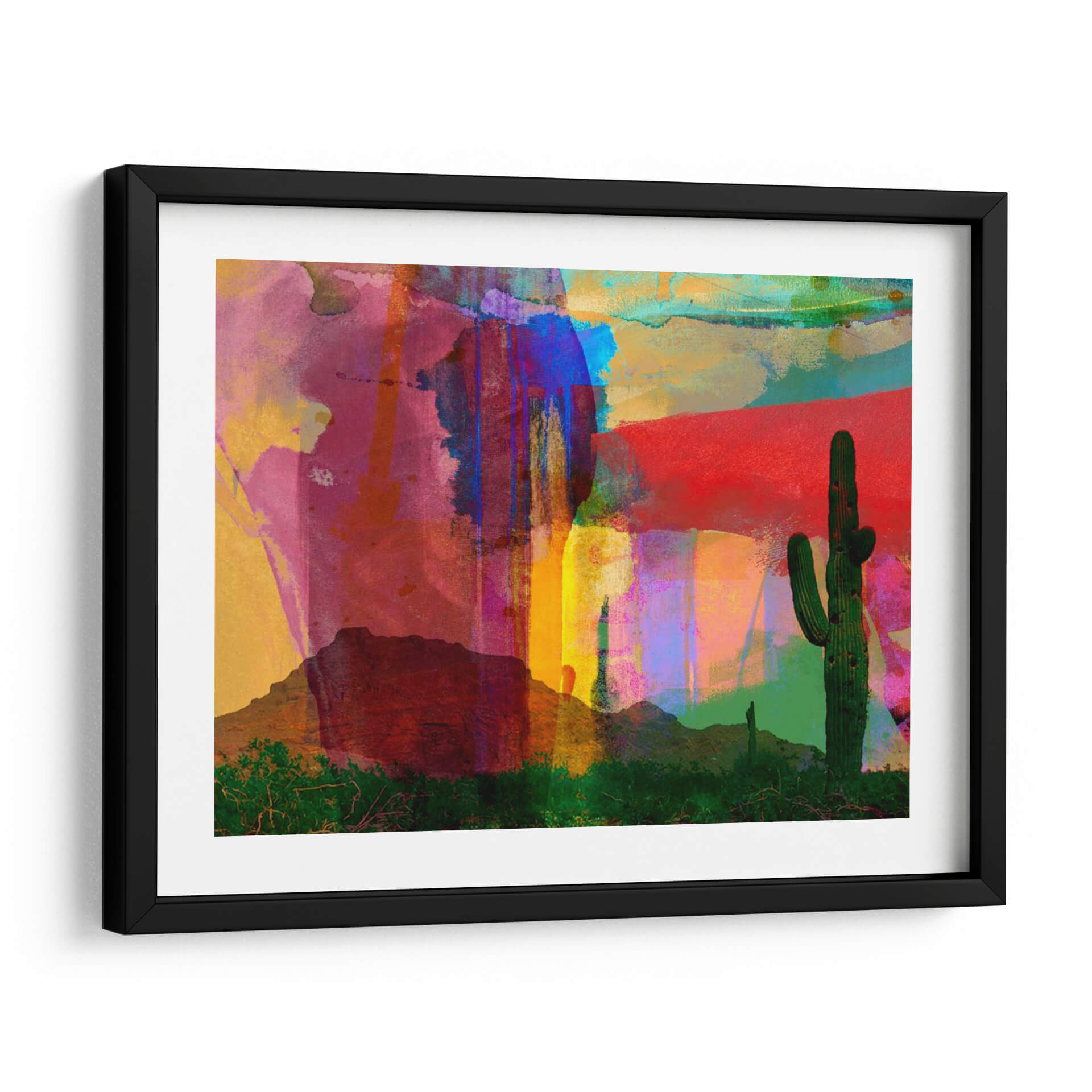 Sumérgete en la vibrante esencia del desierto con "Tiles Indigo Vi", una obra de arte cautivadora de Sisa Jasper que fusiona la abstracción contemporánea con la majestuosidad de la naturaleza. Este cuadro decorativo presenta un vibrante tapiz de colores, donde tonos profundos de índigo y bermellón se entrelazan con explosiones de amarillo, azul eléctrico y magenta, creando una atmósfera energética y a la vez serena. Las formas abstractas, evocando texturas y paisajes desérticos estilizados, se superponen a siluetas de cactus icónicos y montañas bajas, invitando a la contemplación. La composición audaz y la paleta de colores intensa hacen de esta pieza un punto focal ideal para cualquier espacio moderno, aportando vida y carácter. "Tiles Indigo Vi" no es solo una decoración; es una experiencia visual que transporta a quien la contempla a un paisaje onírico, ideal para salas de estar, oficinas o cualquier ambiente que busque un toque de originalidad y expresión artística. Descubre la fusión perfecta entre lo orgánico y lo abstracto en esta pieza única, diseñada para inspirar y transformar tu entorno con su fuerza visual y su profunda conexión con la tierra.
