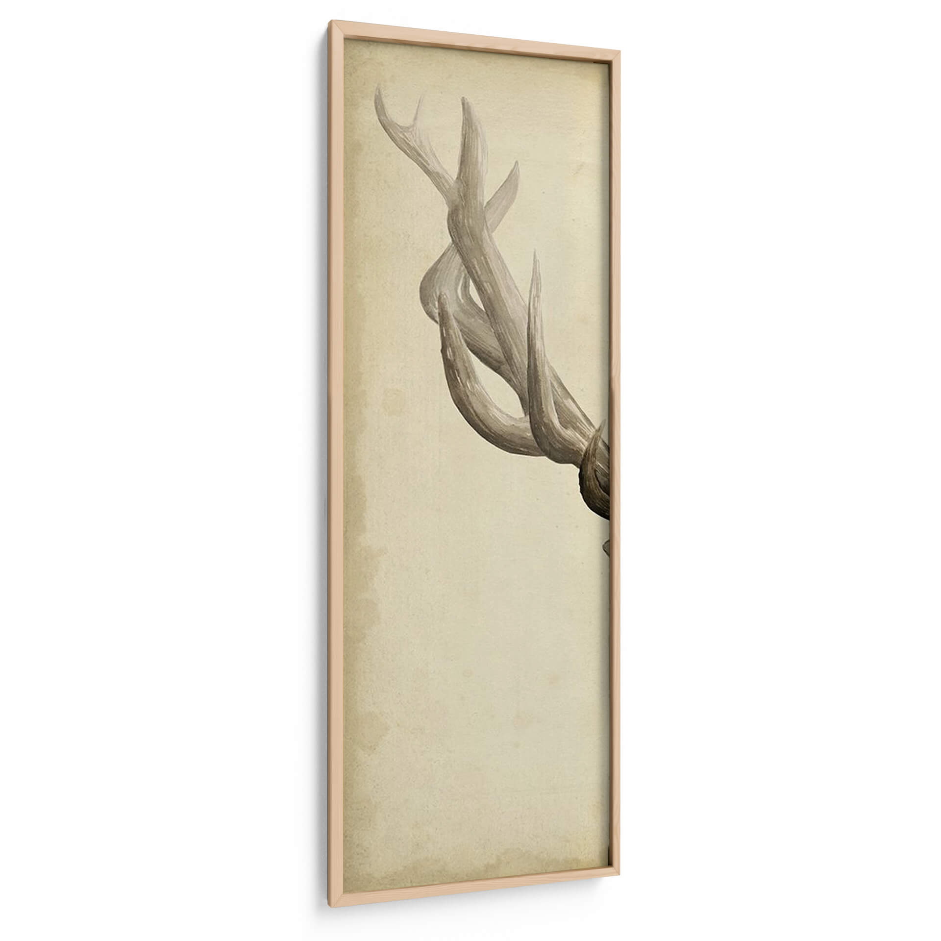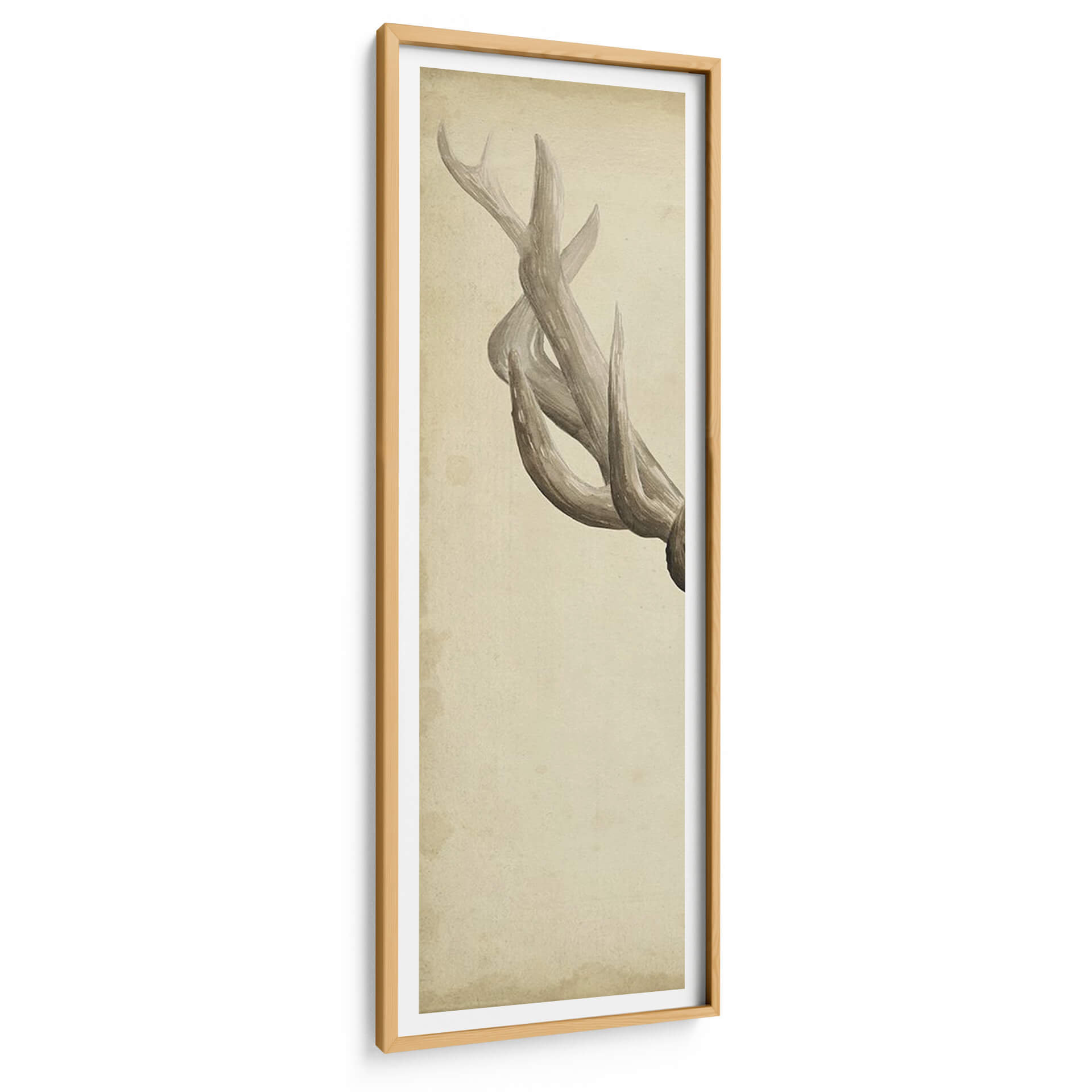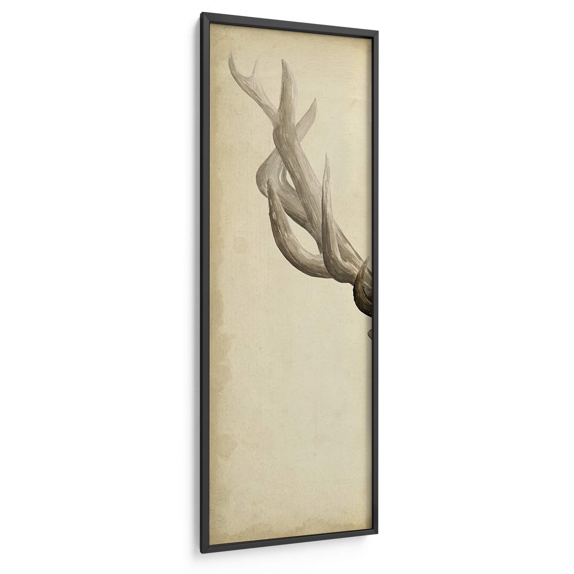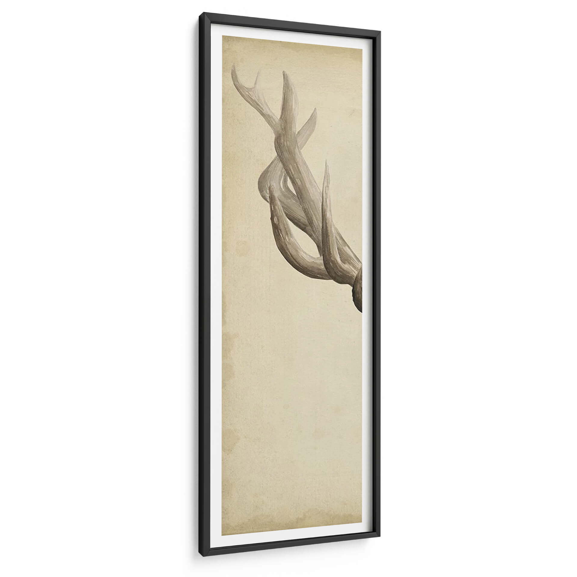Sumérgete en la majestuosidad de la naturaleza con nuestro exclusivo cuadro decorativo "Tríptico Alces I" de Grace Popp. Esta obra de arte, que captura la elegancia atemporal de las astas de alce, se presenta en una paleta de colores serenos y tonos tierra que evocan una sensación de calma y conexión con el entorno natural. La composición vertical, con un enfoque detallado en la textura y forma de las astas, añade un toque sofisticado y orgánico a cualquier espacio. Ideal para salones, dormitorios o estudios que buscan una atmósfera de tranquilidad y refinamiento. La técnica sutil y el estilo distintivo de Grace Popp confieren a esta pieza un carácter único, convirtiéndola en un punto focal que inspira contemplación y serenidad. Este cuadro decorativo no solo embellece tus paredes, sino que también transporta la esencia del bosque a tu hogar, creando un ambiente acogedor y lleno de vida. Transforma tu decoración con la belleza natural y la elegancia artística de este tríptico.