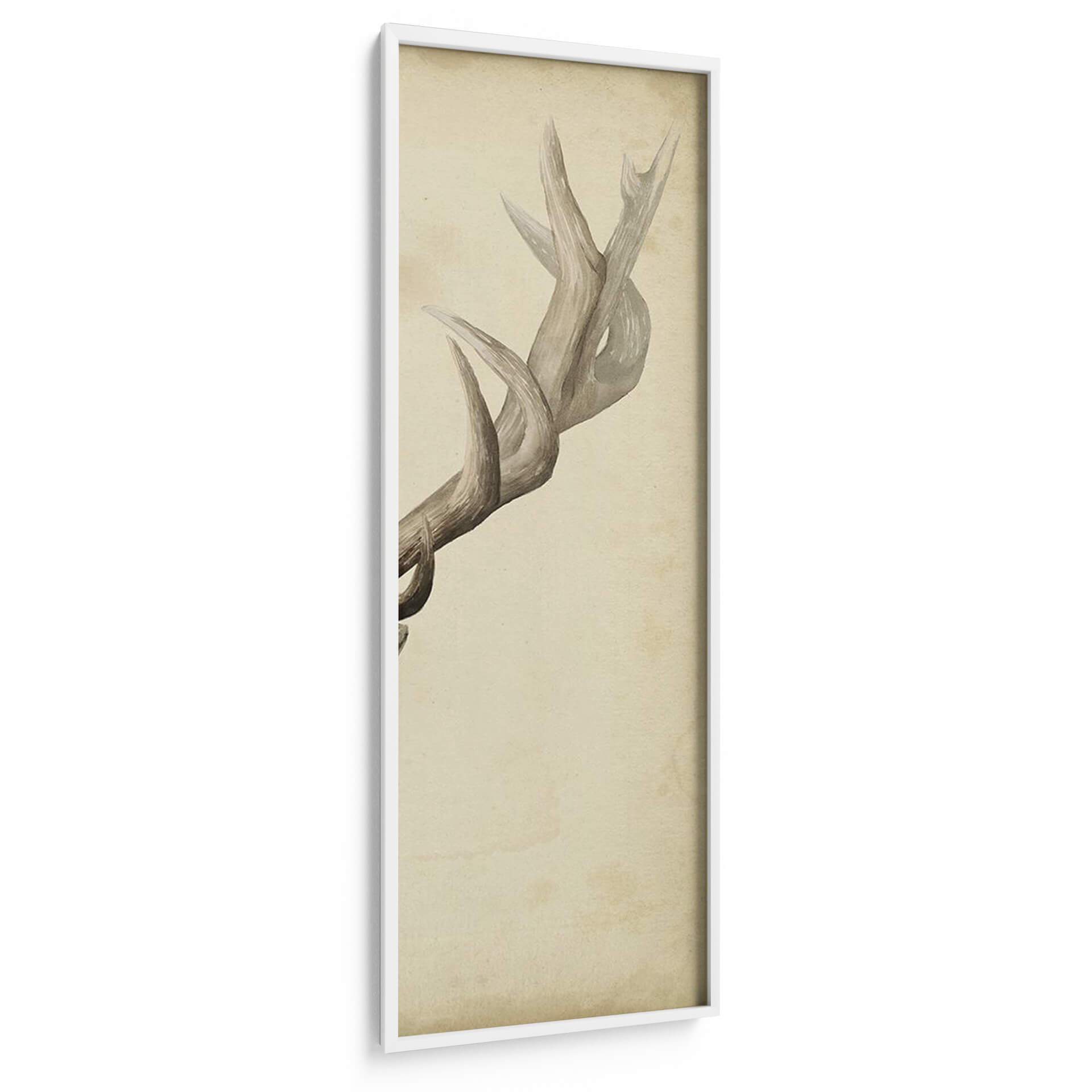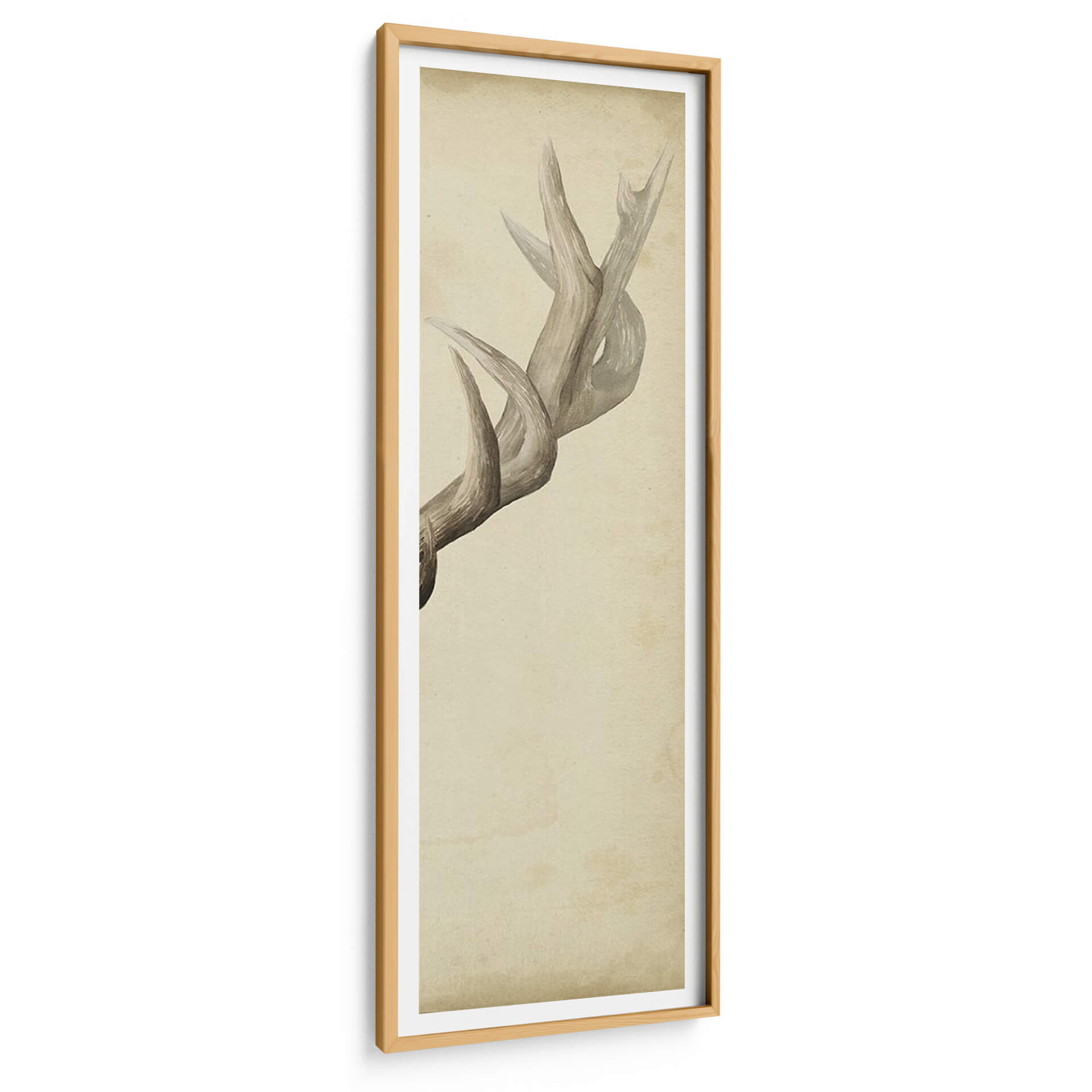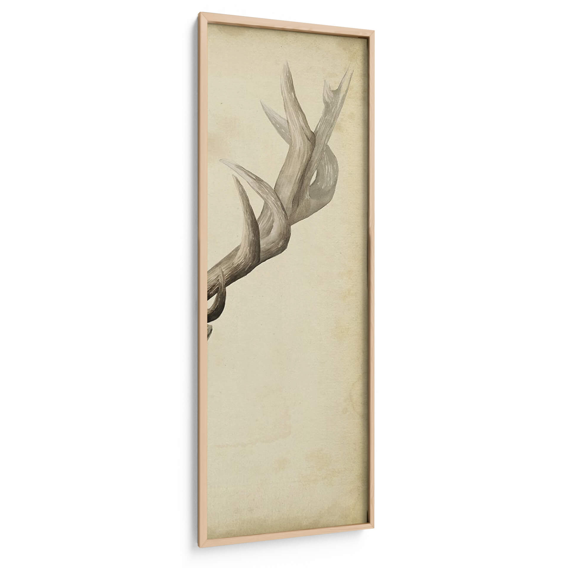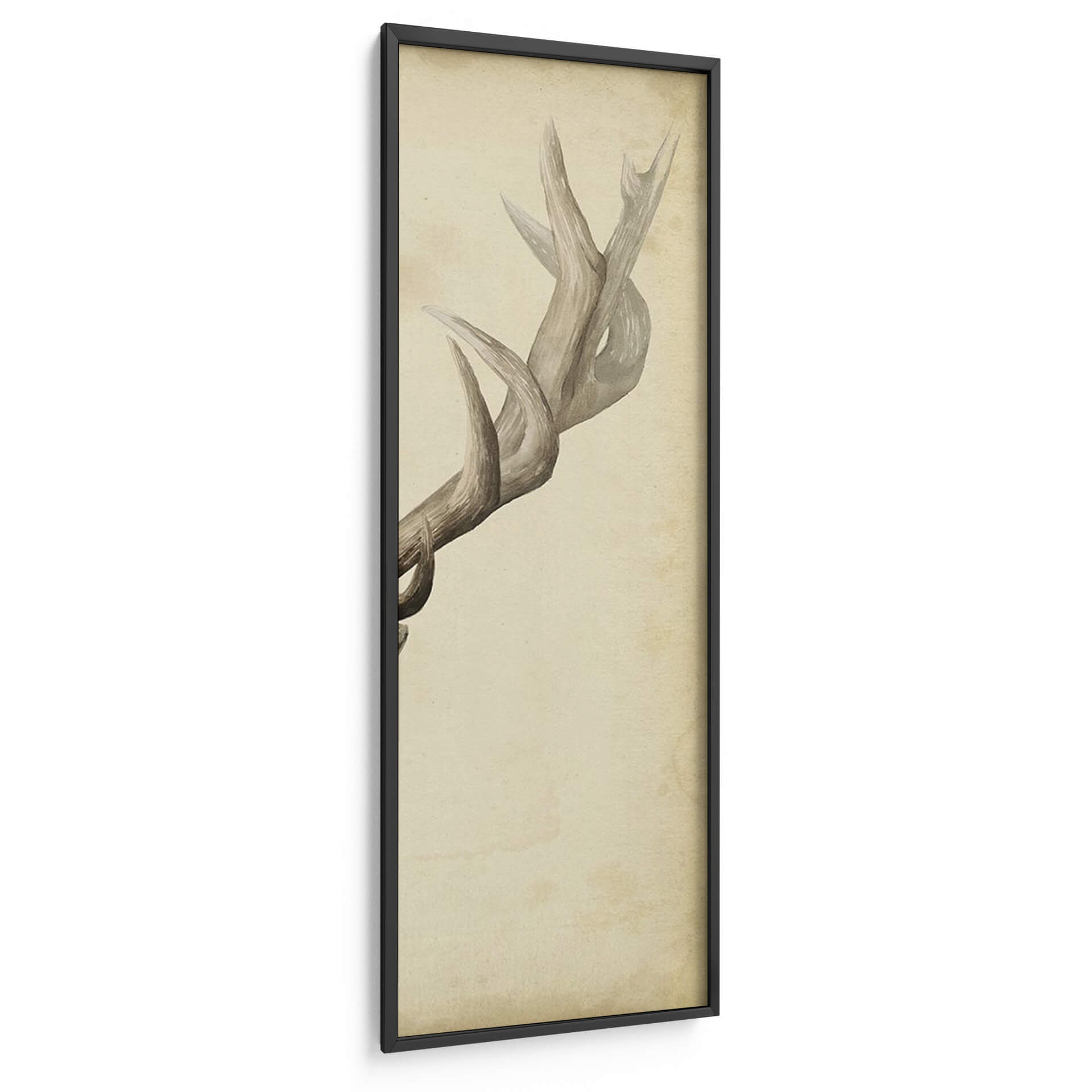 Transforma tu espacio con el 'Tríptico Elk III', una obra de arte contemporáneo que evoca la majestuosidad de la naturaleza. Esta pieza, creada por la talentosa Grace Popp, presenta un detallado estudio de astas de alce en tonos tierra y sepia, ejecutado con una delicadeza que recuerda a las acuarelas botánicas antiguas. La paleta de colores suaves y neutros, sobre un fondo texturizado que simula papel envejecido, aporta una sensación de calma y serenidad, ideal para cualquier ambiente que busque un toque de elegancia rústica y sofisticación natural. Su composición vertical y alargada lo hace perfecto para pasillos, entradas o para complementar espacios con techos altos, añadiendo profundidad y un punto focal orgánico. El estilo artístico, con un toque de realismo y una ejecución que sugiere sutileza, invita a la contemplación y a la conexión con el mundo salvaje. El 'Tríptico Elk III' no es solo una decoración, es una ventana a la belleza atemporal de la fauna, diseñada para enriquecer tu hogar u oficina con una atmósfera de paz y estilo refinado. Descubre cómo este cuadro decorativo puede ser el acento perfecto en tu decoración, aportando carácter y una conexión sutil con la tierra y sus criaturas.