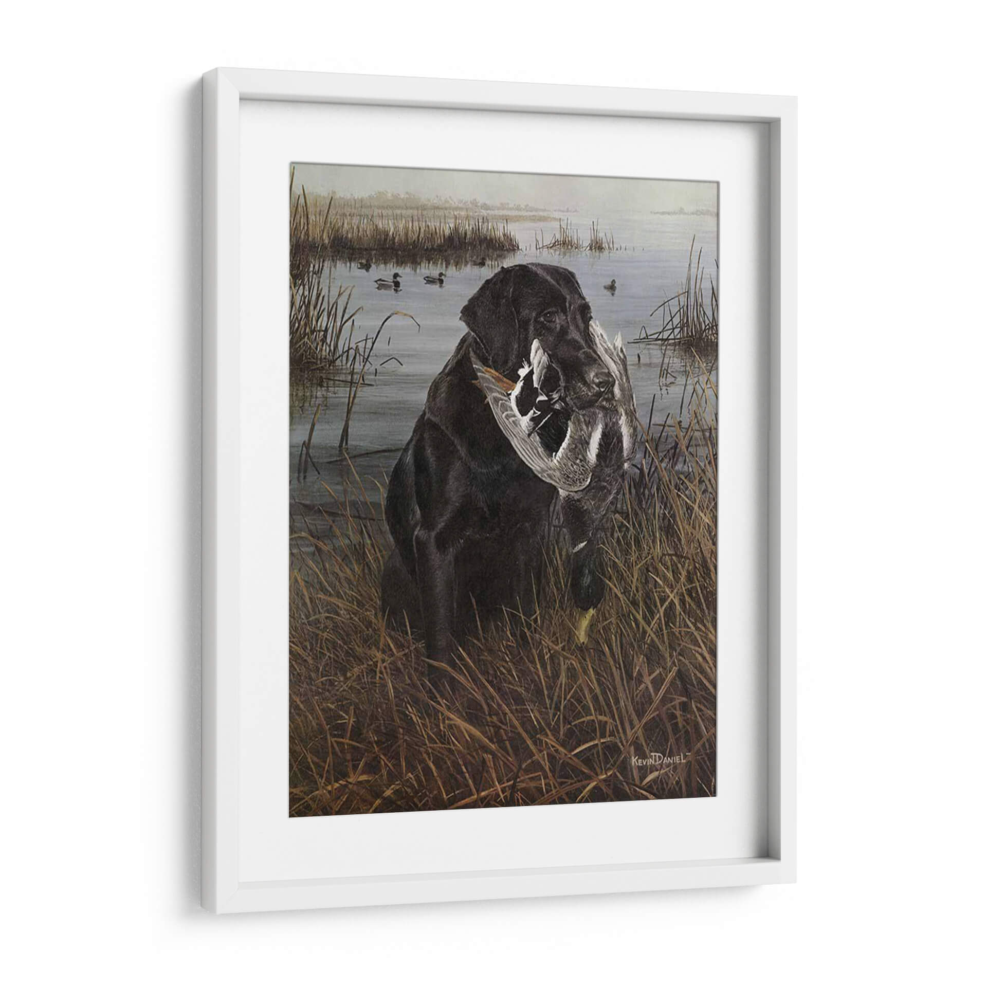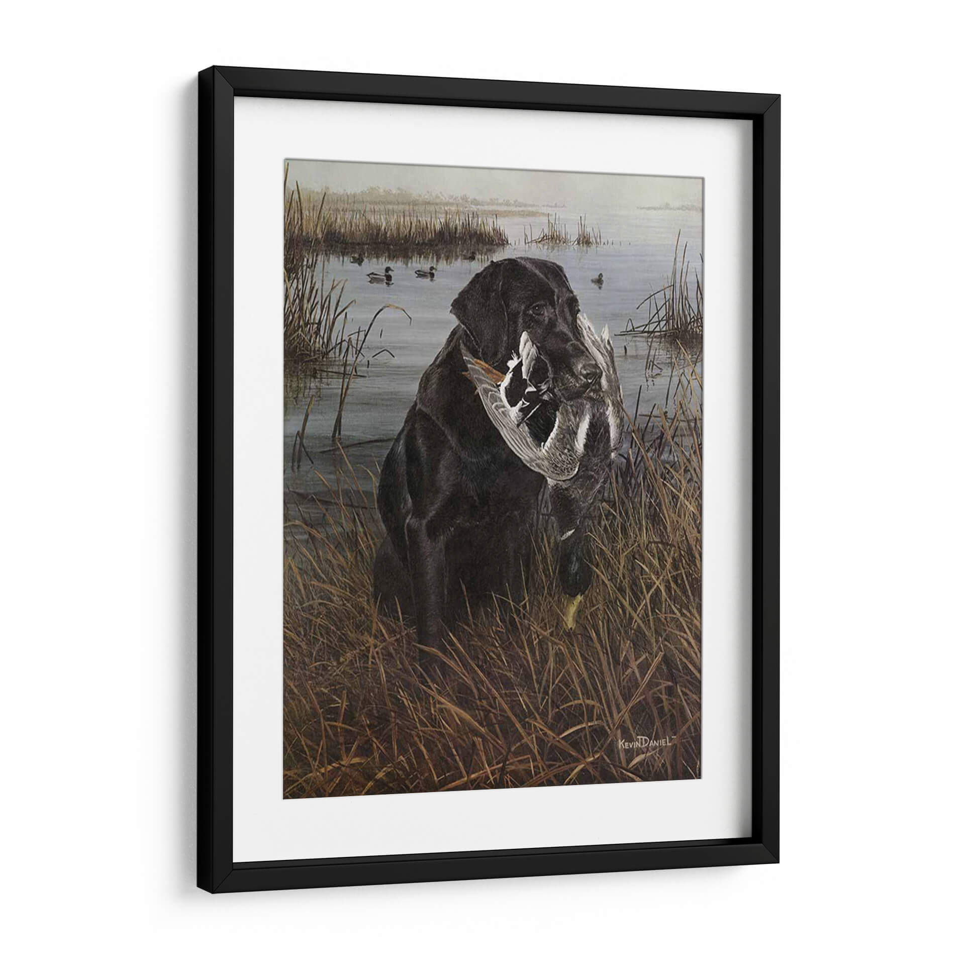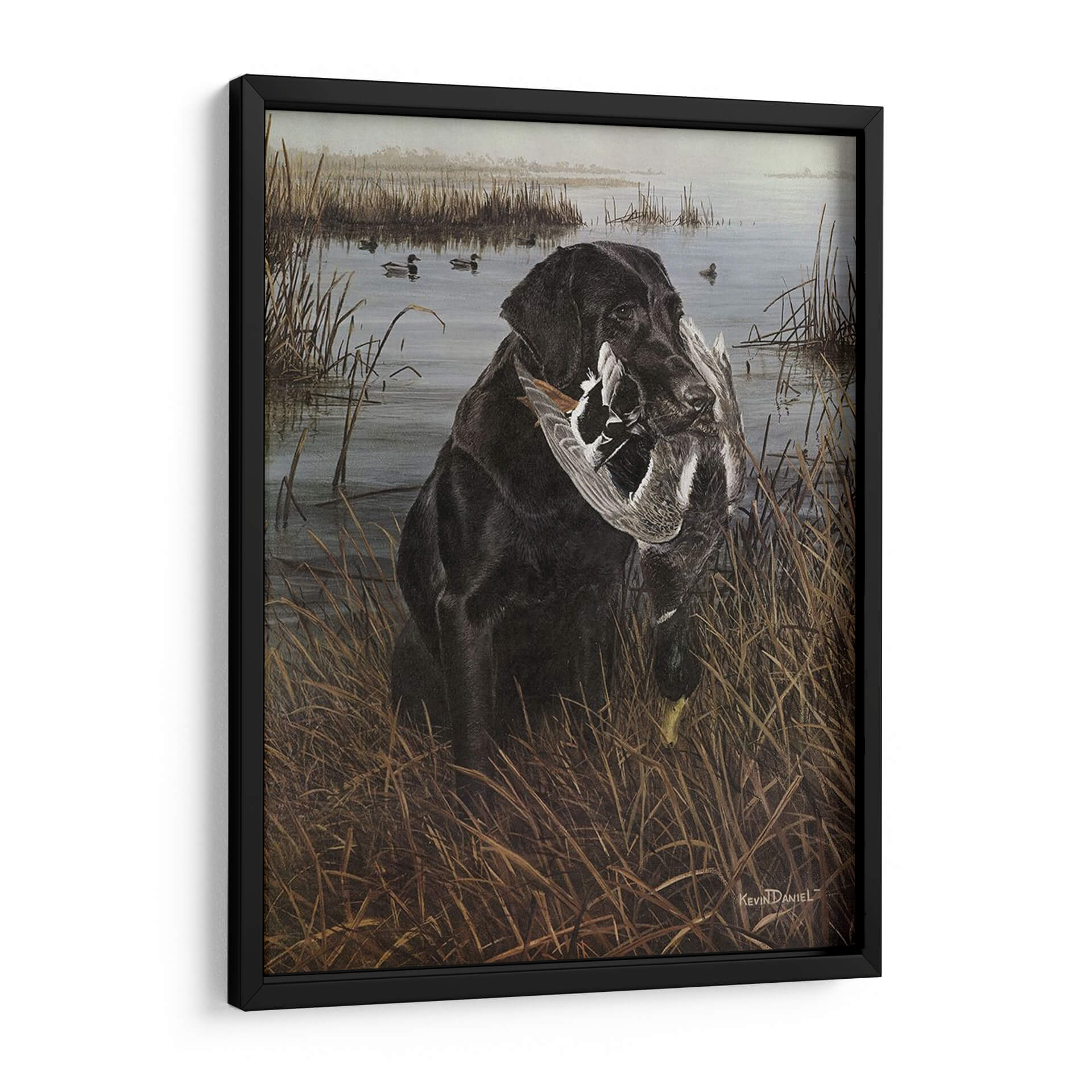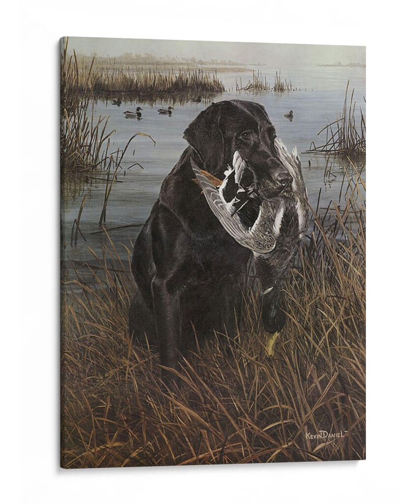 Sumérgete en la serena escena de caza con nuestro cautivador cuadro decorativo "Un Amigo En El Pantano", una obra maestra del artista Kevin Daniel. Esta pieza captura la esencia de la lealtad y la naturaleza con un impresionante labrador negro que porta con orgullo su presa en un paisaje de pantano brumoso y tranquilo. Los tonos tierra y los verdes apagados crean una atmósfera evocadora y realista, transportándote a la quietud de un amanecer o atardecer en la naturaleza. El detalle en la pelusa del perro y las plumas de las aves es exquisito, mostrando la maestría del artista. Este cuadro es perfecto para los amantes de la caza, los apasionados por los perros o cualquiera que aprecie el arte realista y conmovedor. Añade un toque de elegancia rústica y una historia a tu hogar u oficina, creando un punto focal que evoca la conexión entre el hombre y el animal, y la belleza del mundo natural. Una pieza que habla de dedicación, habilidad y la serena belleza de la vida silvestre.