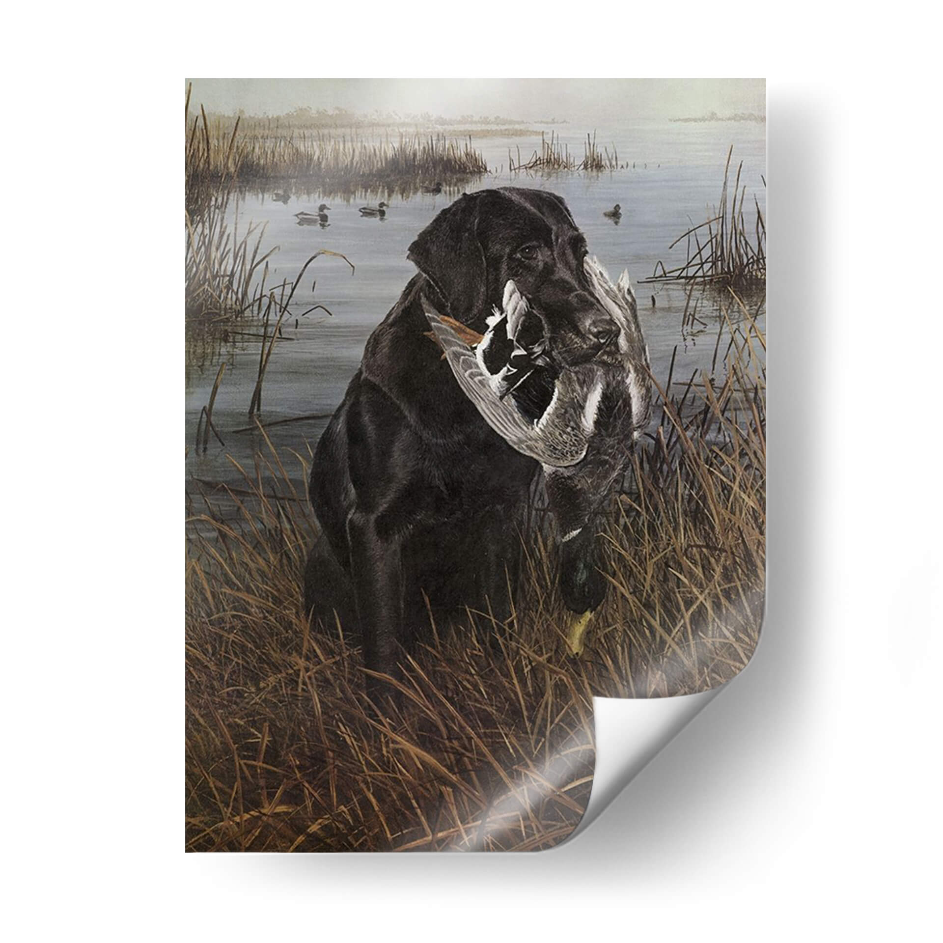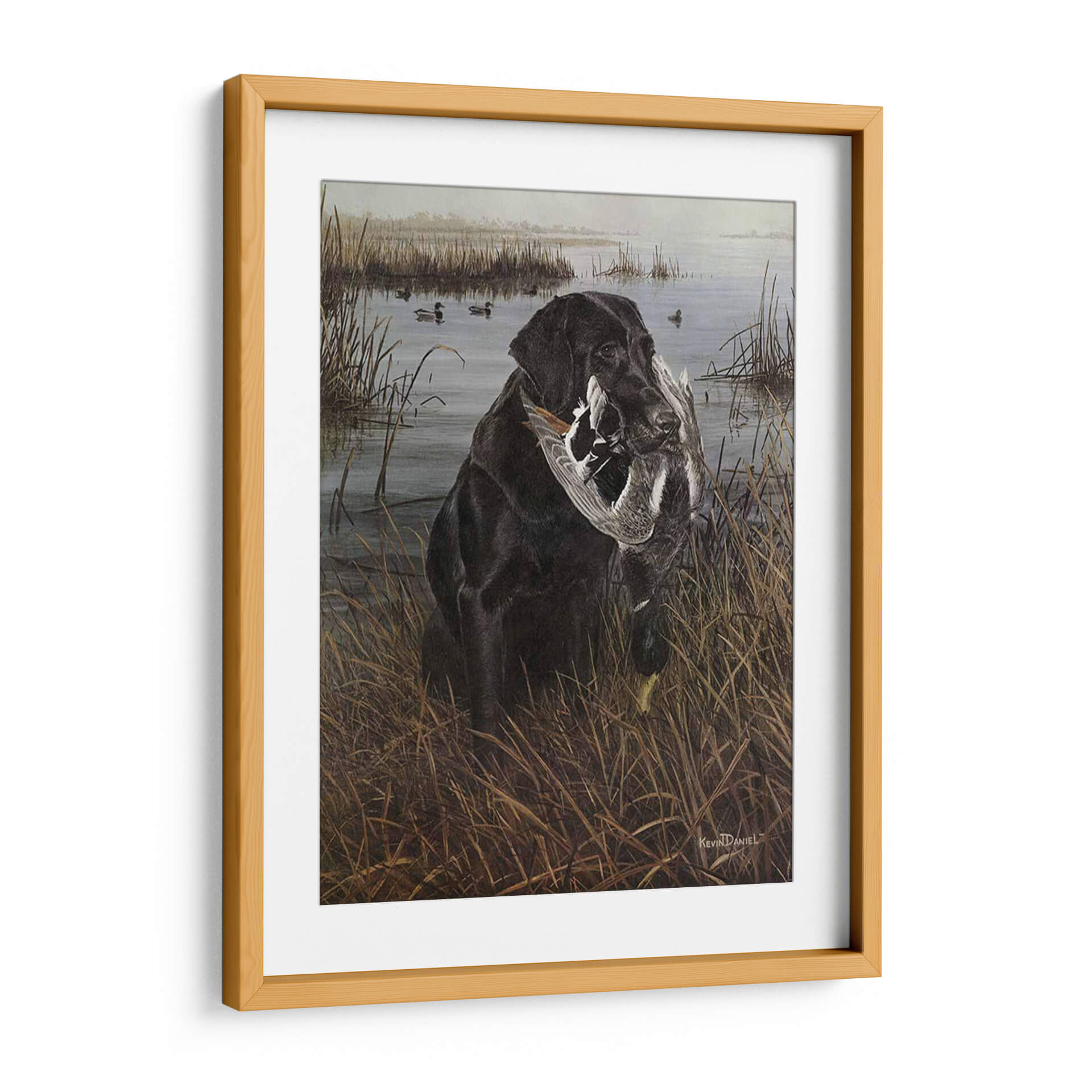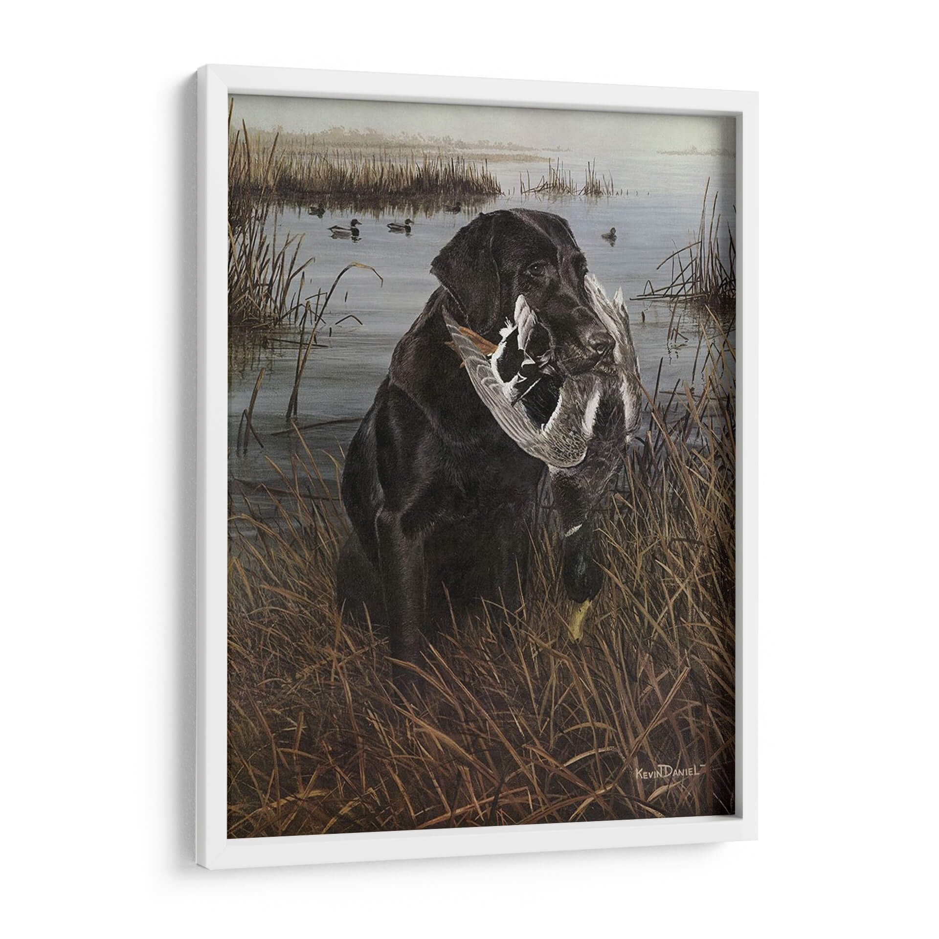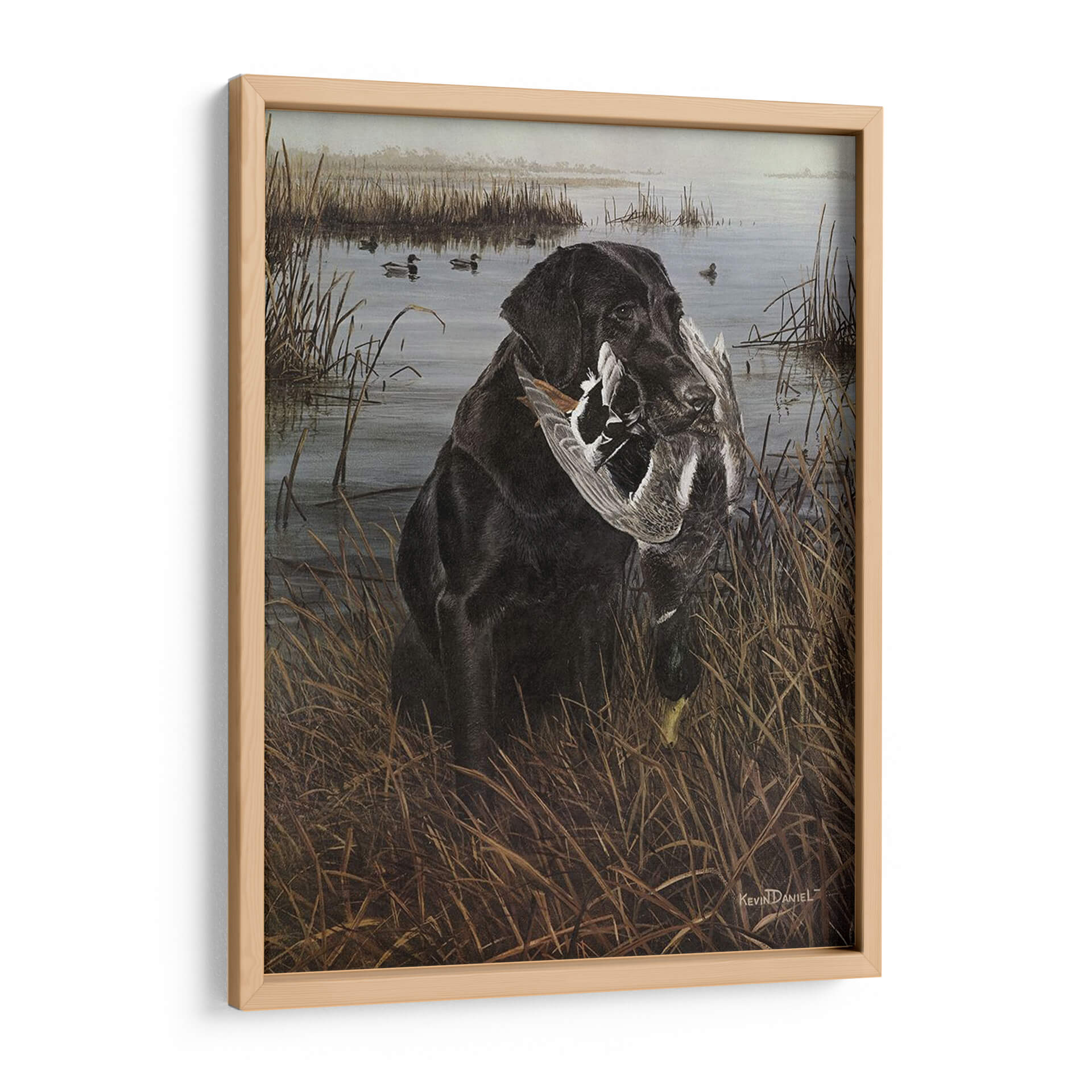 Sumérgete en la serena escena de caza con nuestro cautivador cuadro decorativo "Un Amigo En El Pantano", una obra maestra del artista Kevin Daniel. Esta pieza captura la esencia de la lealtad y la naturaleza con un impresionante labrador negro que porta con orgullo su presa en un paisaje de pantano brumoso y tranquilo. Los tonos tierra y los verdes apagados crean una atmósfera evocadora y realista, transportándote a la quietud de un amanecer o atardecer en la naturaleza. El detalle en la pelusa del perro y las plumas de las aves es exquisito, mostrando la maestría del artista. Este cuadro es perfecto para los amantes de la caza, los apasionados por los perros o cualquiera que aprecie el arte realista y conmovedor. Añade un toque de elegancia rústica y una historia a tu hogar u oficina, creando un punto focal que evoca la conexión entre el hombre y el animal, y la belleza del mundo natural. Una pieza que habla de dedicación, habilidad y la serena belleza de la vida silvestre.