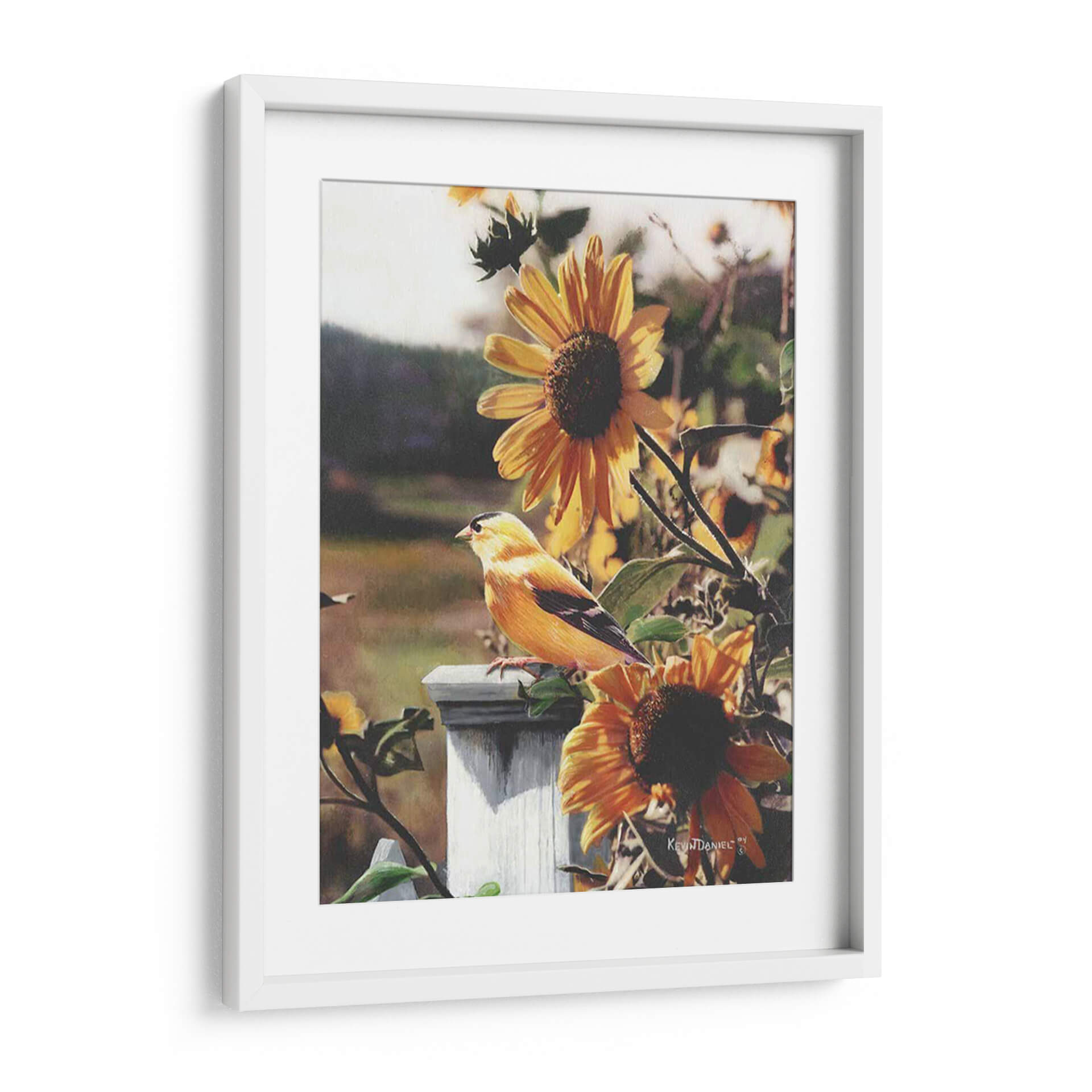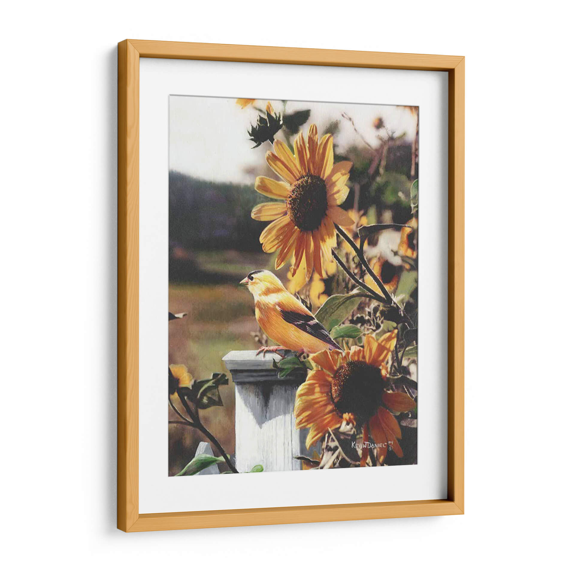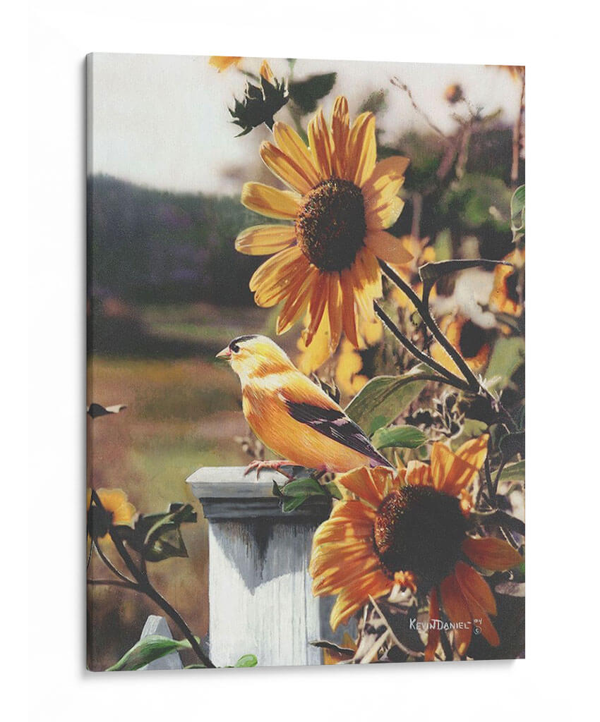 Captura la esencia de una mañana radiante con "Una Mañana Dorada", una obra de arte que evoca calidez y la vibrante belleza de la naturaleza. Este cuadro decorativo presenta un hermoso pájaro posado en una cerca blanca, rodeado de exuberantes girasoles en plena floración. La paleta de colores, dominada por cálidos tonos amarillos y dorados, se complementa con verdes y marrones terrosos, creando una atmósfera serena y acogedora. El estilo realista y detallado de Kevin Daniel da vida a cada pluma del ave y a cada pétalo de las flores, invitando al espectador a sumergirse en una escena campestre llena de luz y vida. Es la pieza perfecta para añadir un toque de optimismo y color a cualquier estancia, ya sea una sala de estar, un dormitorio o una oficina. Imagina la luz del sol filtrándose a través de los girasoles, un momento efímero capturado para siempre en esta impresionante composición. "Una Mañana Dorada" no es solo una obra de arte, es una ventana a un instante de pura felicidad natural que transformará tu espacio, aportando una sensación de paz y conexión con el entorno.