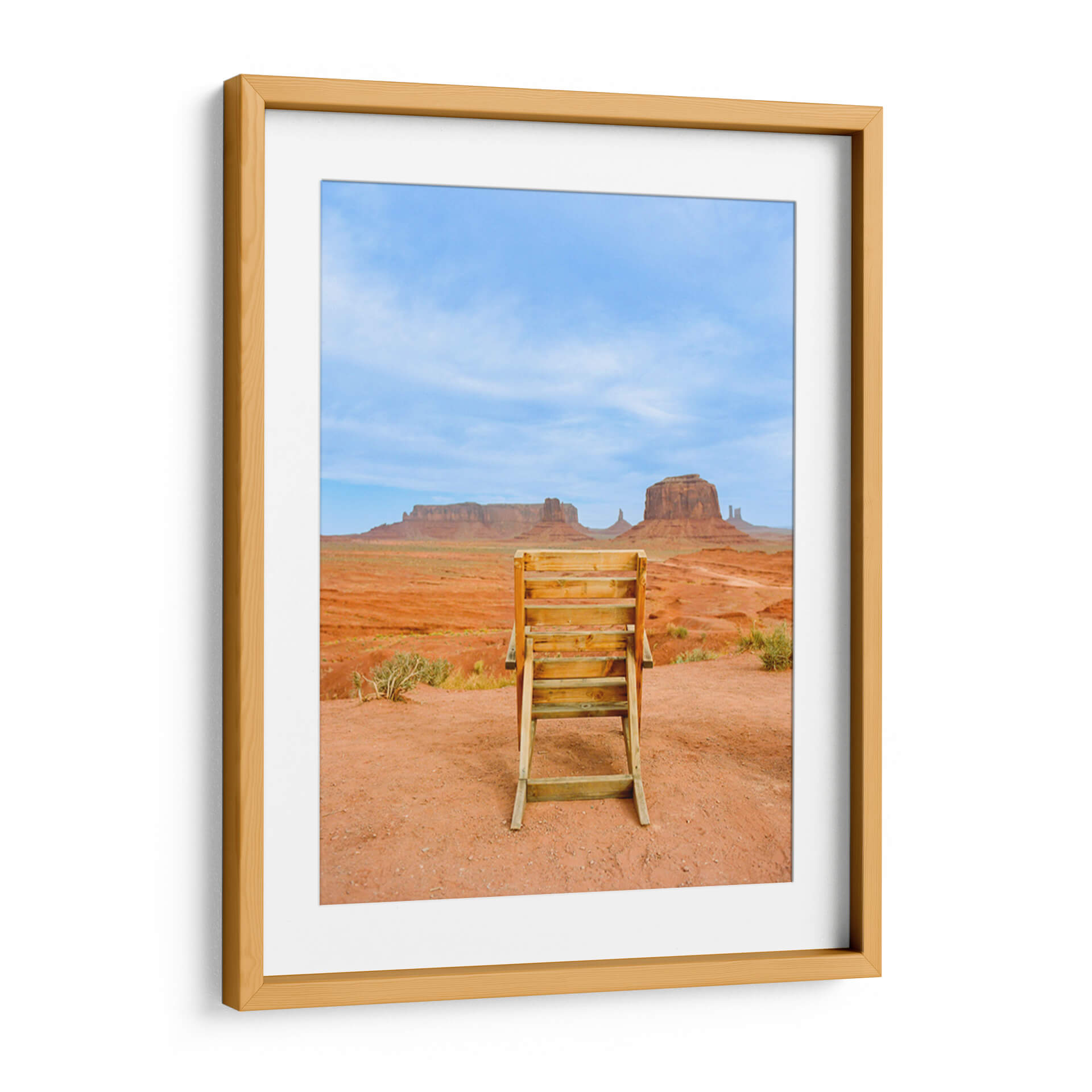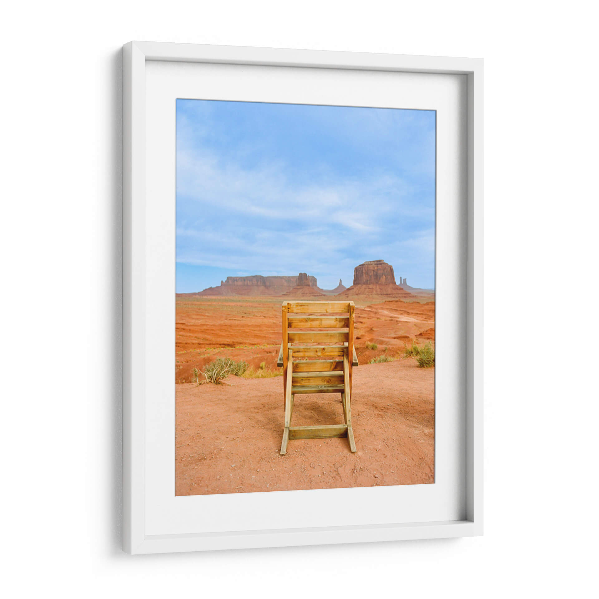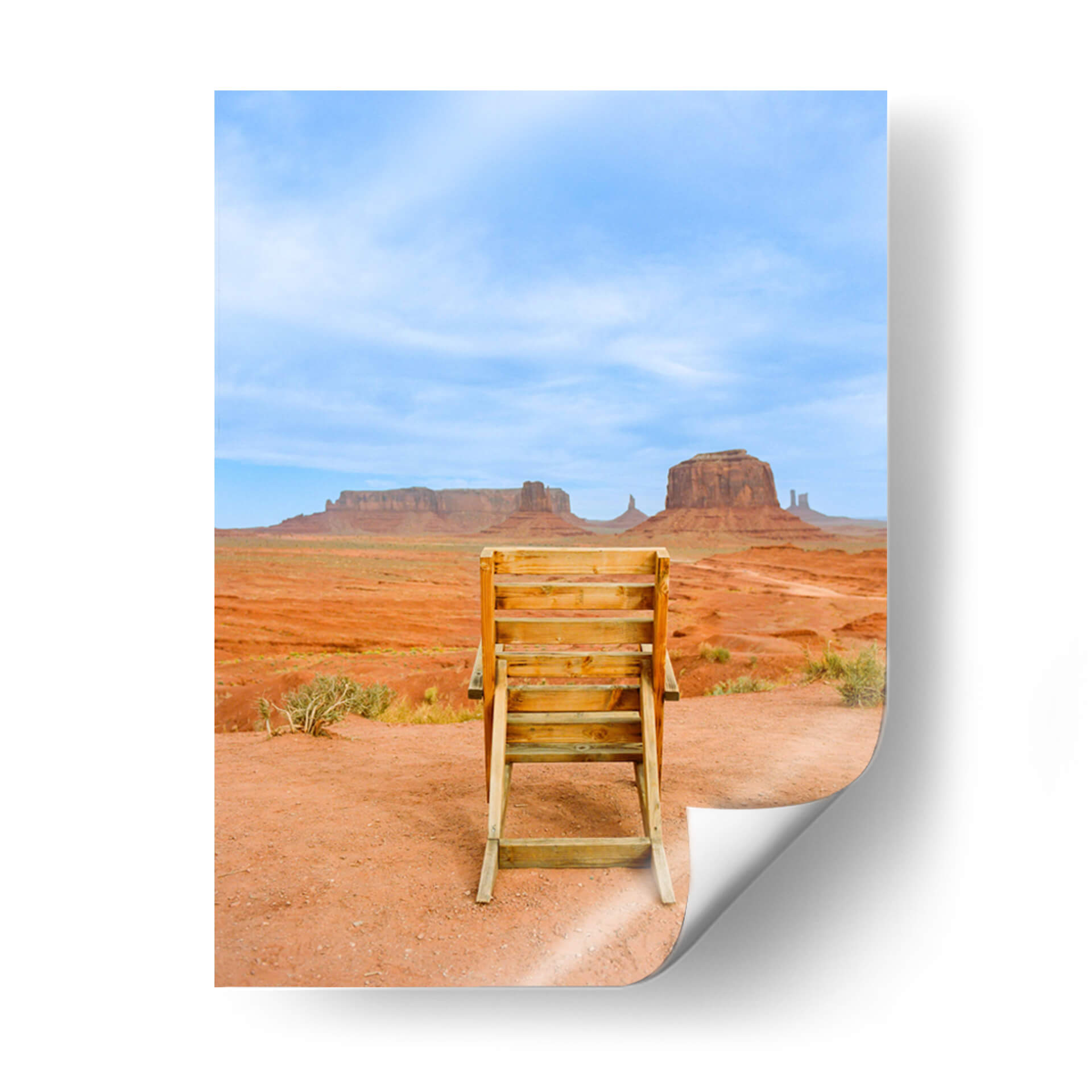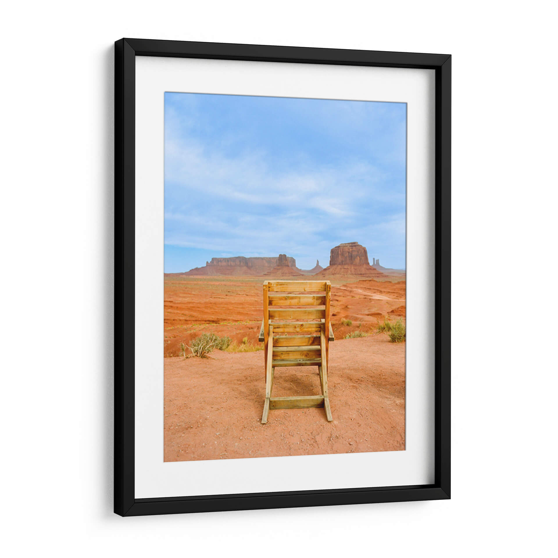 Sumérgete en la majestuosidad del suroeste americano con "Valle de los Monumentos XVIII", una obra de arte que captura la esencia icónica de Monument Valley. Este cuadro decorativo te transporta a un paisaje desértico de tonos rojizos intensos, salpicado por la vegetación escasa y coronado por un cielo azul vibrante, salpicado de nubes tenues. En primer plano, una escalera de madera rústica se erige como un portal a la contemplación, invitando al espectador a una perspectiva única de las imponentes formaciones rocosas que definen este lugar legendario. La composición fotográfica, con su enfoque nítido y su paleta de colores terrosos y celestes, evoca una sensación de calma, grandeza y aventura. Ideal para añadir un toque de naturaleza inspiradora y serena a tu hogar u oficina, este cuadro es perfecto para quienes buscan una conexión con la belleza indómita de la naturaleza y los espacios amplios y abiertos. Transforma tu pared en una ventana a uno de los paisajes más fotografiados del mundo, una pieza que inspira reflexión y admiración.