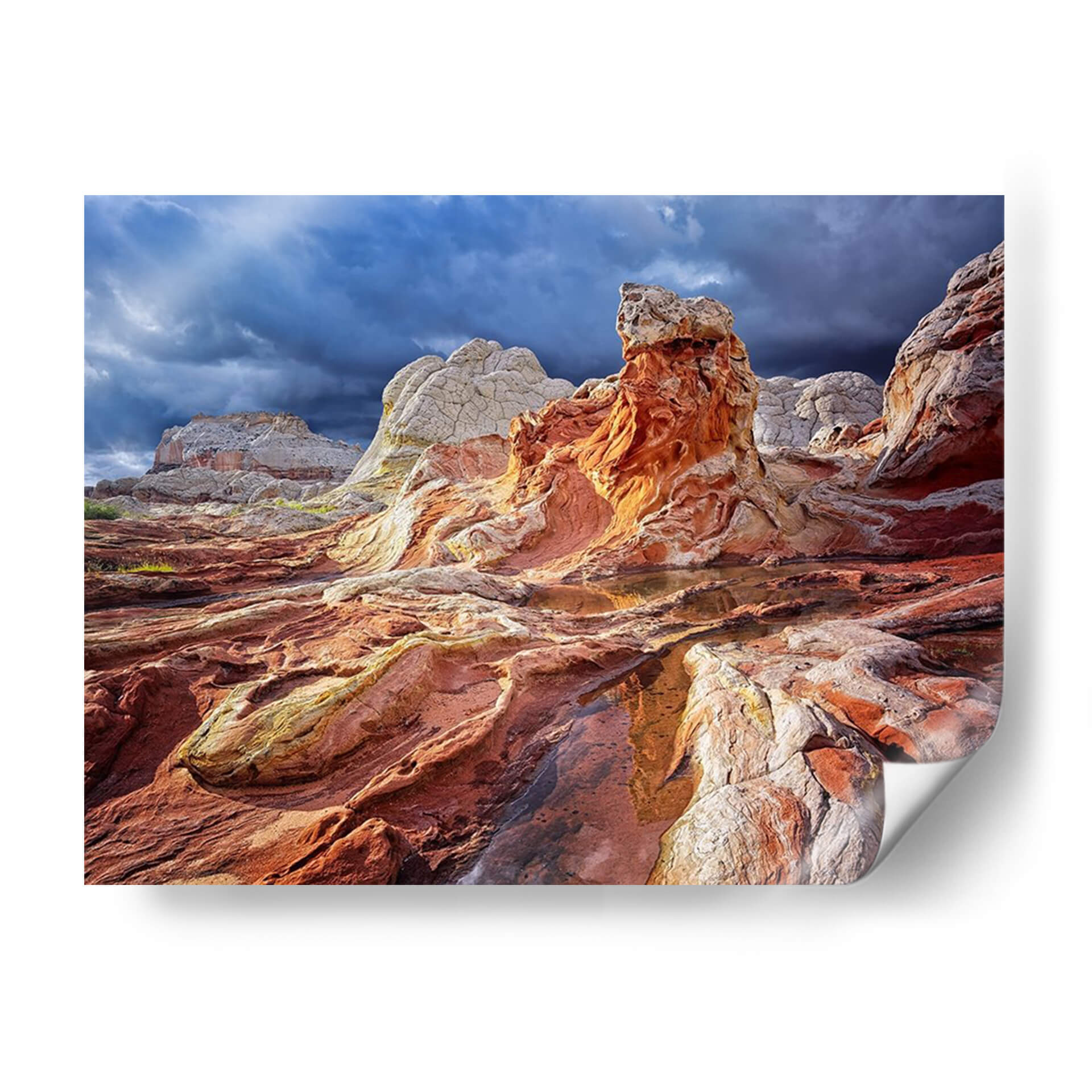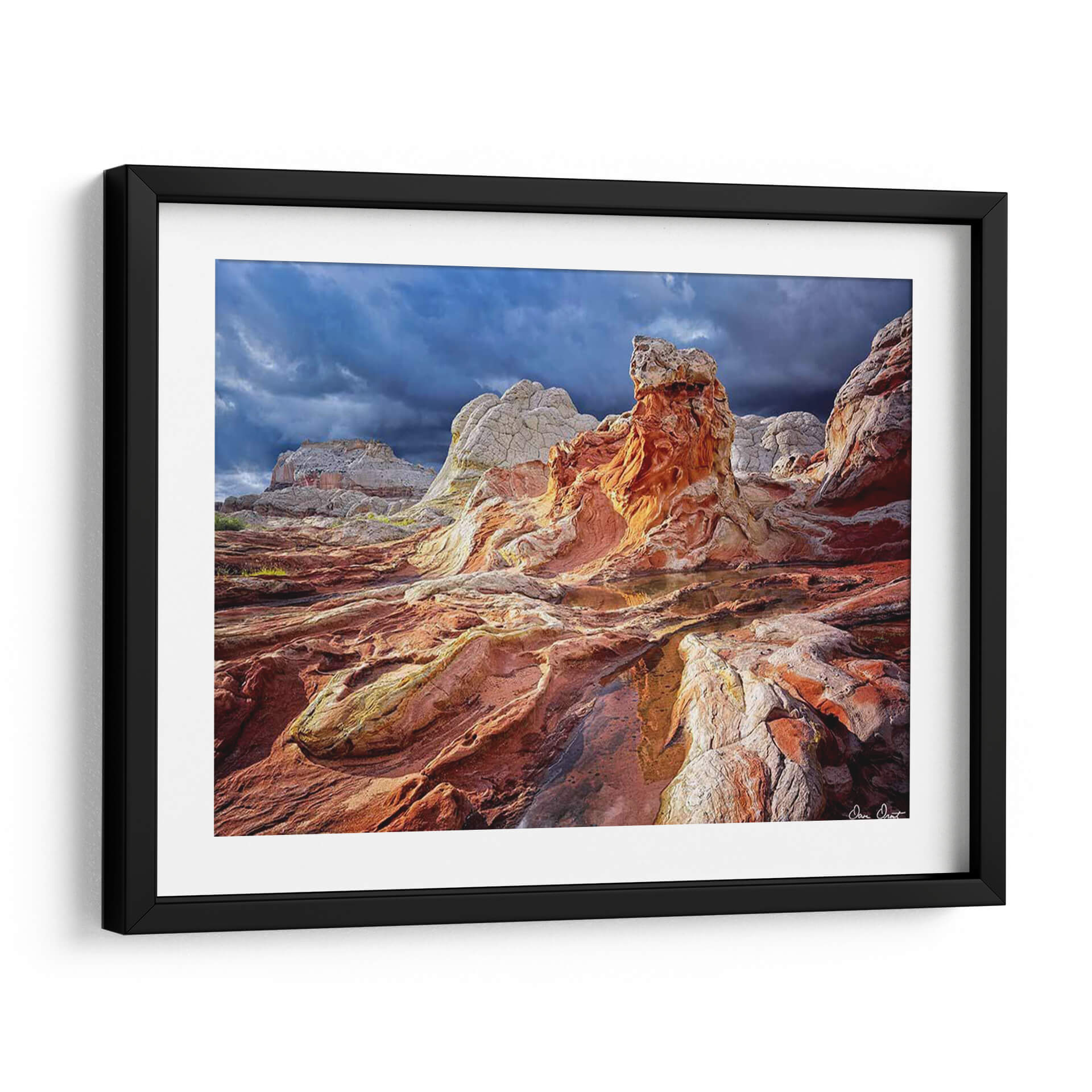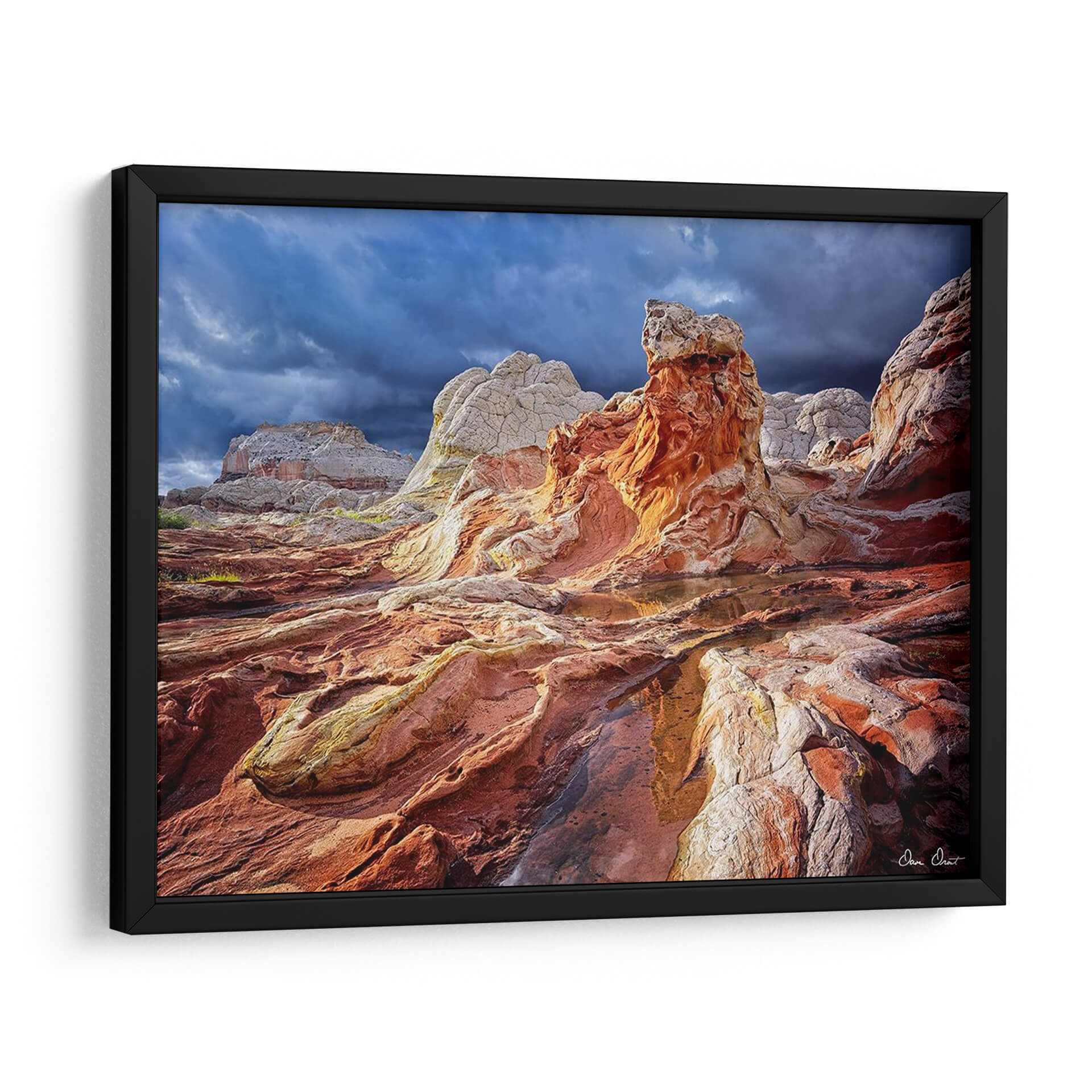 Sumérgete en la majestuosidad de 'Valley Beauty II', una obra de arte que captura la dramática belleza de formaciones rocosas únicas bajo un cielo tormentoso. Los vibrantes tonos ocres, rojizos y blancos se entrelazan con las sombras profundas del cielo azul oscuro, creando un paisaje de contrastes impactantes. La composición, con sus texturas erosionadas y la sutil presencia de agua reflejando el cielo, evoca una sensación de poder natural y serenidad ancestral. Este cuadro decorativo es ideal para añadir un toque de dramatismo y conexión con la tierra a cualquier sala de estar, estudio u oficina. La habilidad del artista David Drost para capturar la esencia de paisajes salvajes transforma este lienzo en una ventana a la maravilla geológica, invitando a la contemplación y al asombro. Perfecto para amantes de la naturaleza, la fotografía de paisajes y el arte que evoca emociones fuertes y una profunda apreciación por el mundo natural. Añade esta pieza única a tu colección y transforma tu espacio en un santuario de belleza natural.