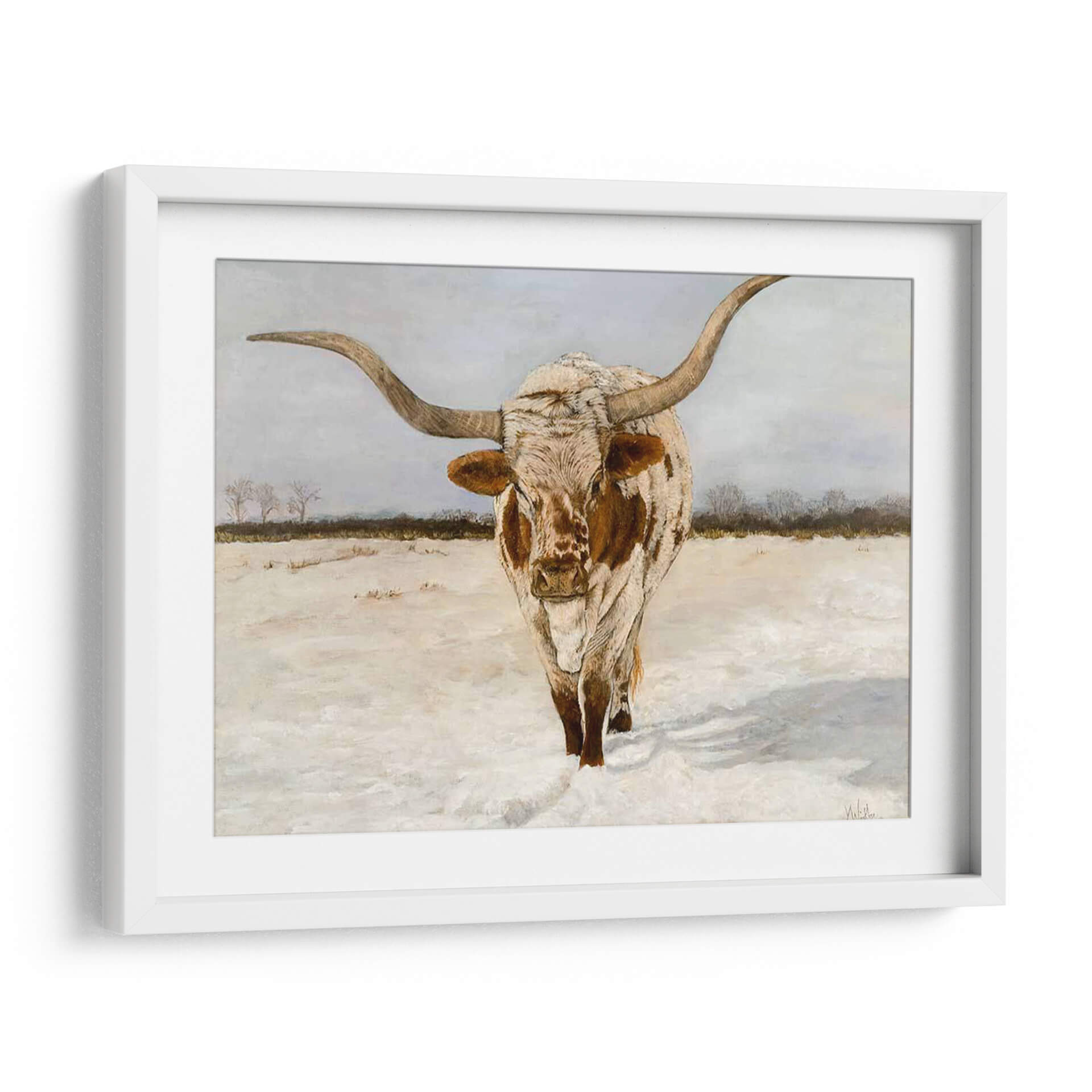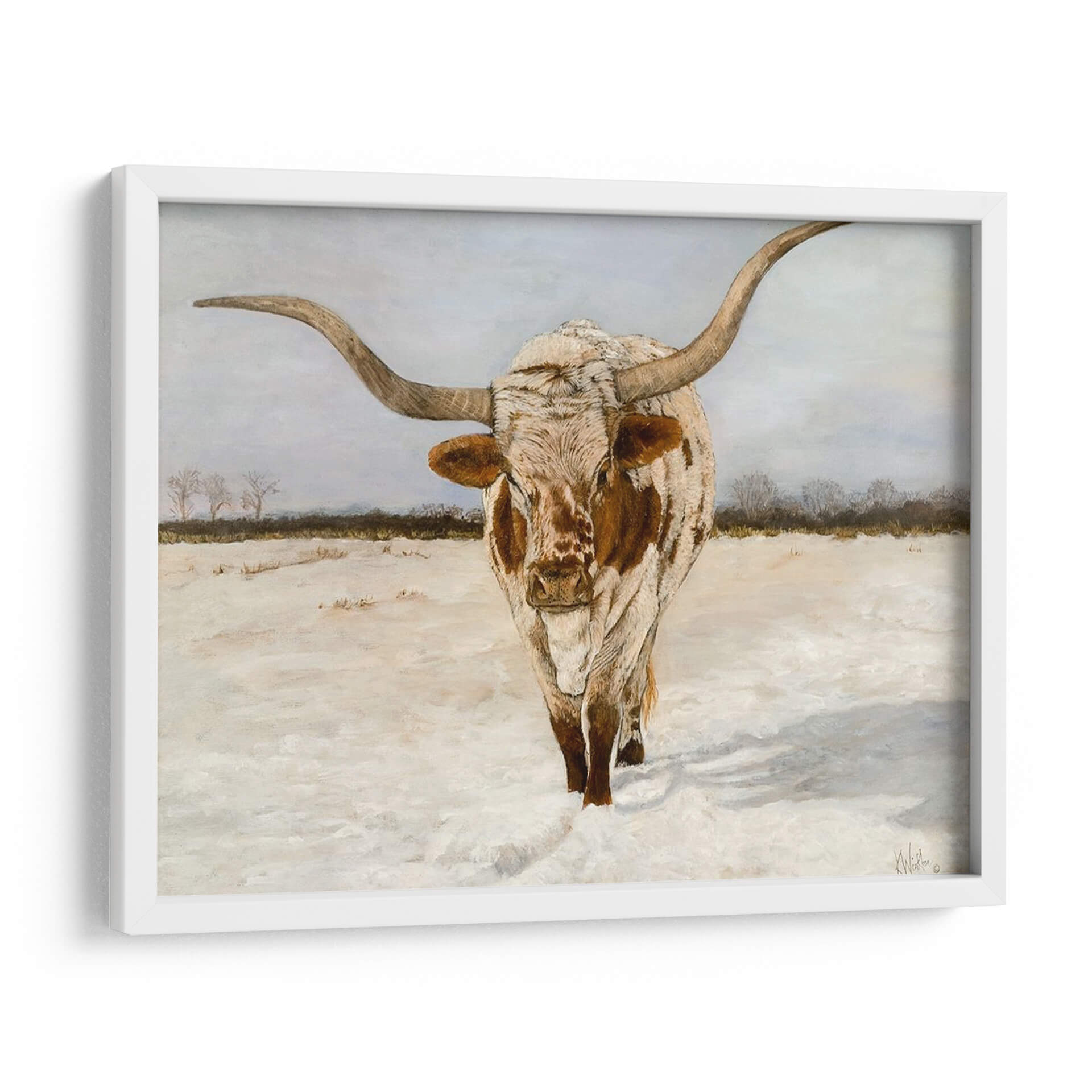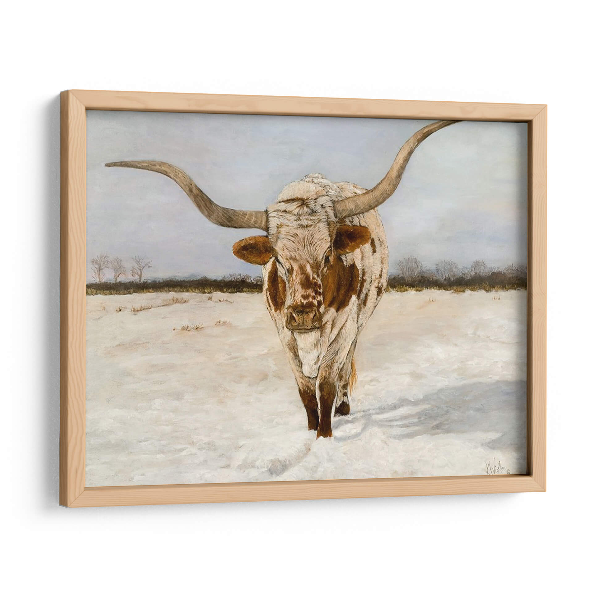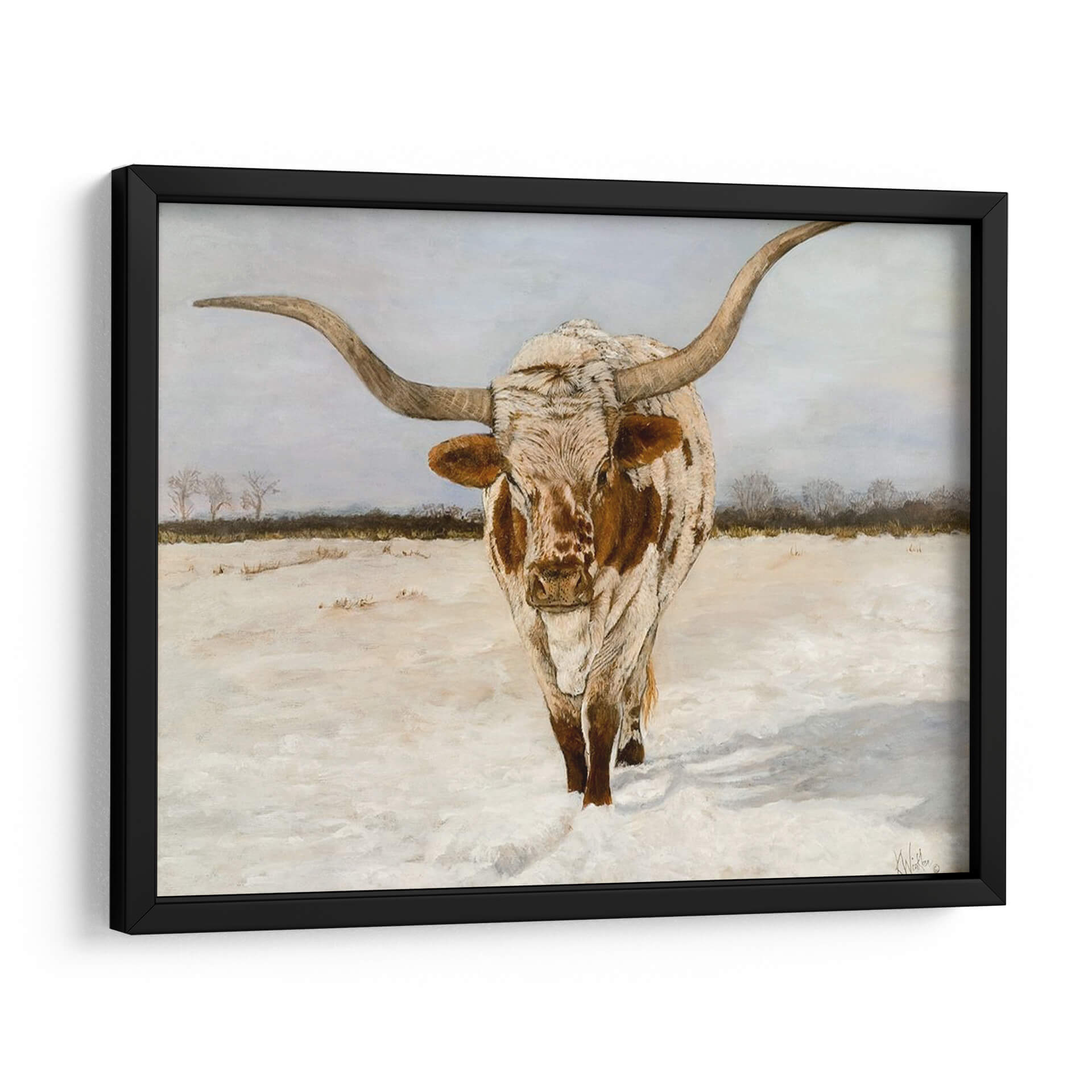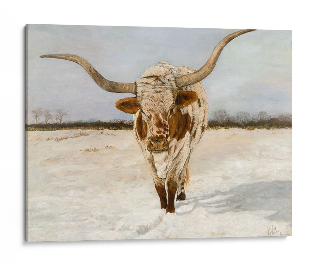 Sumérgete en la serena belleza de "Viaje Sentimental I", una cautivadora obra de arte que captura la majestuosidad de un toro de cuernos largos atravesando un paisaje invernal. La artista Kathy Winkler ha logrado un equilibrio magistral entre el realismo y la emoción, presentando al animal con un detalle impresionante en medio de la suave nieve. Los tonos neutros y fríos predominantes, con sutiles toques de marrón cálido en el pelaje del toro, crean una atmósfera de tranquilidad y contemplación. El cielo despejado y la línea de árboles dispersos en el horizonte acentúan la sensación de soledad y resistencia. Este cuadro decorativo es perfecto para quienes buscan infundir a sus espacios una sensación de paz, conexión con la naturaleza y la fuerza tranquila de la vida salvaje. Ideal para salones, estudios u oficinas que deseen un punto focal elegante y lleno de carácter. "Viaje Sentimental I" no es solo una imagen, es una invitación a la reflexión y a la apreciación de la belleza invernal.