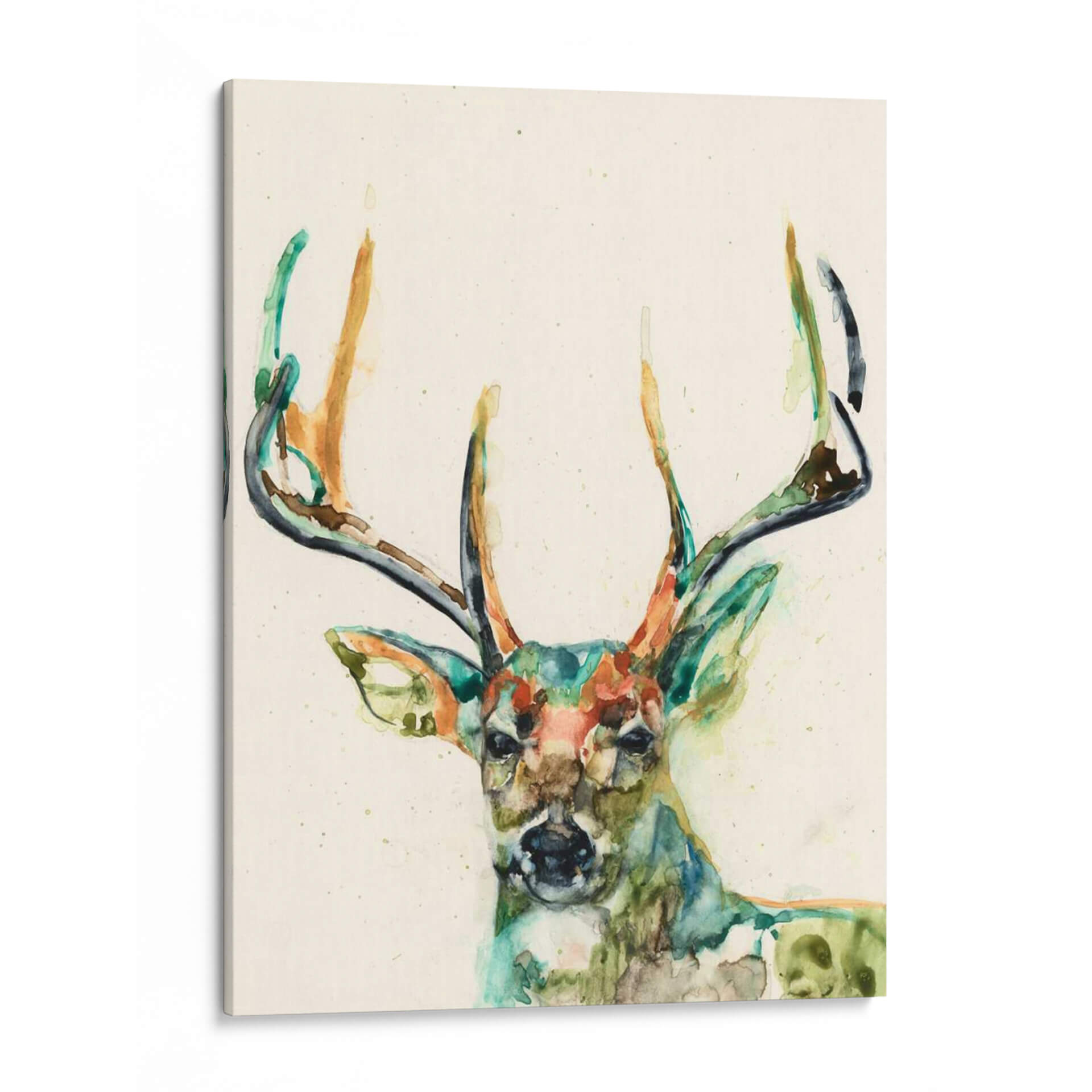 Sumérgete en la serenidad del bosque con "Woodland Welcome IV", una cautivadora obra de arte de Jennifer Goldberger. Este cuadro decorativo captura la majestuosa presencia de un ciervo con un estilo acuarela vibrante y etéreo. Los trazos fluidos y las manchas de color, que transitan entre tonos tierra, verdes profundos y toques de naranja y azul, crean una imagen que evoca la calma y la belleza de la naturaleza salvaje. La composición se centra en la cabeza del ciervo, destacando sus imponentes astas y su mirada penetrante, todo ello sobre un fondo neutro que permite que la obra respire y brille. Ideal para aquellos que buscan añadir un toque de elegancia natural y sofisticación a su hogar u oficina, este cuadro decorativo es perfecto para salas de estar, dormitorios o estudios, aportando una sensación de paz y conexión con el entorno natural. Transforma tu espacio con la delicadeza y el encanto de "Woodland Welcome IV", una pieza que celebra la fauna y la expresividad del arte contemporáneo.