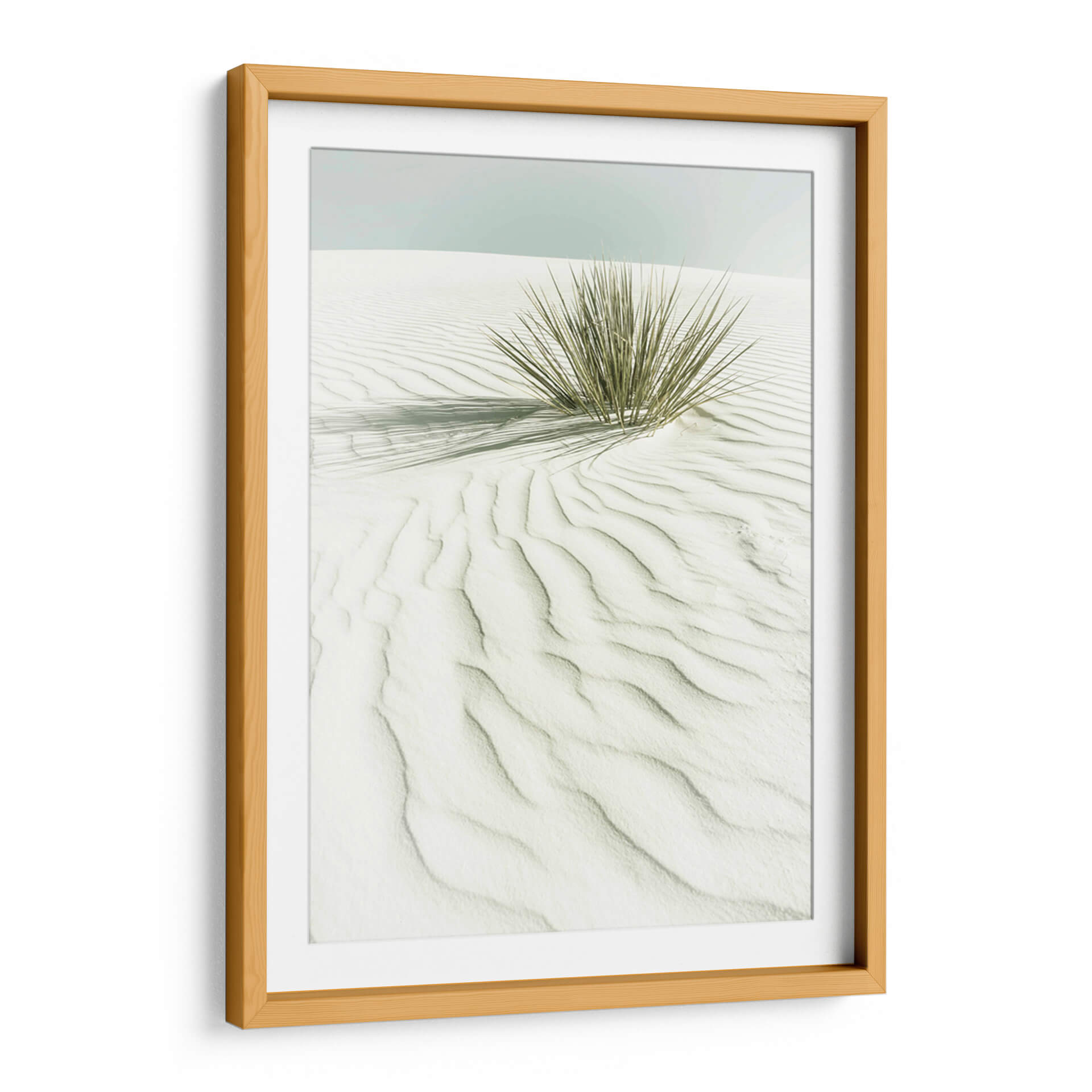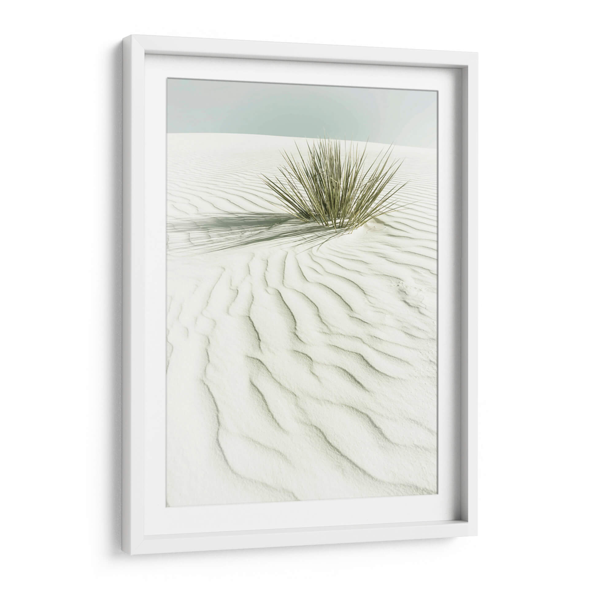 Sumérgete en la serena belleza de "ARENAS BLANCAS Escenario idílico de época", una obra maestra de Melanie Viola que captura la esencia efímera de un paisaje desértico. Este cuadro decorativo presenta dunas de arena blanca, esculpidas por el viento en suaves ondas y ondulaciones, creando un patrón visual hipnótico. La paleta de colores, dominada por tonos blancos y grises pálidos, evoca una sensación de calma, pureza y tranquilidad. En el centro, un solitario arbusto de hierba verde, con sus delicadas hebras apuntando hacia el cielo, añade un sutil contraste y un toque de vitalidad a la inmensidad árida. Las sombras alargadas que proyecta el arbusto sobre la arena acentúan las texturas y la profundidad de la escena, invitando a la contemplación. El estilo fotográfico, con un enfoque minimalista y una composición limpia, realza la atmósfera etérea y pacífica de la obra. Este cuadro decorativo es ideal para infundir serenidad y un toque de naturaleza minimalista en cualquier espacio, desde un dormitorio tranquilo hasta una sala de estar moderna o una oficina que busque un refugio visual. "ARENAS BLANCAS" es más que una imagen; es una invitación a la paz interior y a la apreciación de la belleza sutil del mundo natural, convirtiéndose en una pieza central que invita a la reflexión y al sosiego en tu hogar.