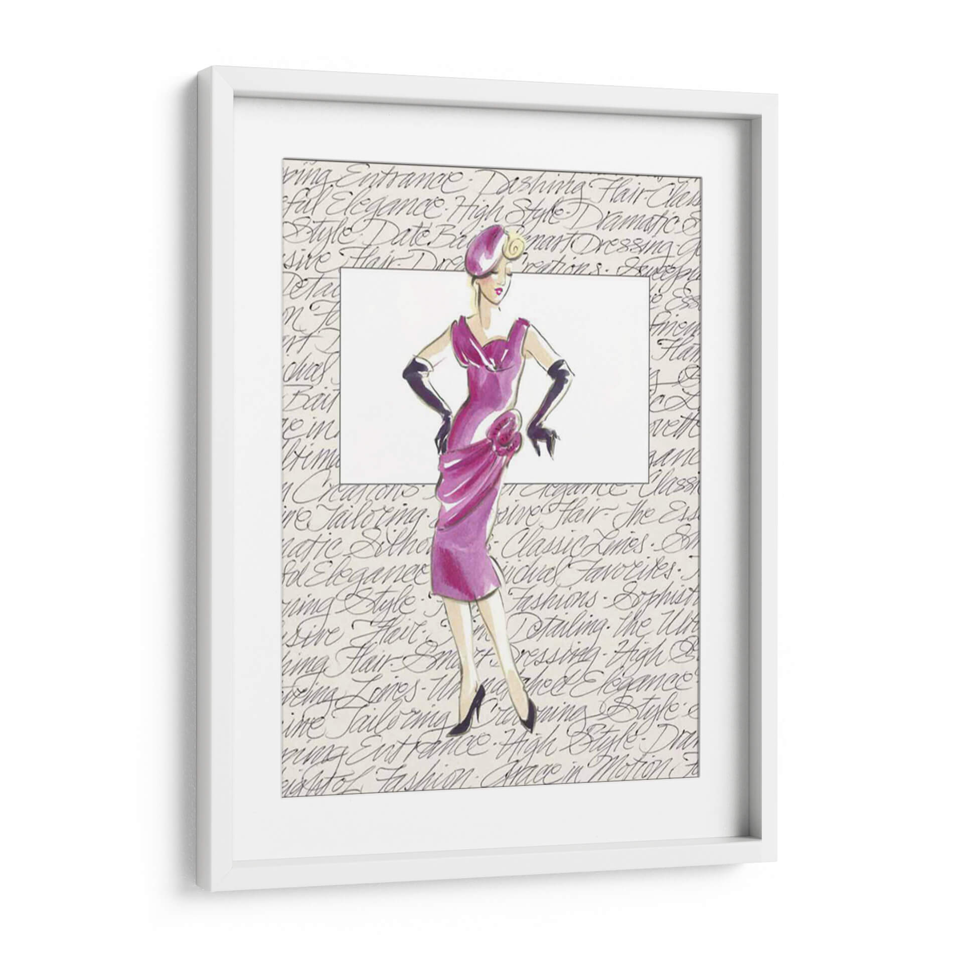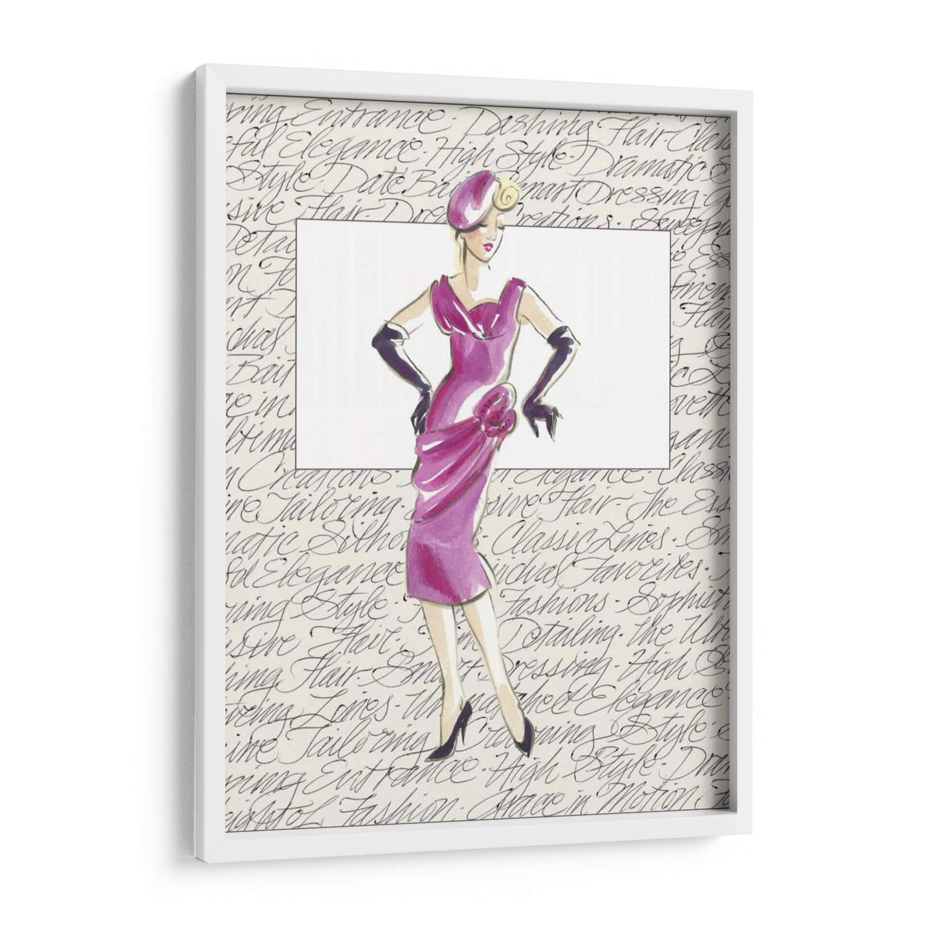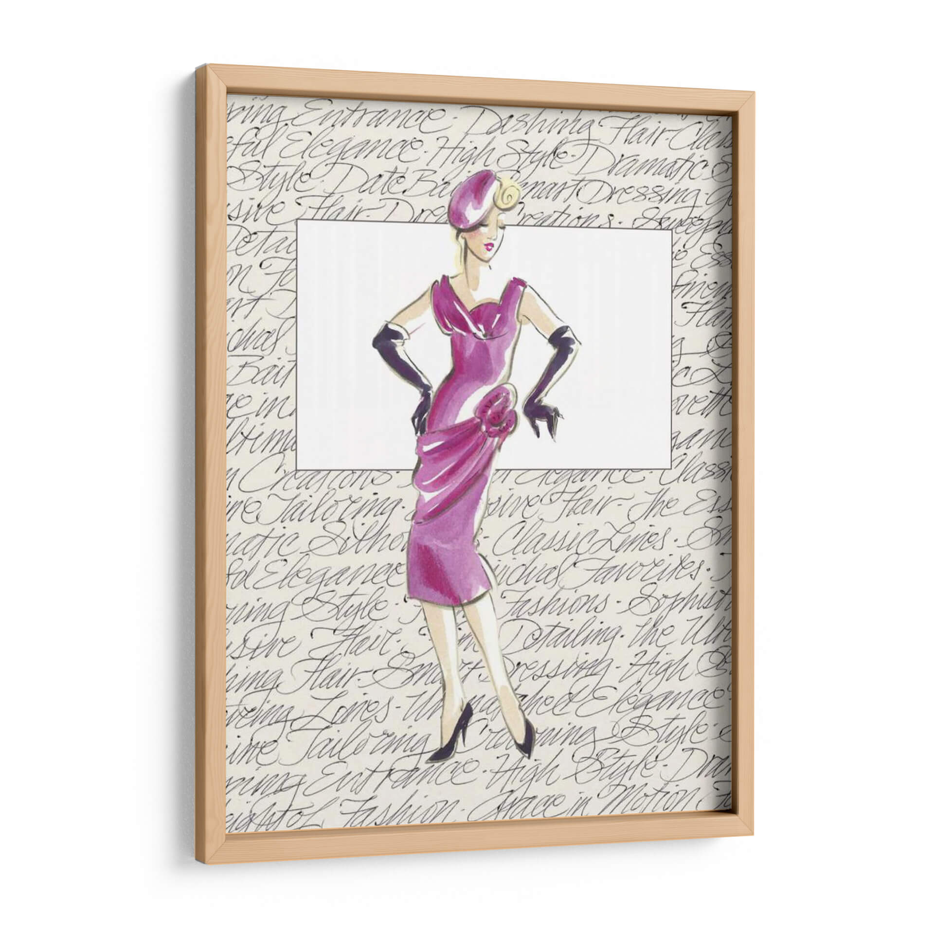Adéntrate en el mundo de la alta costura y el estilo atemporal con "50S Moda Vi" de Elissa Della-Piana. Esta cautivadora obra de arte captura la esencia de la moda de mediados de siglo con una figura femenina elegante vestida con un sofisticado traje lila. La paleta de colores vibrante pero refinada, dominada por el púrpura del vestido y los guantes contrastantes, se complementa con un fondo de caligrafía estilizada en tonos neutros, creando una atmósfera de glamour y nostalgia. La composición, centrada en la figura con una pose segura y las manos en las caderas, transmite confianza y distinción. Ideal para quienes buscan añadir un toque de elegancia vintage a su hogar u oficina, este cuadro decorativo es una pieza que evoca sofisticación y un espíritu chic. Su diseño lo hace perfecto para salas de estar, vestidores o espacios donde se desee un acento de estilo retro y chic. "50S Moda Vi" no es solo una imagen, es una declaración de moda y arte que aporta un aire de distinción a cualquier ambiente, invitando a la admiración y la conversación, y se convertirá en el punto focal de tu decoración.
