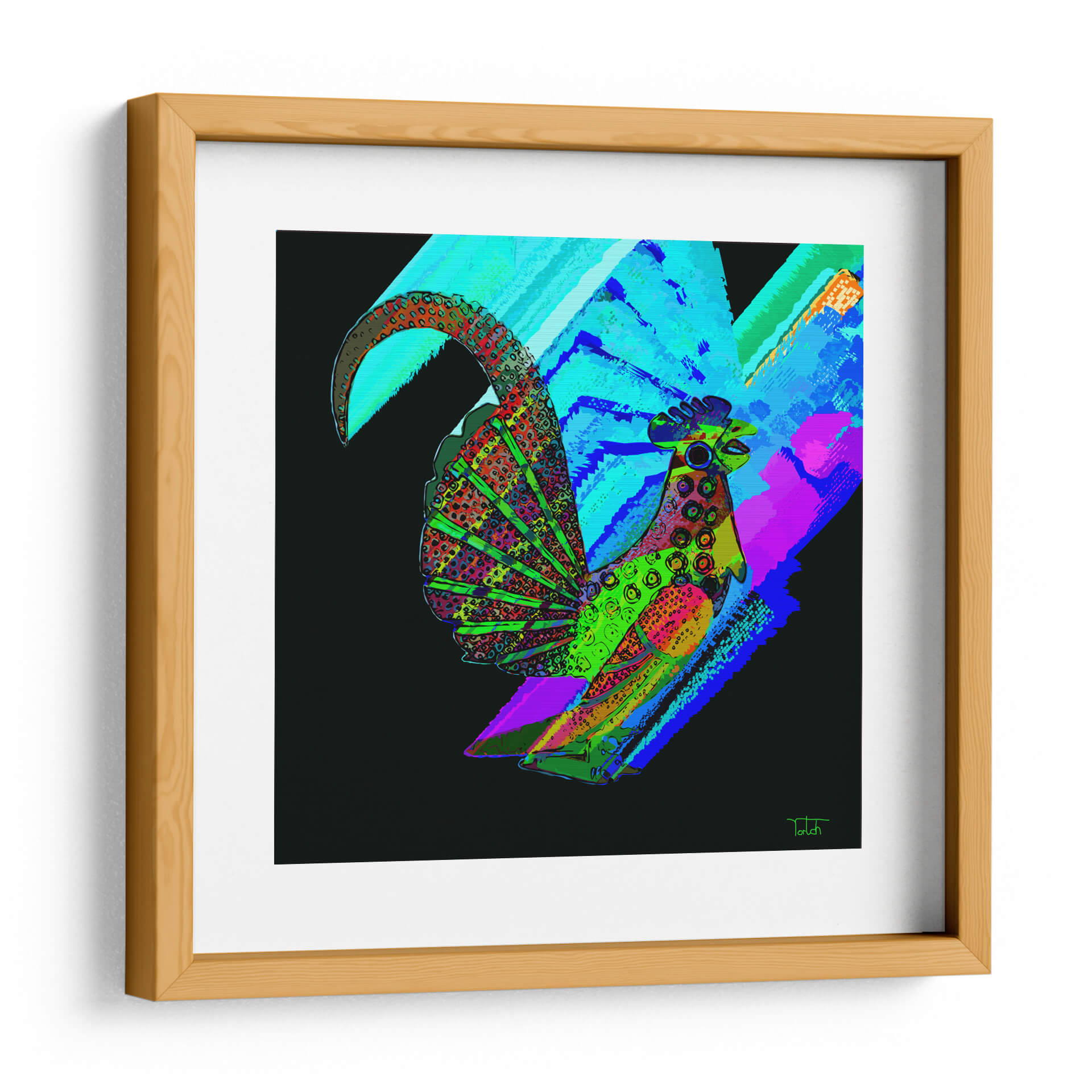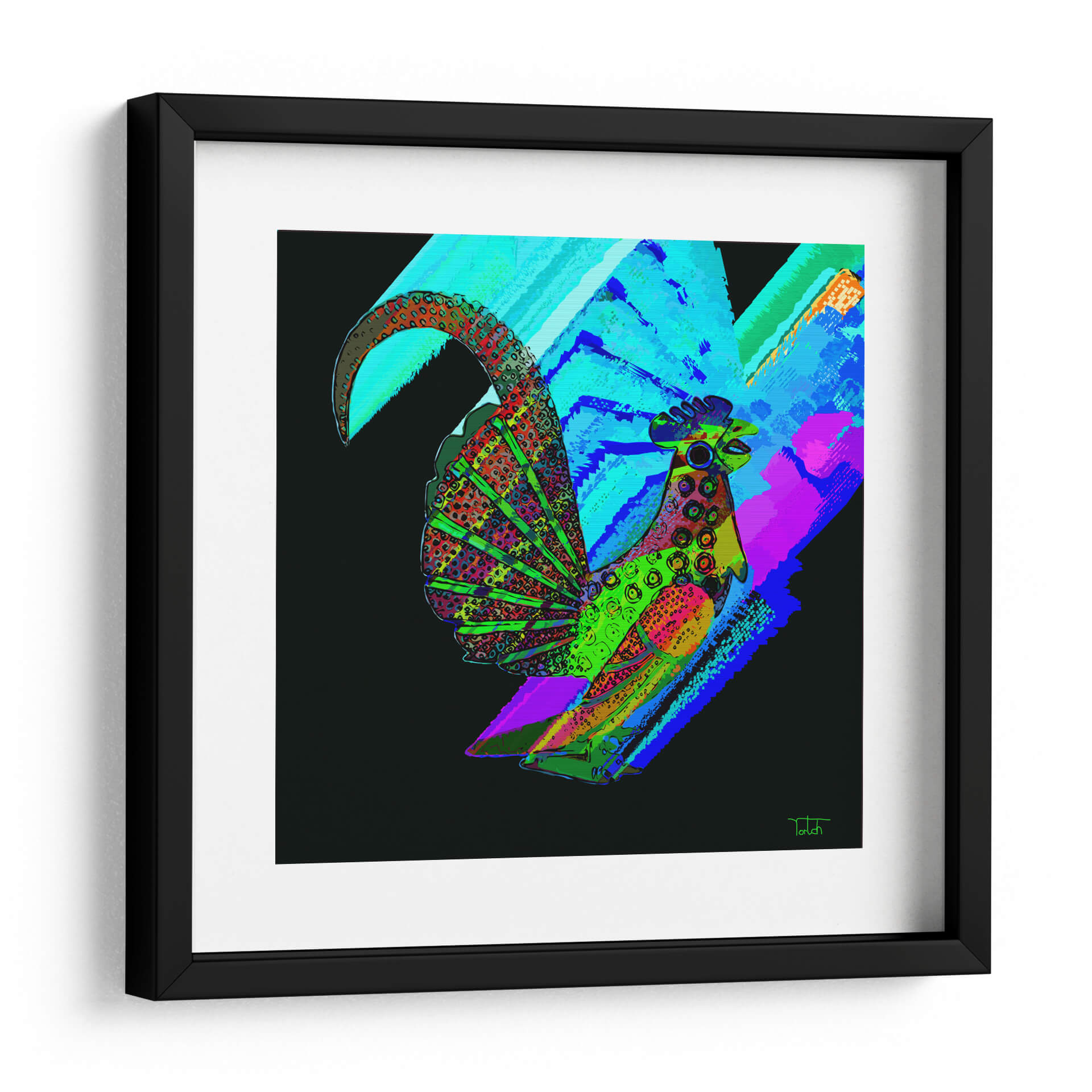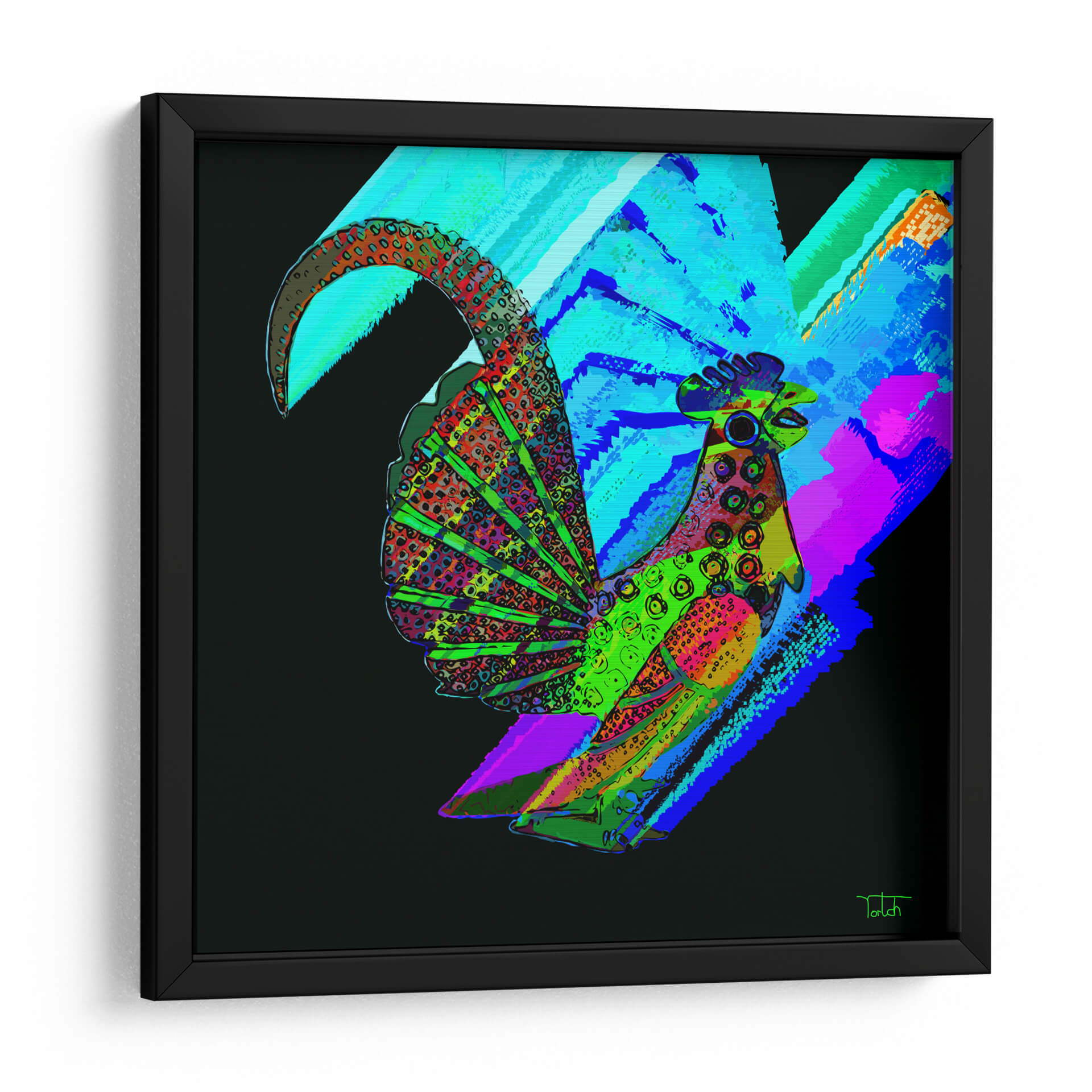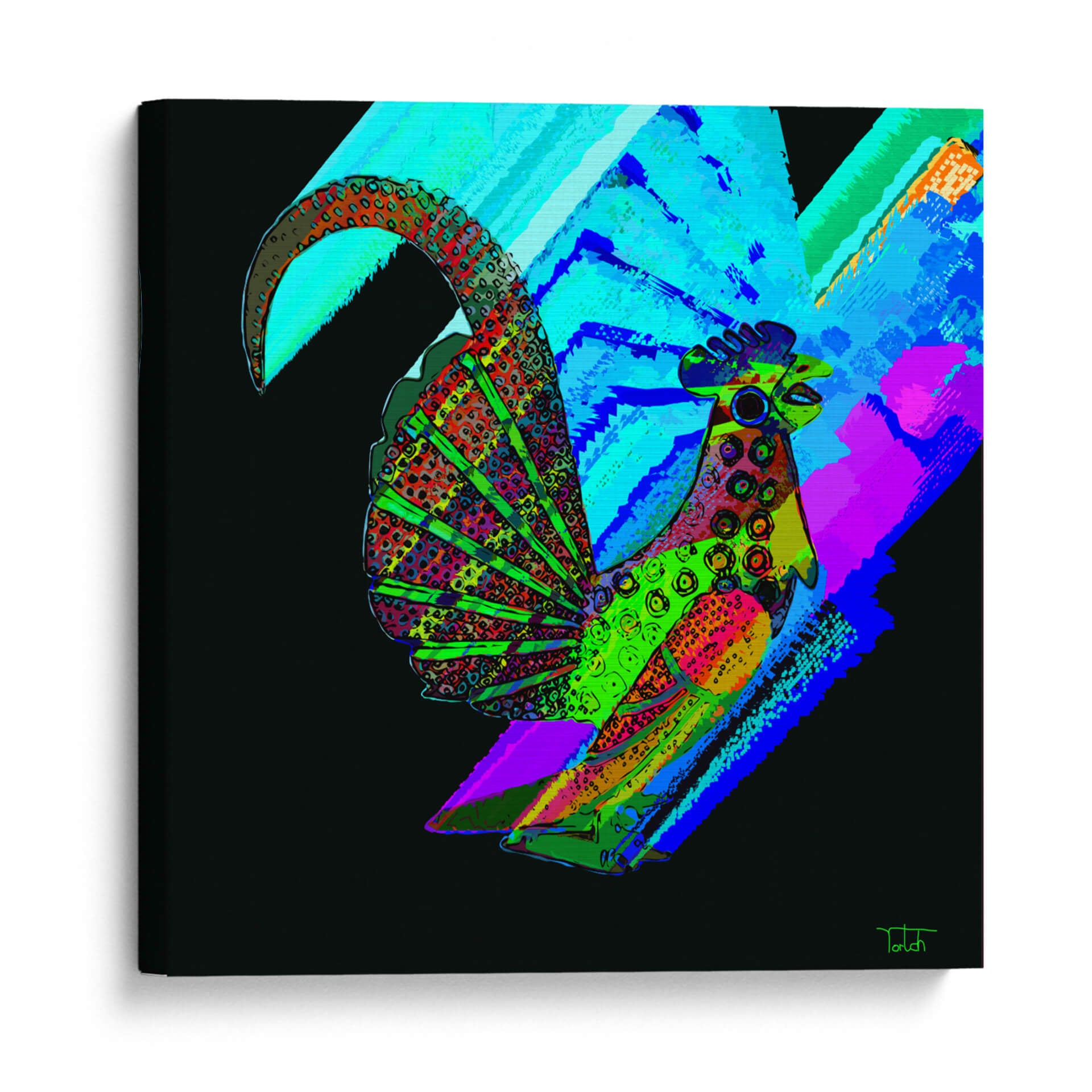Inyecta vitalidad y color a tu espacio con "Alebrijes 6 - El Gallo", una obra de arte vibrante del artista Yortch. Este cuadro decorativo es una explosión de energía, presentando una interpretación audaz y contemporánea de un gallo. La figura central se compone de intrincados patrones y texturas, adornada con una paleta de colores eléctricos que van desde verdes brillantes y azules intensos hasta toques de rojo y naranja. El fondo negro profundo crea un contraste dramático, haciendo que los colores de la obra resalten aún más. Las pinceladas abstractas y dinámicas en tonos turquesa, azul eléctrico y púrpura añaden una capa de movimiento y modernidad, sugiriendo un estilo pop art o arte digital con influencias folclóricas. "Alebrijes 6 - El Gallo" es perfecto para quienes buscan una pieza llamativa que despierte conversaciones y añada un punto focal audaz a salas de estar modernas, comedores o estudios creativos. Su diseño único y colorido es ideal para infundir alegría y carácter en cualquier ambiente, transformando paredes neutras en lienzos de expresión artística.