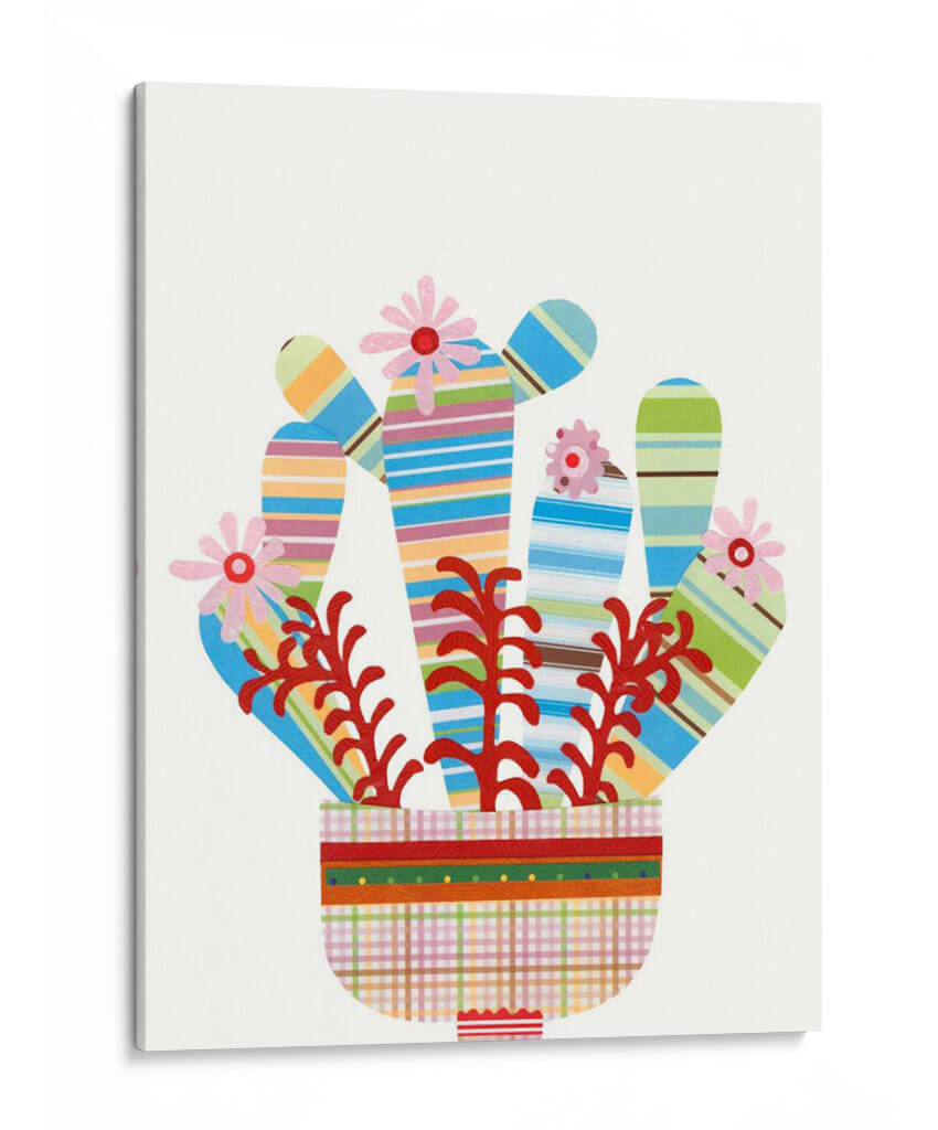 Embellece tu hogar con el vibrante cuadro decorativo "Alegre Suculenta Vi" de Regina Moore. Esta obra captura la esencia juguetona y colorida de las suculentas en un diseño contemporáneo y audaz. Las formas estilizadas de los cactus, adornadas con vibrantes rayas horizontales en una paleta que incluye azules, verdes, naranjas y morados, contrastan maravillosamente con las delicadas flores rosadas que coronan cada tallo. El macetero, representado con un alegre patrón de cuadros y detalles en rojo y naranja, aporta una textura visual adicional y un toque acogedor. La composición general es simétrica y equilibrada, invitando a la calma y la alegría. Ideal para espacios que buscan un toque de color y personalidad, como salas de estar modernas, recibidores o incluso una oficina en casa que necesite un impulso de energía positiva. Este cuadro decorativo es una pieza que sin duda atraerá miradas y generará conversación, añadiendo un elemento único y lleno de vida a cualquier ambiente.