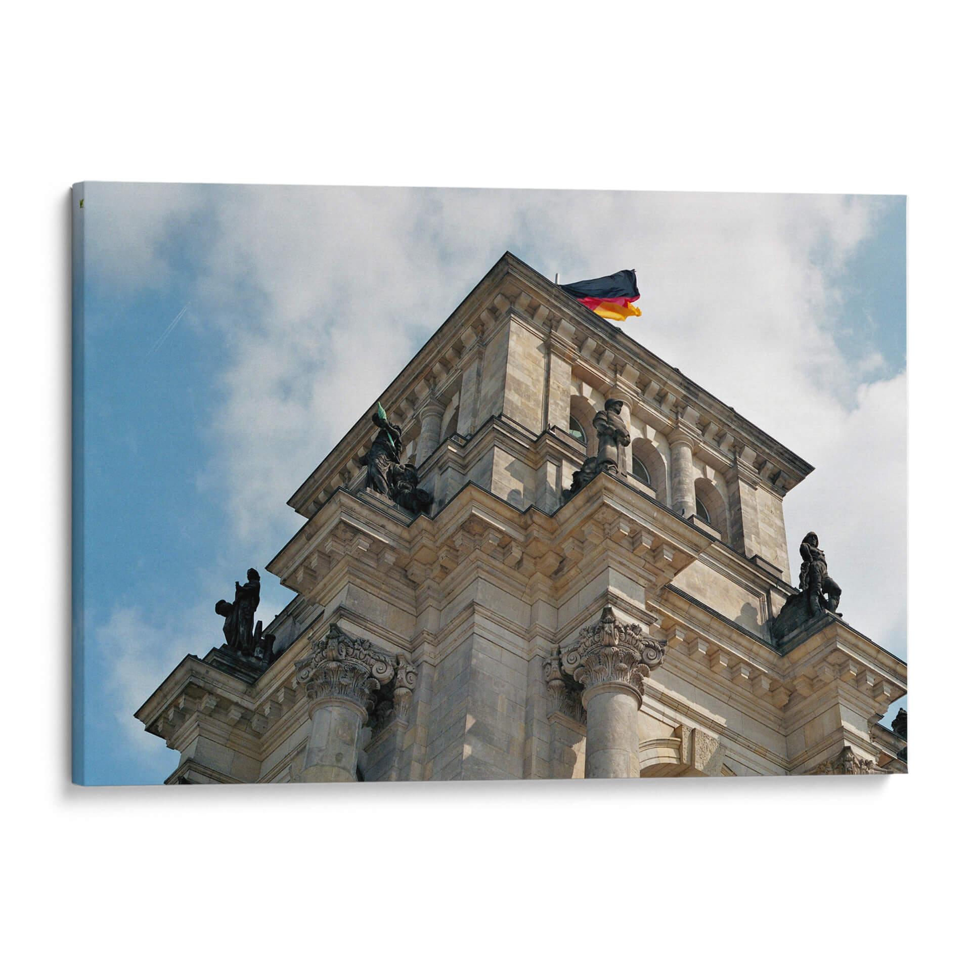 Captura la esencia de la arquitectura icónica con este impresionante cuadro decorativo de Alemania, una obra que evoca historia y monumentalidad. La imagen se centra en la majestuosa cúpula de un edificio emblemático, coronada por la bandera alemana ondeando al viento. Los tonos piedra del edificio contrastan con el cielo azul claro y las nubes algodonosas, creando una atmósfera serena pero imponente. Las detalladas columnas, las esculturas que adornan la estructura y la perspectiva utilizada para fotografiar la obra añaden profundidad y un sentido de grandeza. Este cuadro decorativo es perfecto para quienes aprecian la arquitectura clásica y los símbolos nacionales, o para quienes desean infundir en su hogar u oficina un aire de sofisticación y solidez. Imagina este lienzo como un punto focal en tu sala de estar, un recordatorio de la belleza arquitectónica y el patrimonio cultural, o como una pieza inspiradora en un despacho profesional. Su diseño versátil se adapta a una variedad de estilos de decoración, desde el clásico hasta el contemporáneo, aportando carácter y elegancia a cualquier espacio. Ideal para amantes de la historia, la arquitectura y los viajes, esta obra es una ventana a un símbolo de Alemania, capturada con maestría para ser admirada en tu pared.