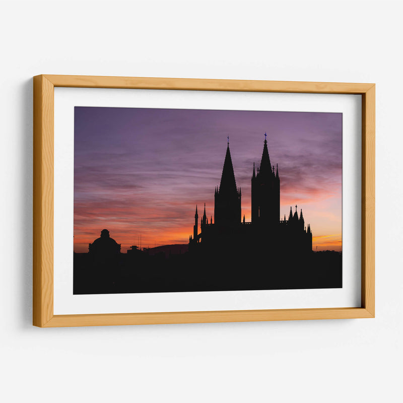 Captura la majestuosidad de Guadalajara con "Amanecer en el Templo el Expiatorio Guadalajara I", una obra de Jaime López Portillo que inmortaliza un momento de serena belleza. Este cuadro decorativo presenta la icónica silueta del Templo Expiatorio bañada por los cálidos tonos de un amanecer espectacular. El cielo, una pincelada de púrpuras profundos y naranjas vibrantes que se funden en un degradado emotivo, crea un contraste dramático con las oscuras y detalladas agujas del templo y los edificios circundantes. La composición, que juega con la escala y la perspectiva, otorga una sensación de grandeza y atemporalidad a la escena. La atmósfera que emana es de paz, espiritualidad y asombro ante la magnificencia arquitectónica y natural. Ideal para añadir un toque de elegancia y profundidad a tu sala de estar, estudio u oficina, este cuadro de arquitectura transformará cualquier espacio en un santuario visual. Las tonalidades cálidas y frías crean un equilibrio visual que se adapta a diversos estilos de decoración, desde lo clásico hasta lo contemporáneo. Permite que la magia de este amanecer mexicano llene tus paredes de inspiración y sofisticación.