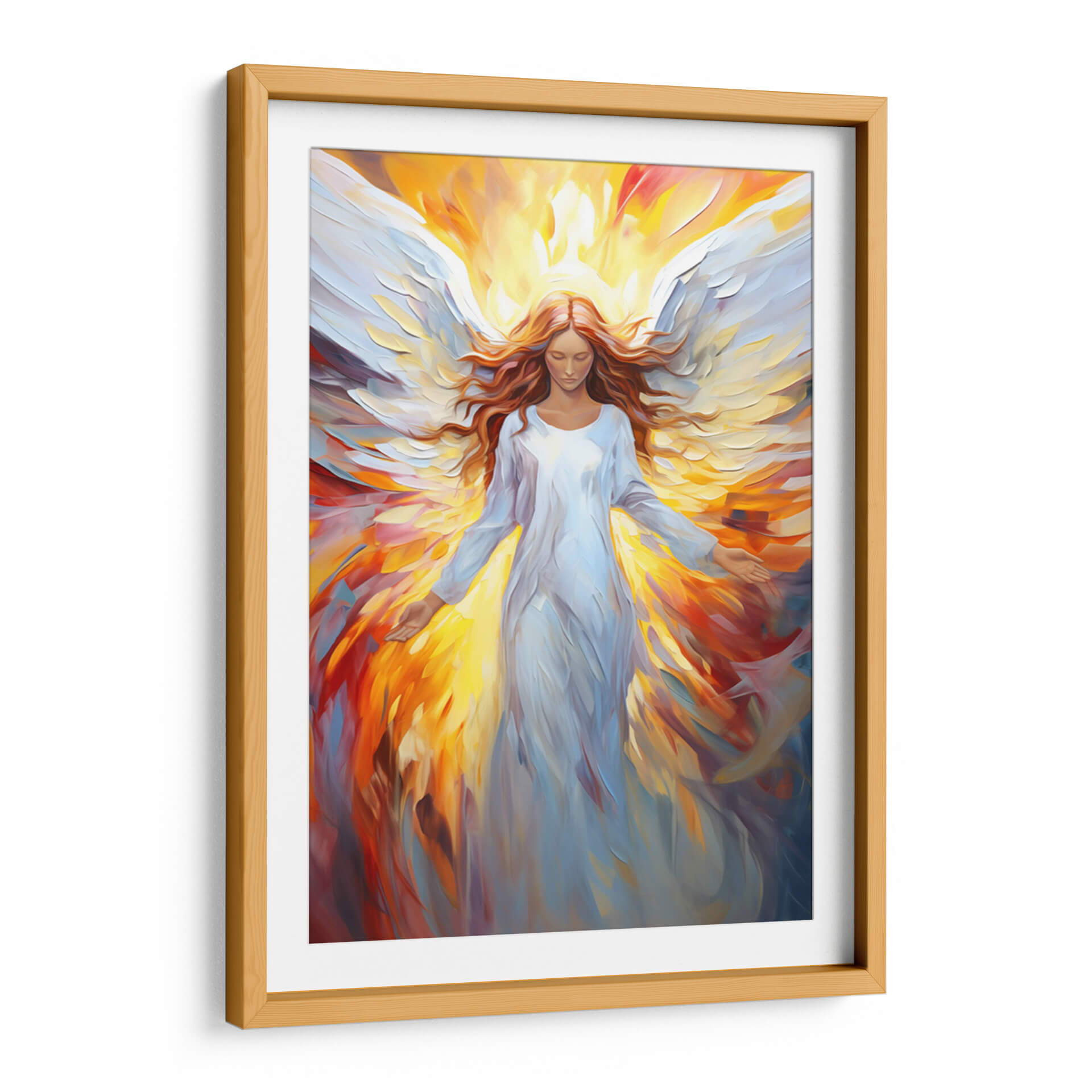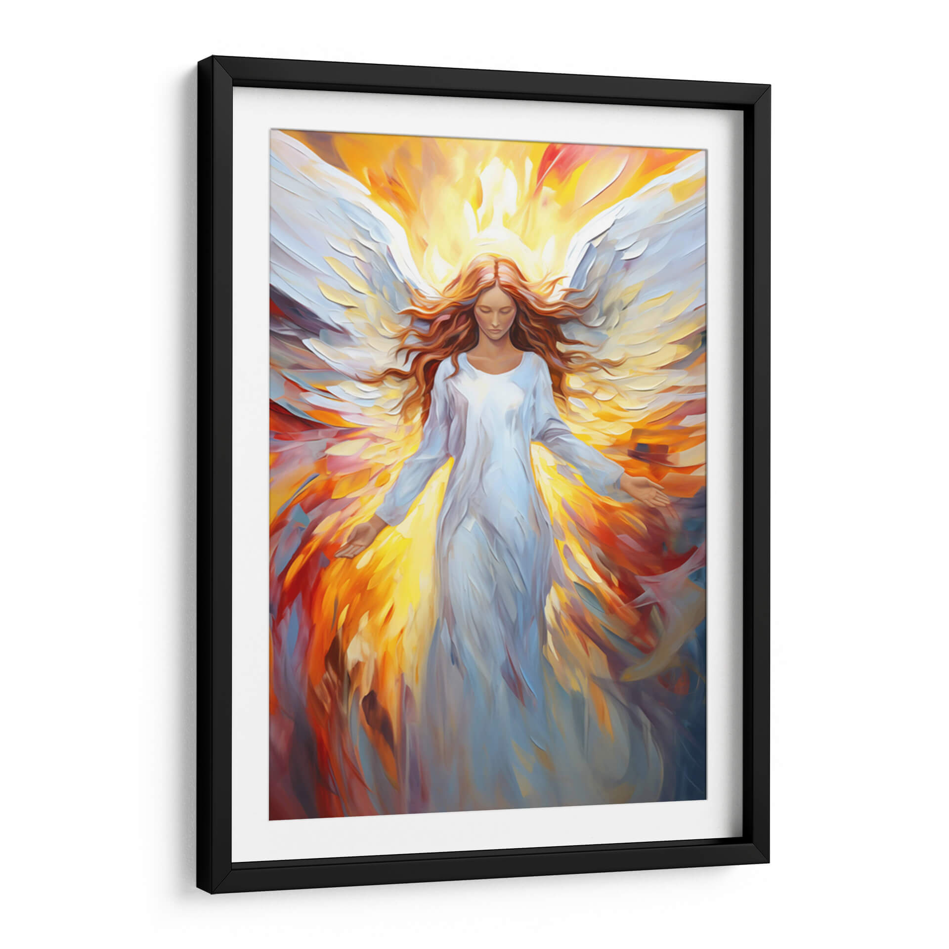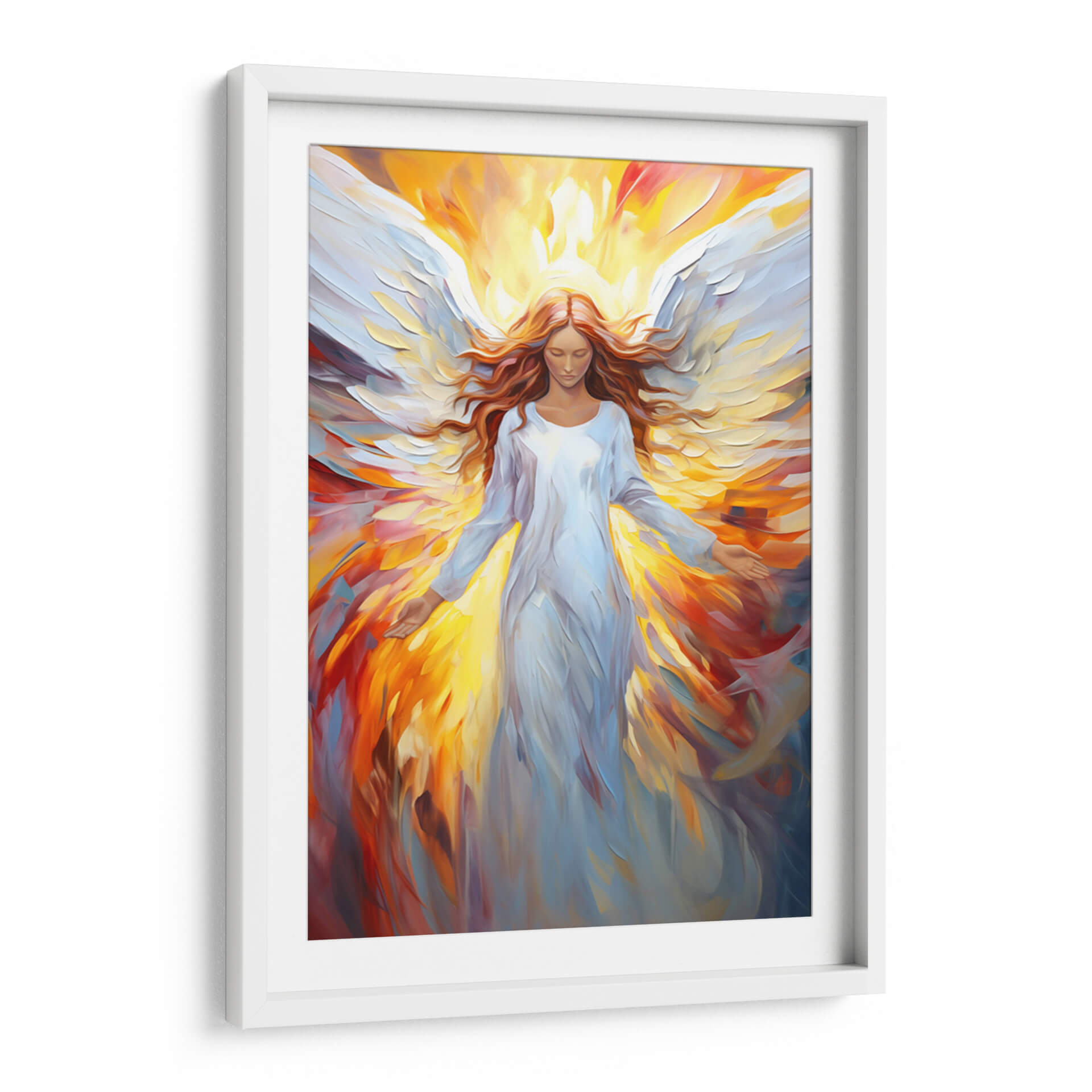 Sumérgete en la serenidad y el poder celestial con "Ángel", una obra de arte cautivadora de Dav Madrid. Este cuadro decorativo, con su representación etérea de una figura alada, irradia una luz cálida y envolvente que transforma cualquier espacio en un santuario de paz y espiritualidad. La paleta de colores, dominada por vibrantes tonos dorados y naranjas que emanan de un halo de luz, contrasta maravillosamente con el blanco puro y las suaves texturas del vestido y las alas del ángel. Las pinceladas expresivas y el estilo contemporáneo, que roza lo abstracto en el fondo, aportan profundidad y dinamismo a la pieza, invitando a la contemplación. Es una elección perfecta para quienes buscan añadir un toque de divinidad y calma a su hogar u oficina, evocando una sensación de protección y esperanza. Este cuadro decorativo es ideal para salones, dormitorios o espacios de meditación, funcionando como un punto focal que inspira tranquilidad y eleva el espíritu. Descubre cómo "Ángel" puede ser el elemento que conecte tu espacio con una energía superior y un diseño moderno.