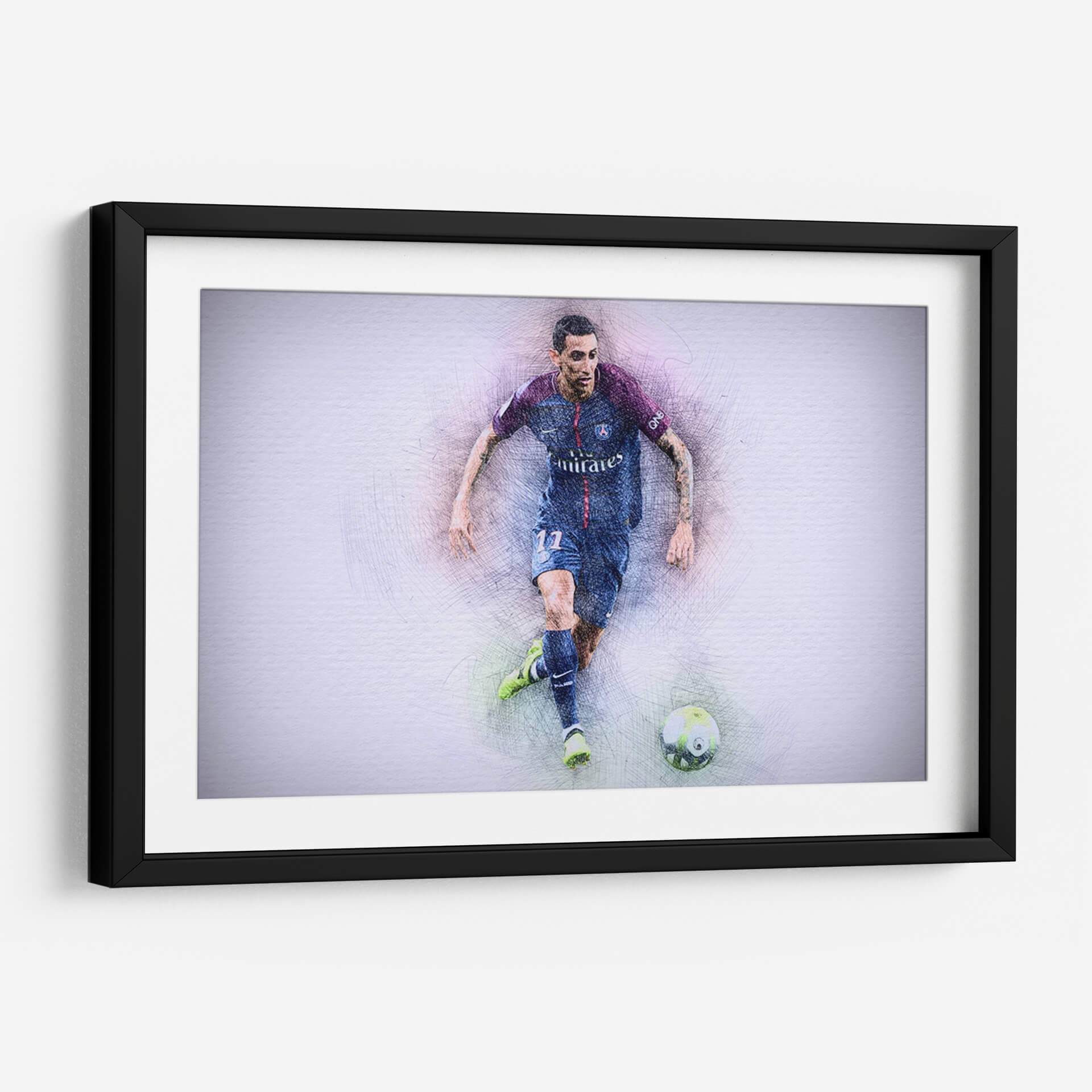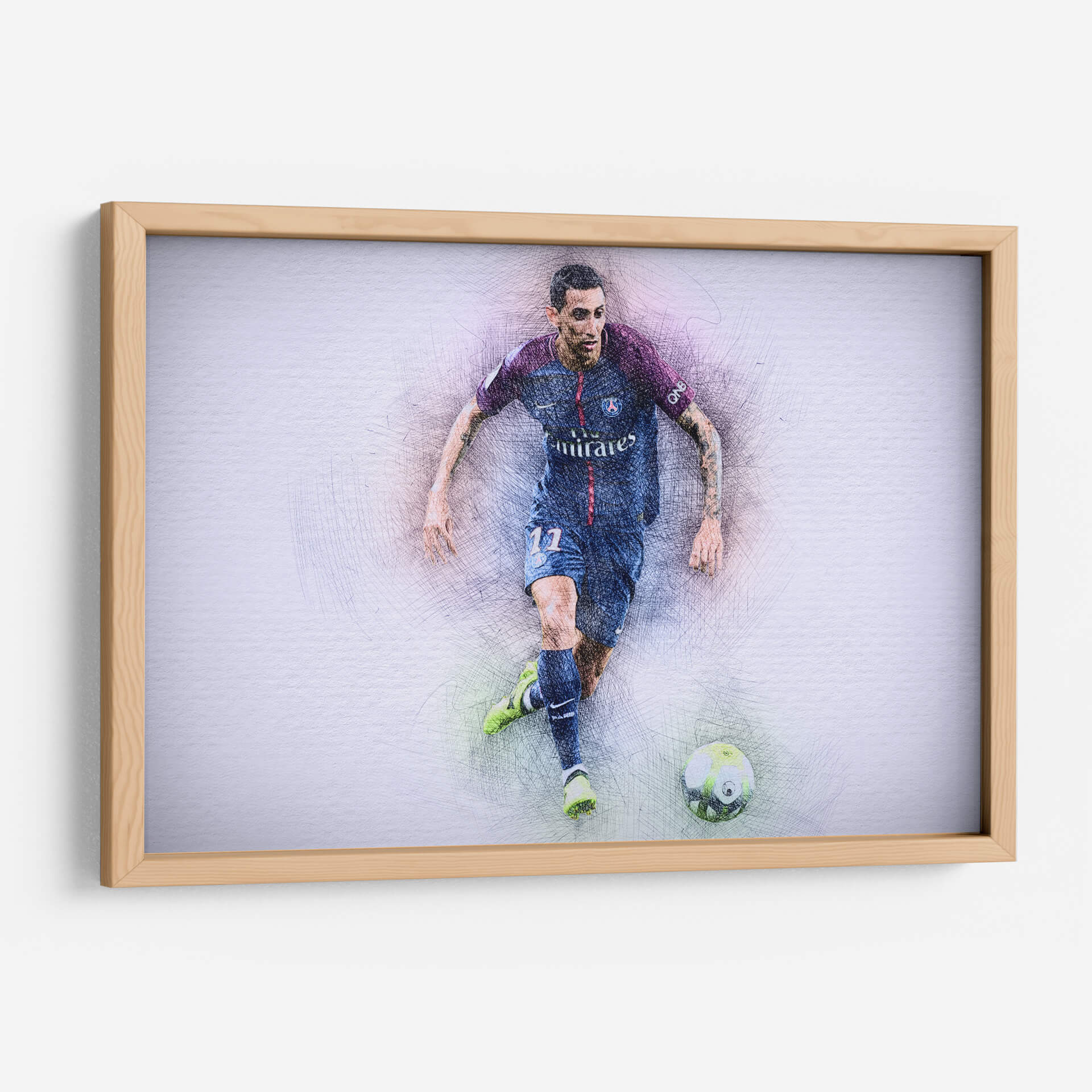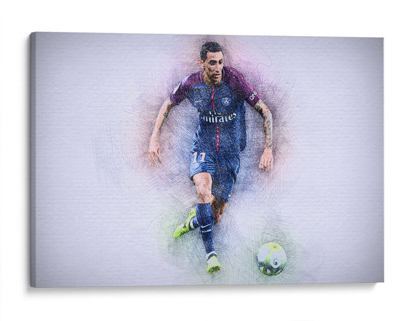 Captura la dinámica y la pasión del fútbol con este impactante cuadro decorativo que inmortaliza a un ícono del deporte. La obra presenta una representación estilizada y enérgica de un futbolista en plena acción, con el balón a sus pies. La técnica de boceto digital aporta una textura única, con trazos que sugieren movimiento y emoción, mientras que la paleta de colores, dominada por tonos oscuros del uniforme del jugador contrastando con el verde vibrante del césped y toques de luz difuminada, crea una atmósfera intensa y cautivadora. Es una pieza perfecta para añadir un toque deportivo y contemporáneo a cualquier espacio, ideal para salas de estar, oficinas o áreas de entretenimiento donde la energía y el dinamismo sean protagonistas. Este cuadro decorativo no solo es una obra de arte, sino una celebración del espíritu competitivo y la destreza atlética, convirtiéndose en un punto focal que inspirará a aficionados y amantes del buen gusto. Su estilo único lo hace un elemento decorativo versátil, capaz de integrarse en ambientes modernos o añadir un toque de carácter a decoraciones más tradicionales.