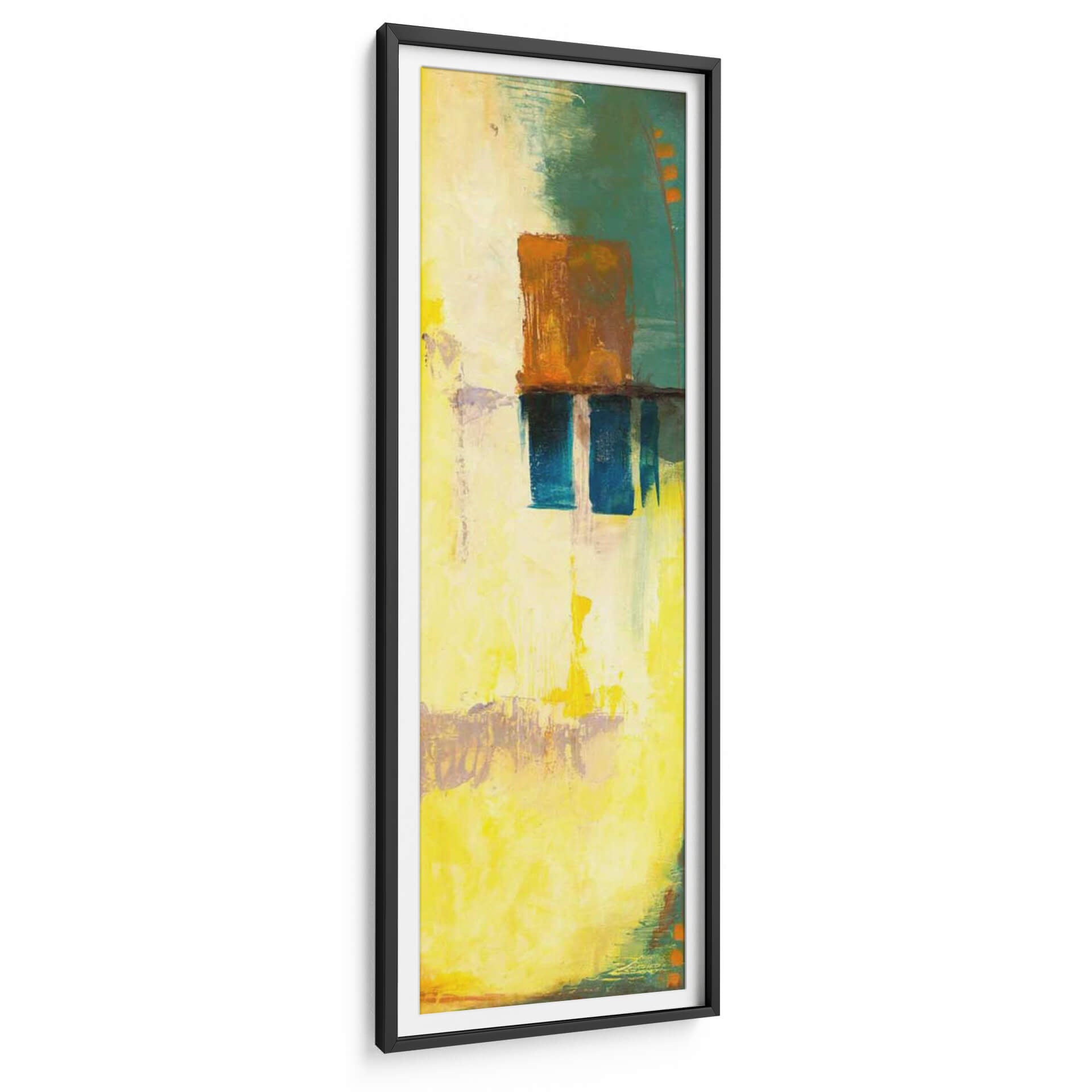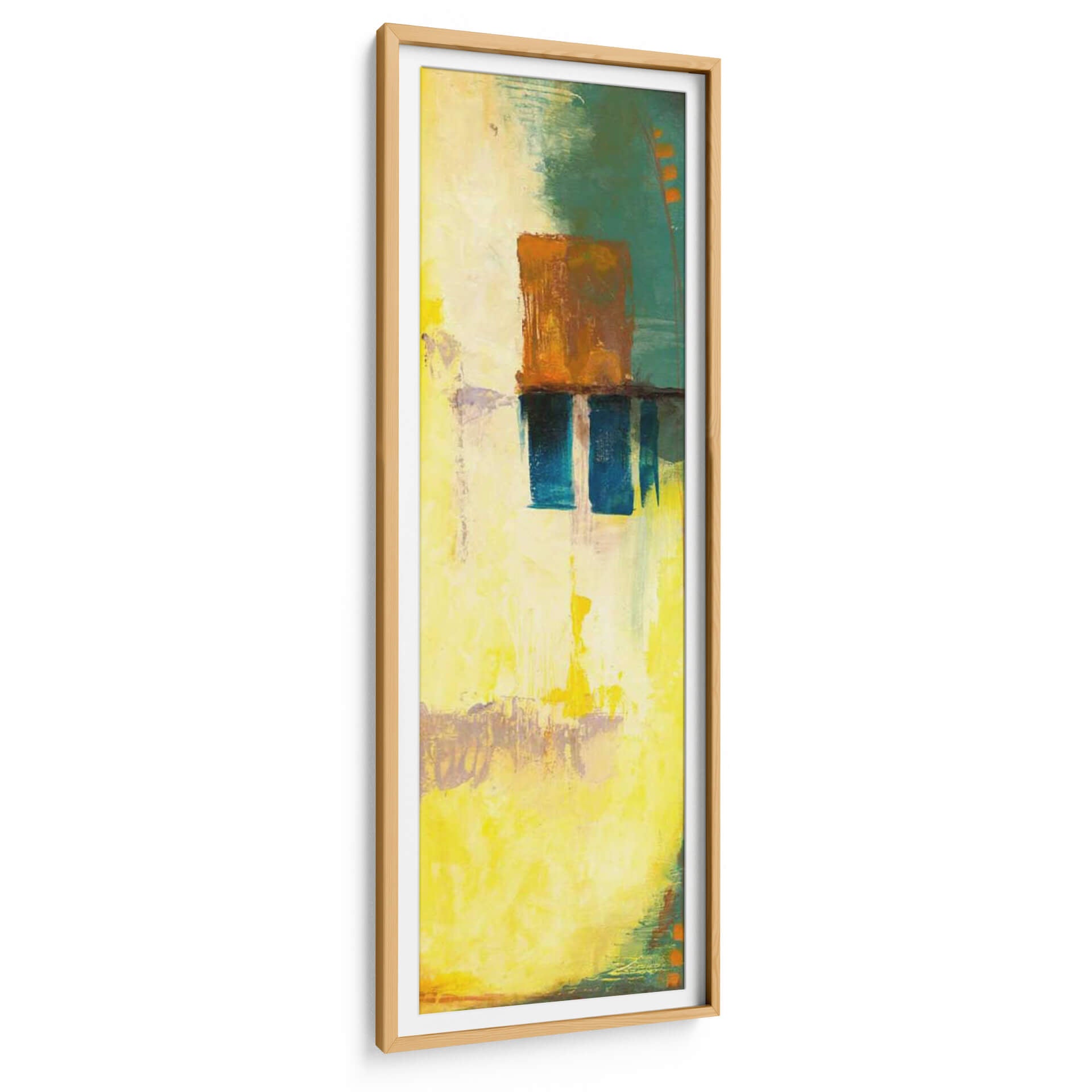 Sumérgete en la vibrante energía de "Aquamarine Aura V", una obra maestra abstracta de Jennifer Goldberger que captura la esencia de la luz y el color. Este cuadro decorativo se despliega en un lienzo vertical, dominado por una explosión de tonos amarillos y ocres que irradian calidez y optimismo. Contrastando audazmente, bloques de azul profundo y un verde esmeralda intenso aportan profundidad y sofisticación, creando un diálogo visual fascinante. Las texturas sutiles y las pinceladas audaces invitan a la contemplación, sugiriendo un aura etérea que puede transformar cualquier espacio. Ideal para aquellos que buscan añadir un toque de arte contemporáneo y vitalidad a su hogar u oficina, este lienzo abstracto se convierte en un punto focal cautivador. La composición vertical, con sus formas geométricas sutiles y su juego de luces, evoca una sensación de movimiento y energía contenida, perfecta para salas de estar modernas, entradas acogedoras o estudios inspiradores. "Aquamarine Aura V" es más que una pieza decorativa; es una invitación a sentir la luz y la profundidad a través del arte, añadiendo un carácter único y personal a tu decoración.