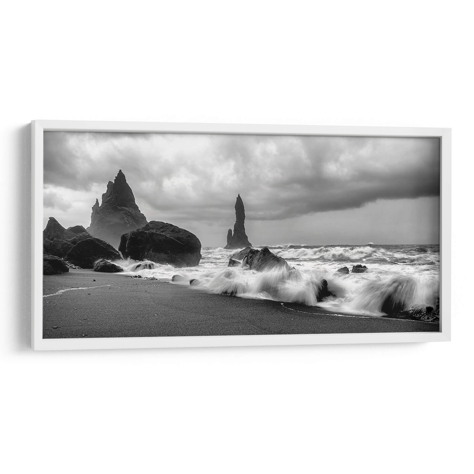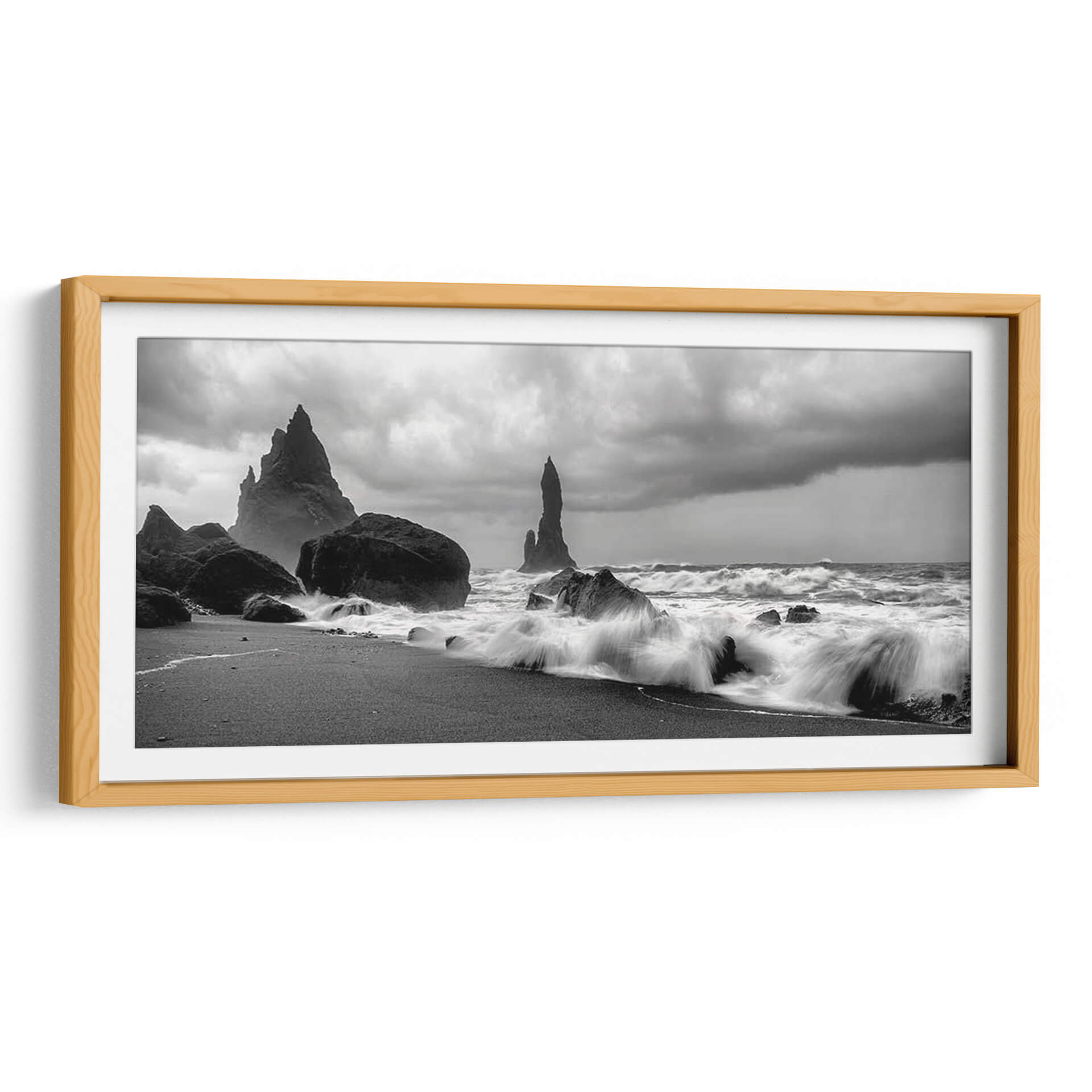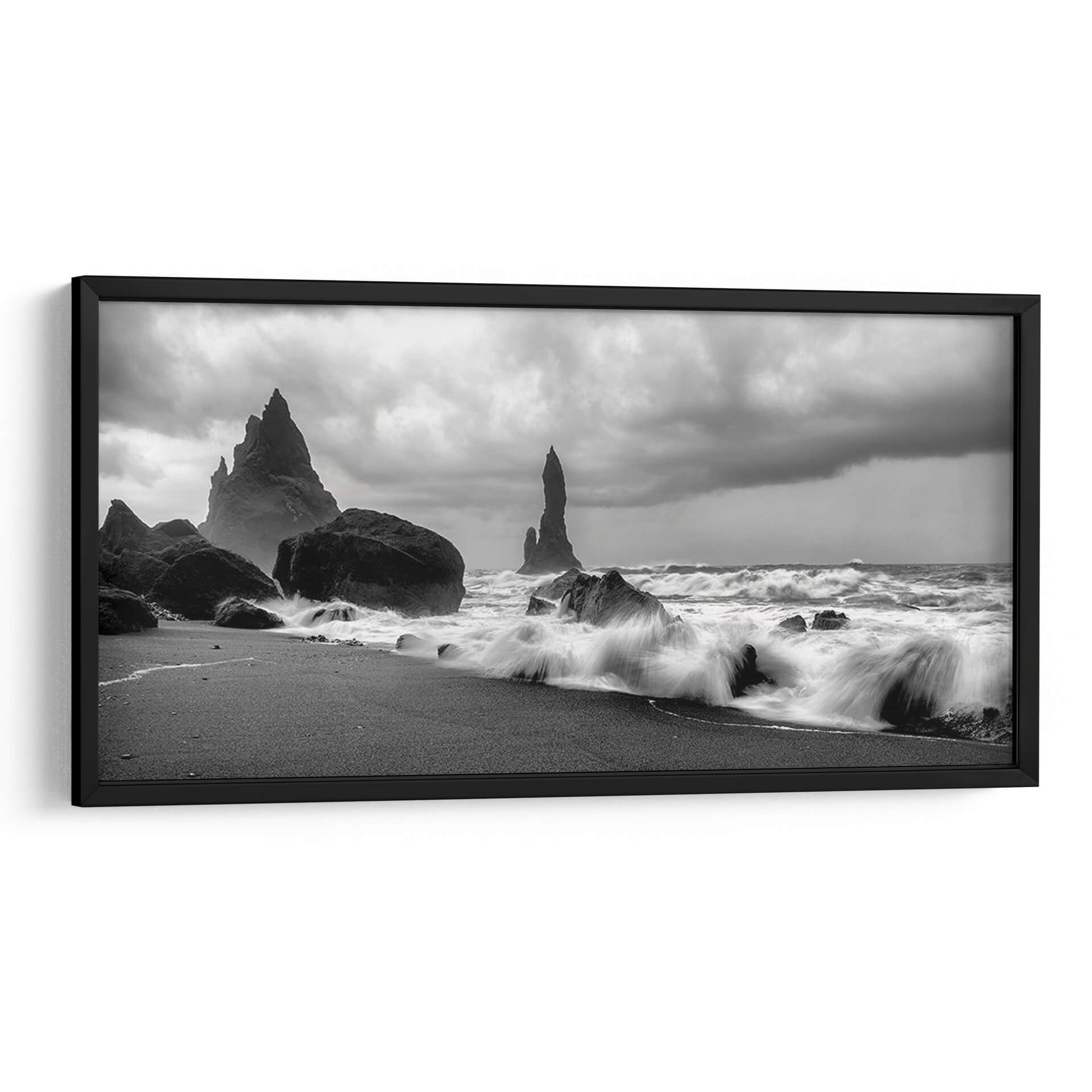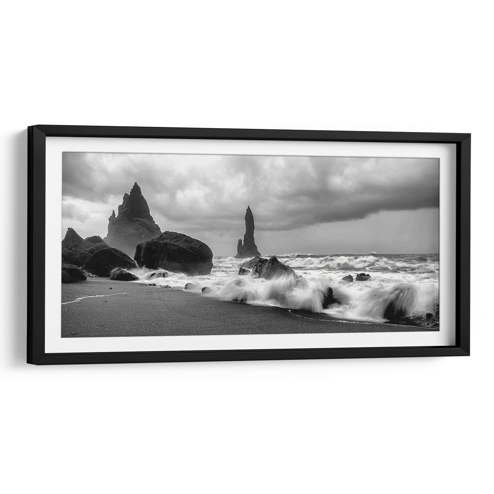 Sumérgete en la majestuosidad cruda de la naturaleza con "Arena Negra", una obra maestra fotográfica de Danny Head que captura la fuerza indomable del océano contra una costa dramática. Esta pieza en blanco y negro evoca una sensación de poder elemental y serenidad salvaje, con formaciones rocosas escarpadas elevándose majestuosamente contra un cielo nublado y olas rompientes que crean un velo etéreo de espuma. La composición, que destaca por su dramático contraste y la textura detallada de la arena oscura y las rocas, invita a la contemplación. El estilo fotográfico, con su uso magistral de la luz y la sombra, resalta la belleza atemporal de este paisaje costero. "Arena Negra" es más que una simple decoración de pared; es una ventana a un mundo de belleza natural y poder sublime, perfecta para añadir un toque de dramatismo reflexivo a cualquier espacio, ya sea una sala de estar contemporánea, un estudio introspectivo o un dormitorio tranquilo que busque inspiración en la grandiosidad del mar y la tierra. Transforma tu hogar u oficina con esta evocadora imagen que captura la esencia de un paisaje indómito.