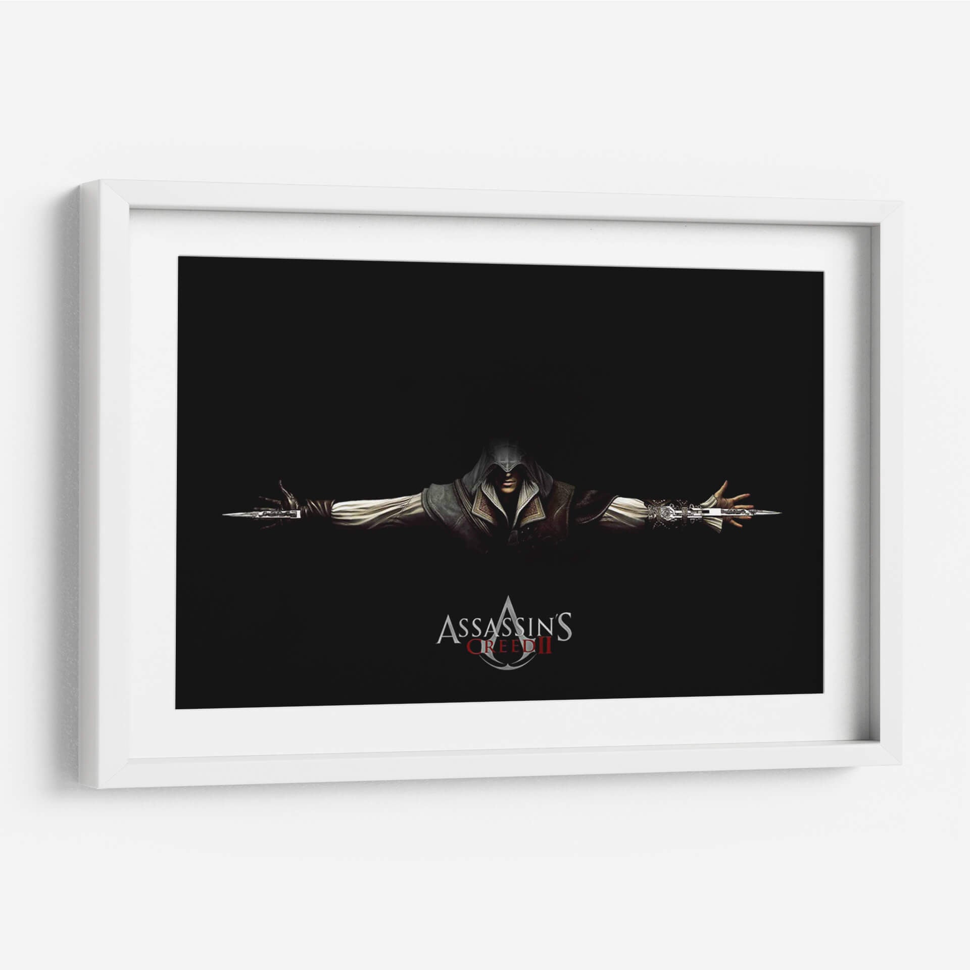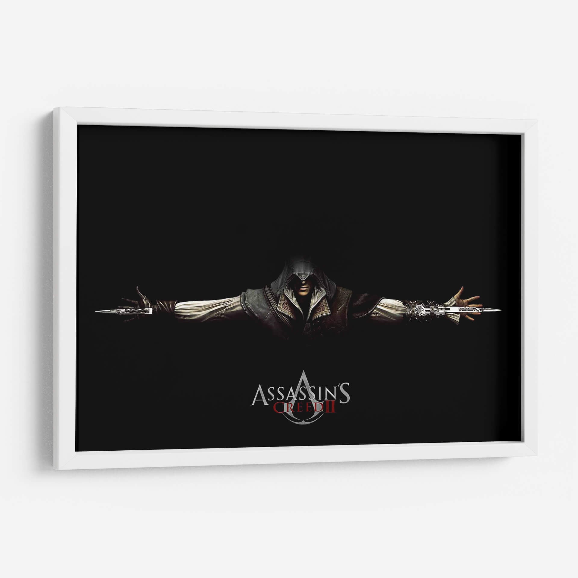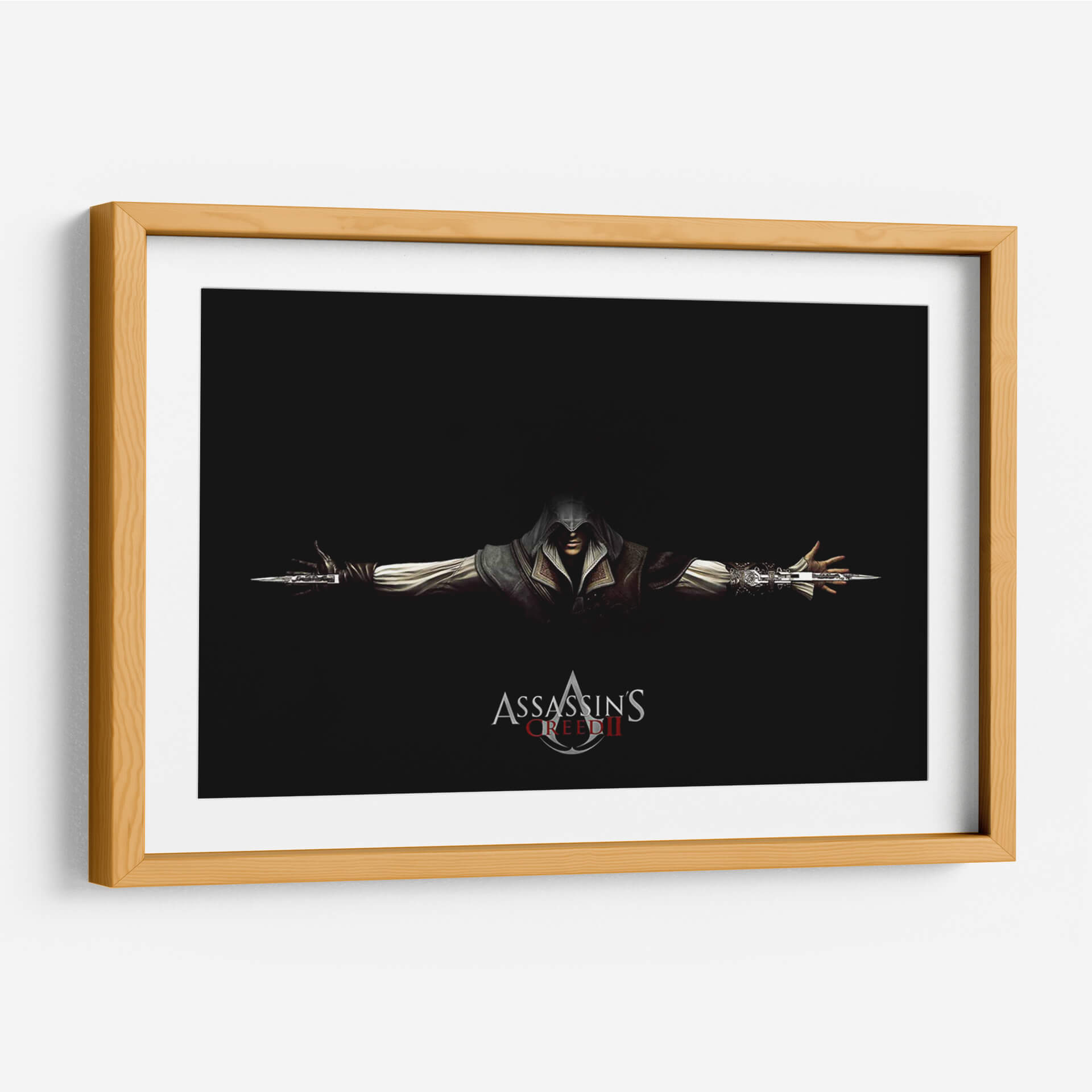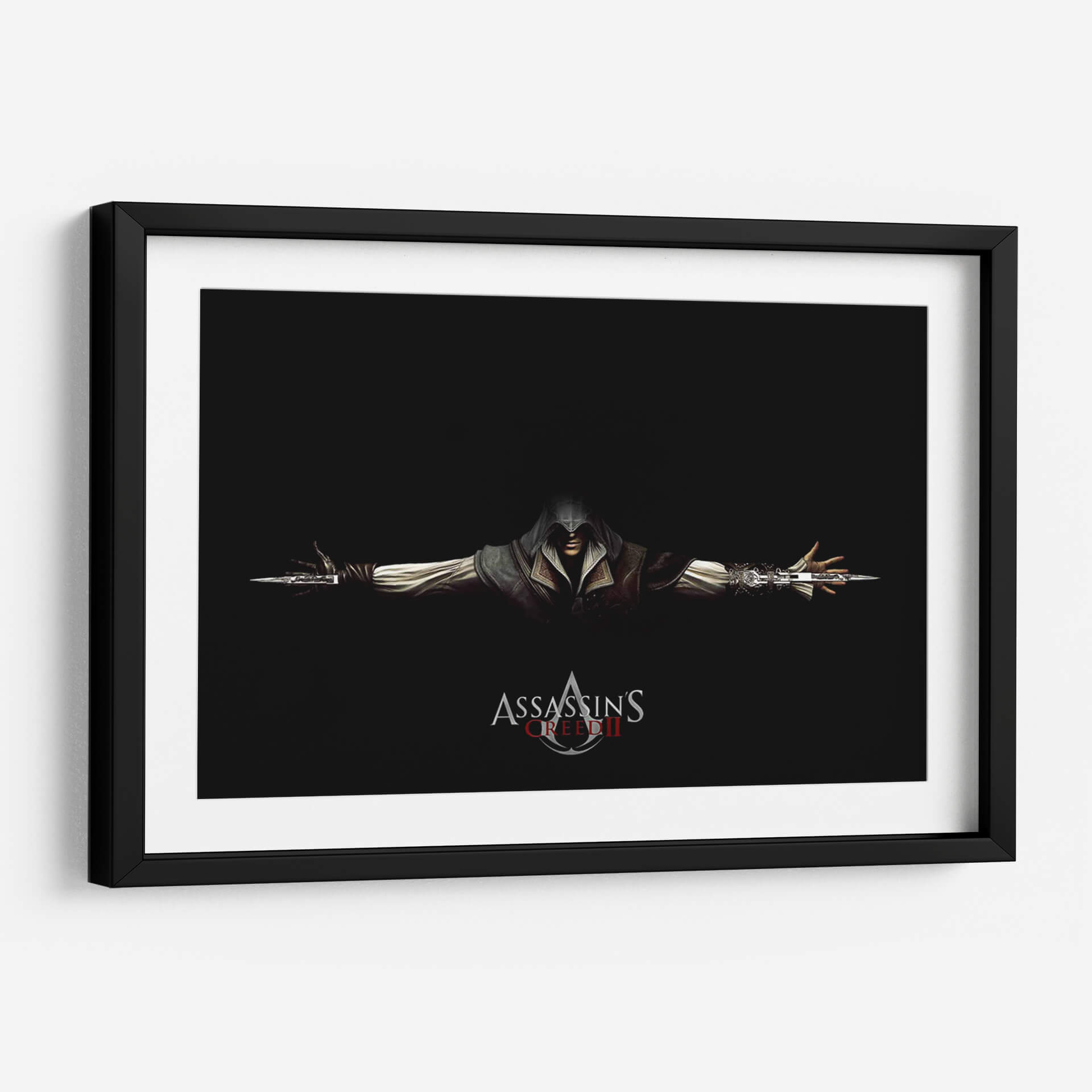 Sumérgete en el misterio y la acción con este impactante cuadro decorativo inspirado en el legendario videojuego Assassin's Creed II. La obra presenta una figura enigmática con capucha, cuyas manos extienden las icónicas dagas ocultas, listas para la acción. Predomina un fondo oscuro e intenso que resalta la figura central, creando una atmósfera de suspense y elegancia letal. Los detalles en la vestimenta, como el cuero y las telas de época, junto con los intrincados grabados de las dagas, aportan un realismo cautivador. La paleta de colores, dominada por negros profundos y sutiles toques de luz en la piel y las armas, intensifica el drama y la intriga de la escena. Este cuadro es una pieza central perfecta para cualquier aficionado a la saga, aportando un toque de sofisticación oscura y aventura a salas de estar, estudios o áreas de entretenimiento. Ideal para quienes buscan una decoración audaz y con carácter que evoque historia, sigilo y legendarios enfrentamientos. Transforma tu espacio con la esencia de una de las aventuras más aclamadas, capturando la dualidad entre el arte y la letalidad.