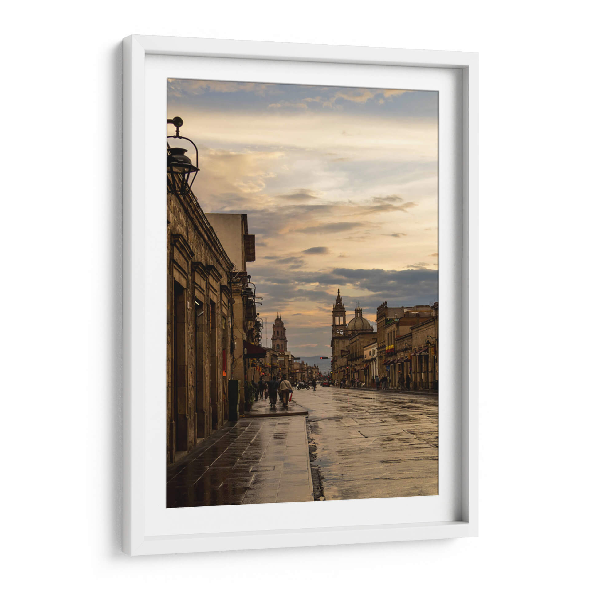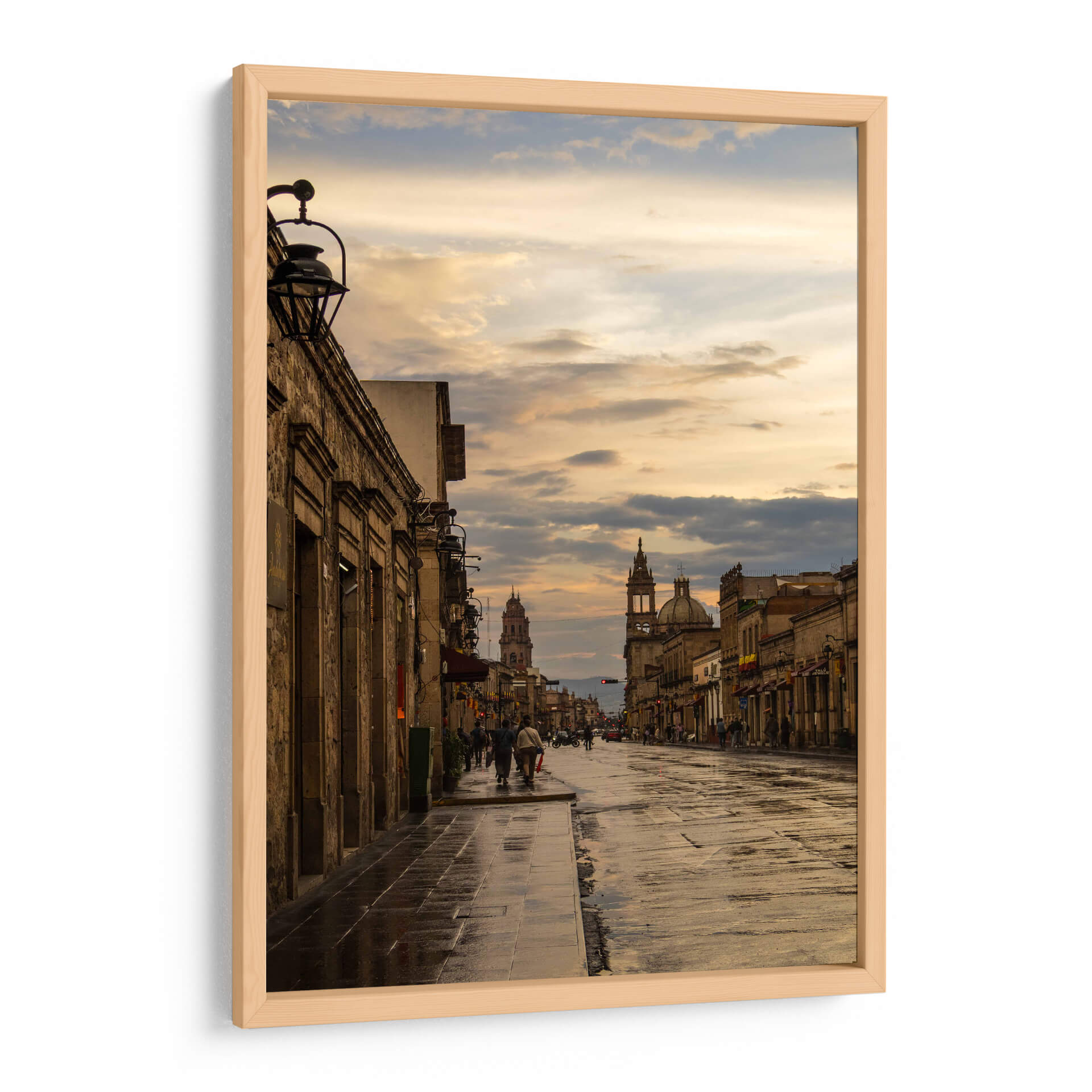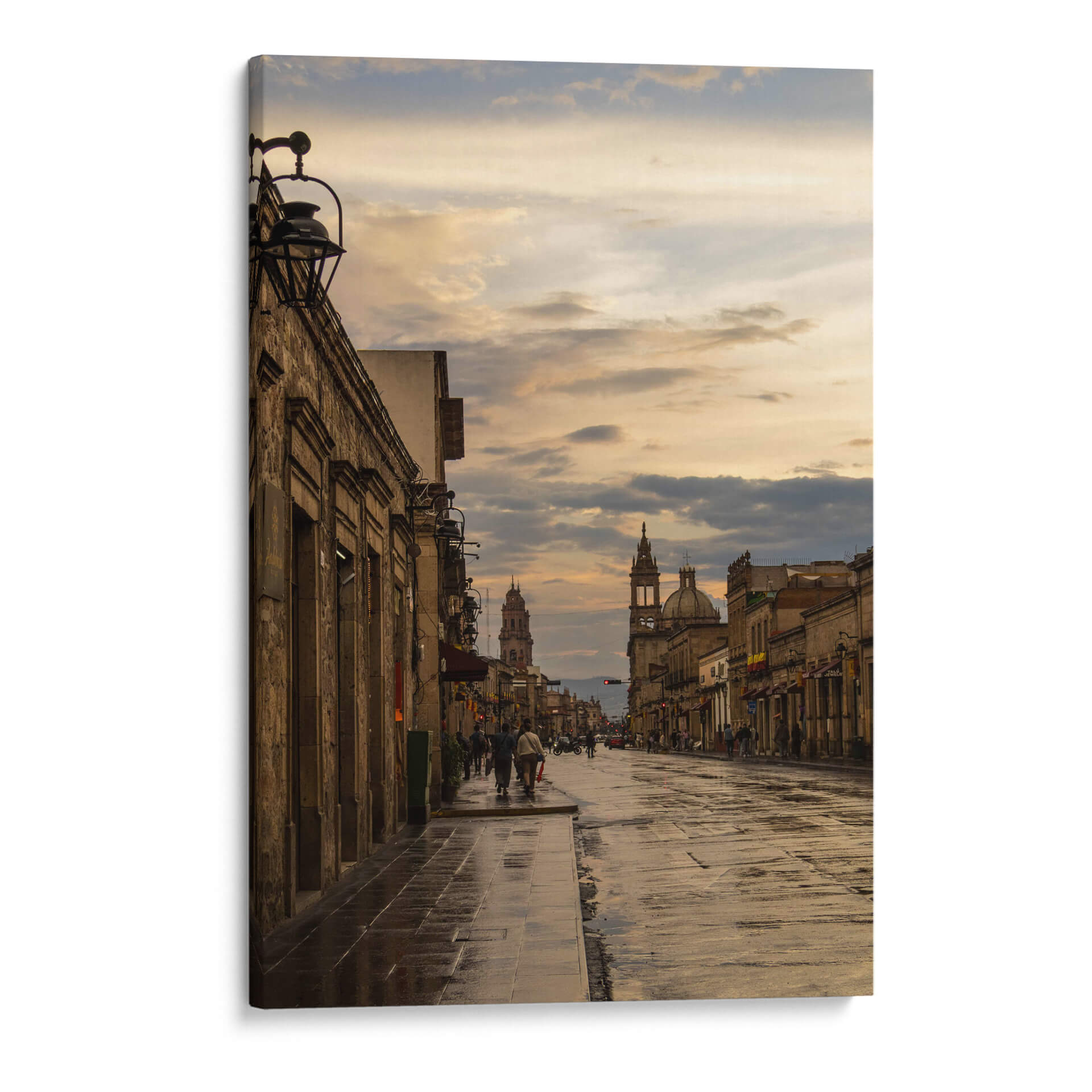 Atardecer en la Avenida Madero de Morelia después de la lluvia – Vista de calle histórica con reflejos. - Nosion