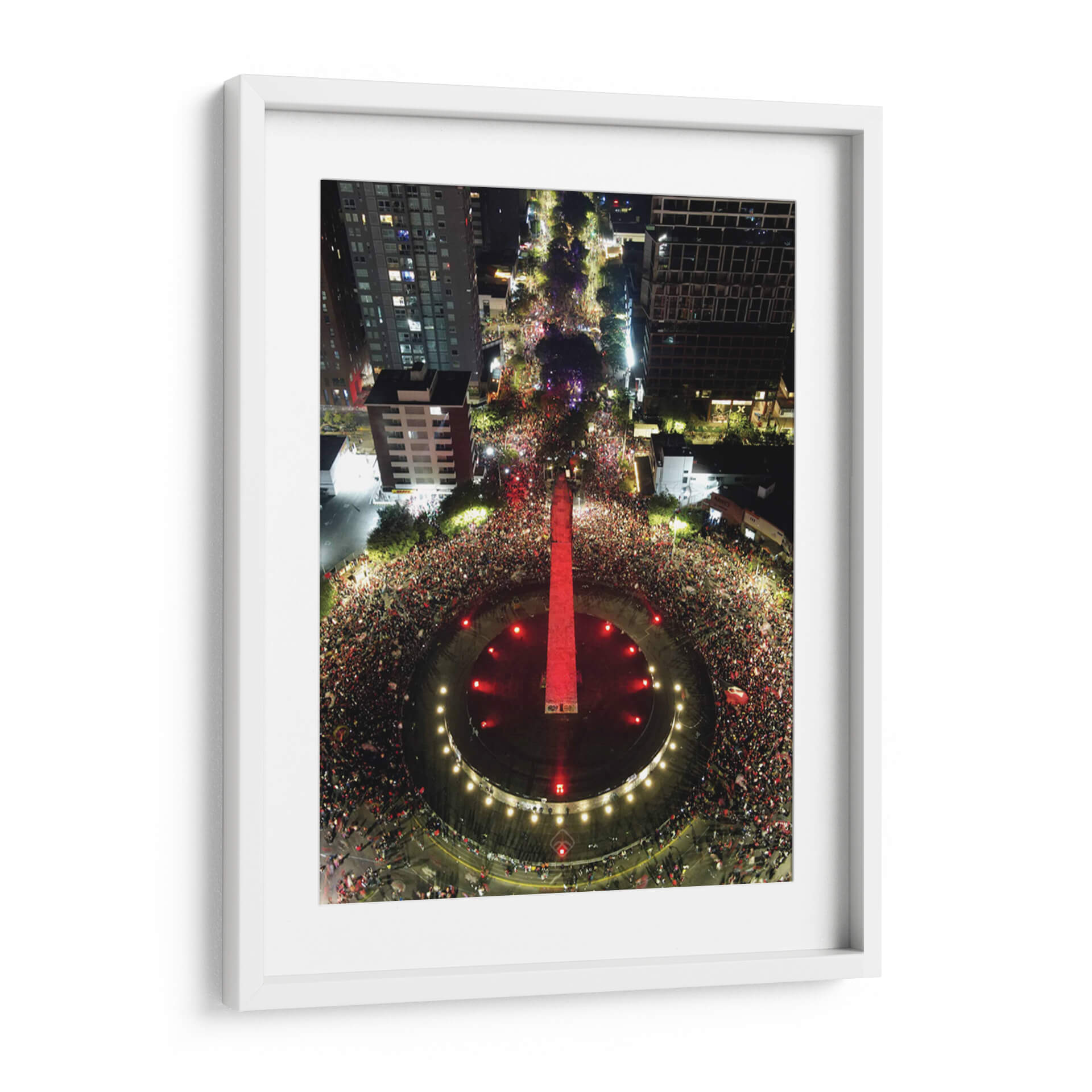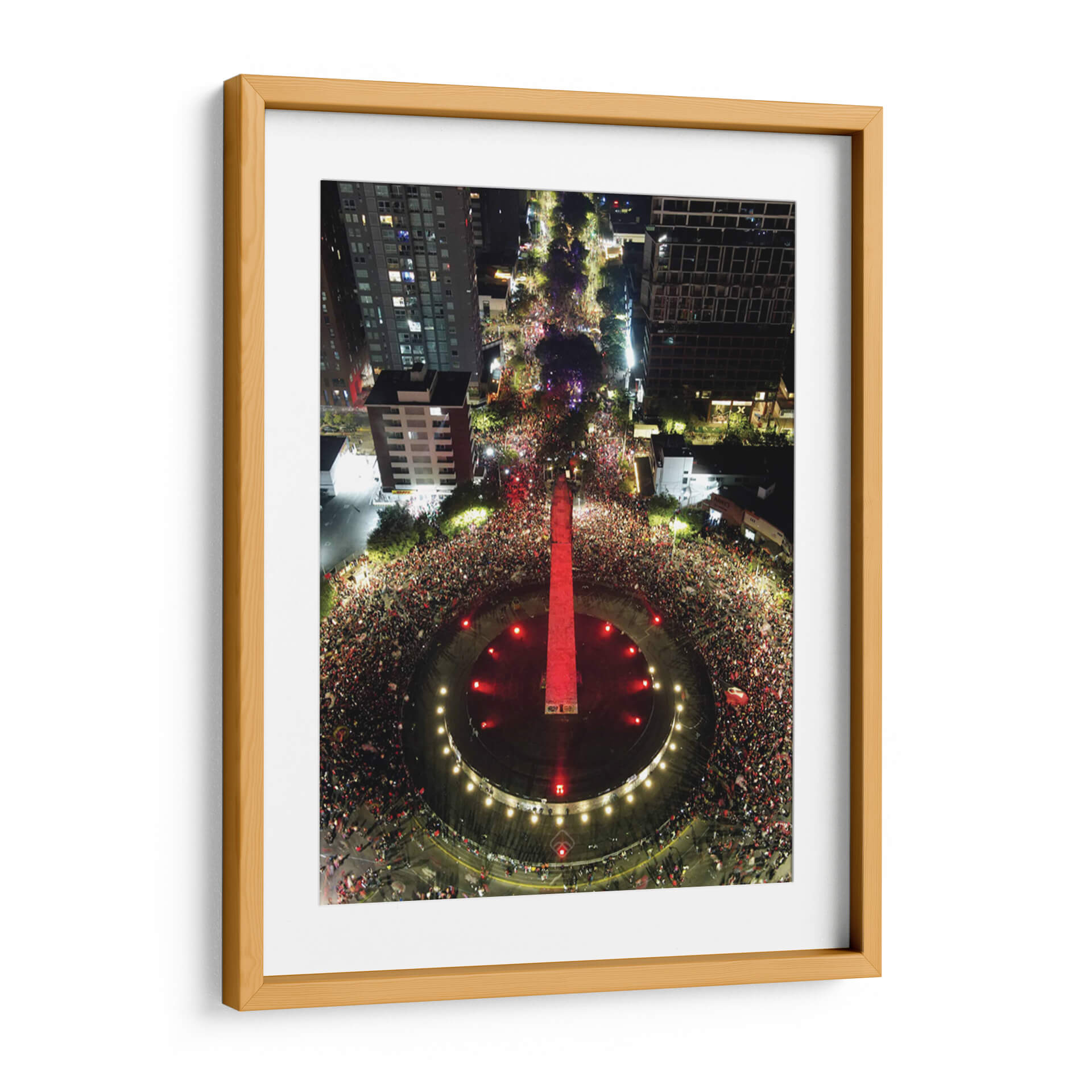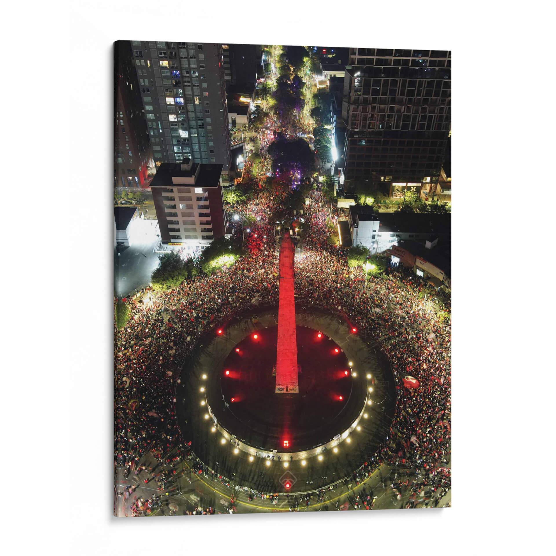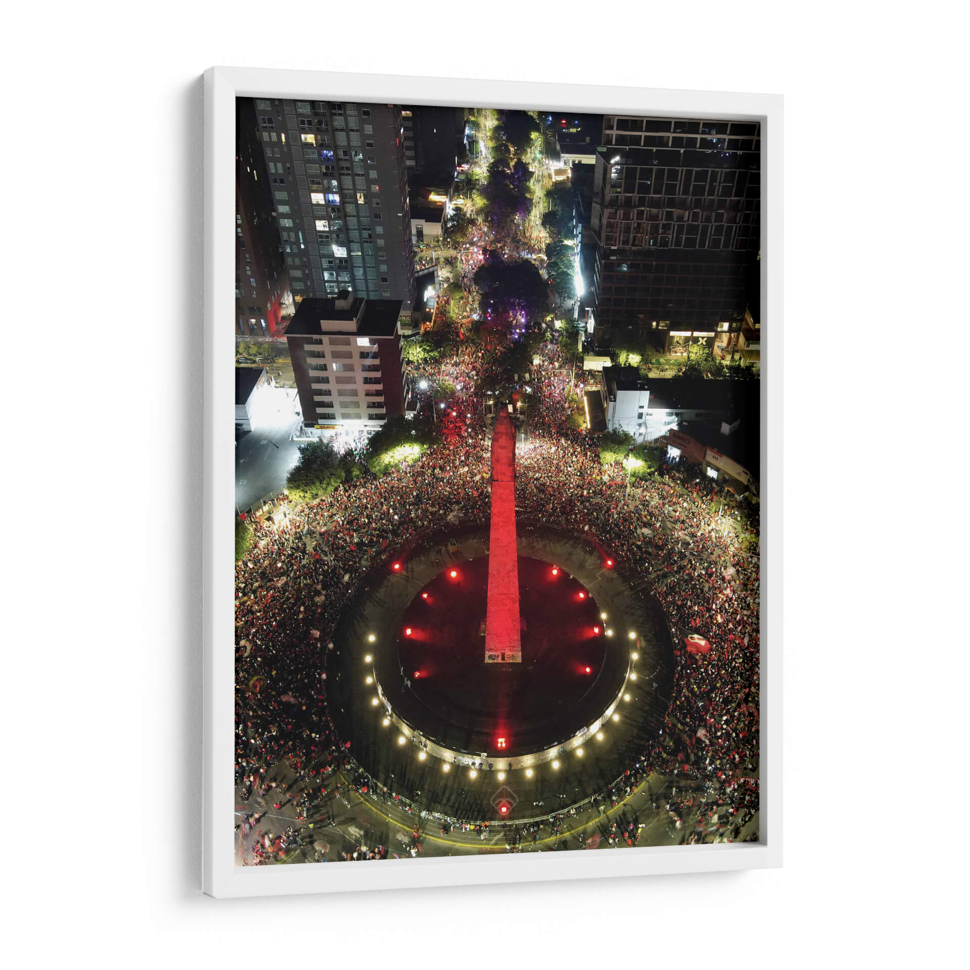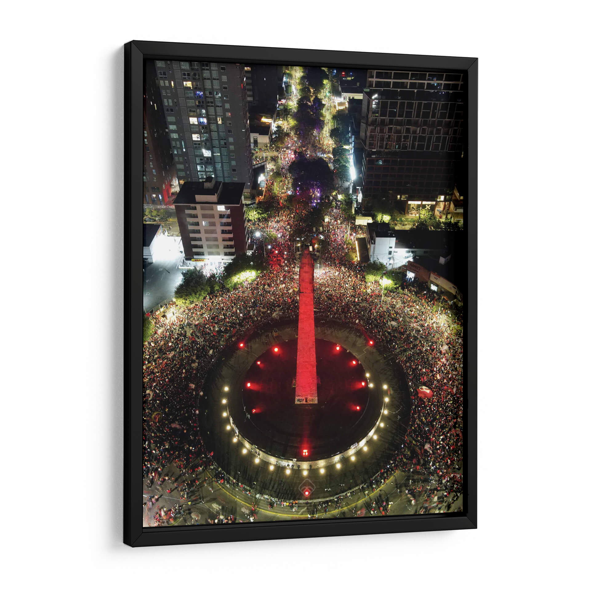 Captura la energía vibrante de la ciudad con "Atlas Campeón", una obra de arte que inmortaliza un momento de fervor colectivo. Esta pieza visualmente impactante, capturada desde una perspectiva aérea nocturna, muestra una multitud masiva congregada alrededor de un monumento icónico, bañada por la luz artificial que resalta el dinamismo de la escena. Los colores predominantes, entre el rojo intenso de la concentración humana y las luces urbanas que pintan el cielo nocturno, crean un contraste dramático que invita a la reflexión sobre la fuerza y el poder de la unión. El detallado panorama urbano, con edificios modernos y la extensión de la urbe, contextualiza la magnitud del evento. "Atlas Campeón" es más que un simple cuadro decorativo; es una ventana a momentos trascendentales y a la atmósfera electrizante de una metrópoli vibrante. Su estilo fotográfico, con un enfoque realista pero cargado de emoción, la convierte en una pieza ideal para salas de estar, oficinas o espacios que buscan inspirar y generar conversación. Añade un toque de historia y pasión a tu decoración con este impresionante cuadro decorativo, perfecto para quienes aprecian el arte urbano y los momentos de gran significado social.