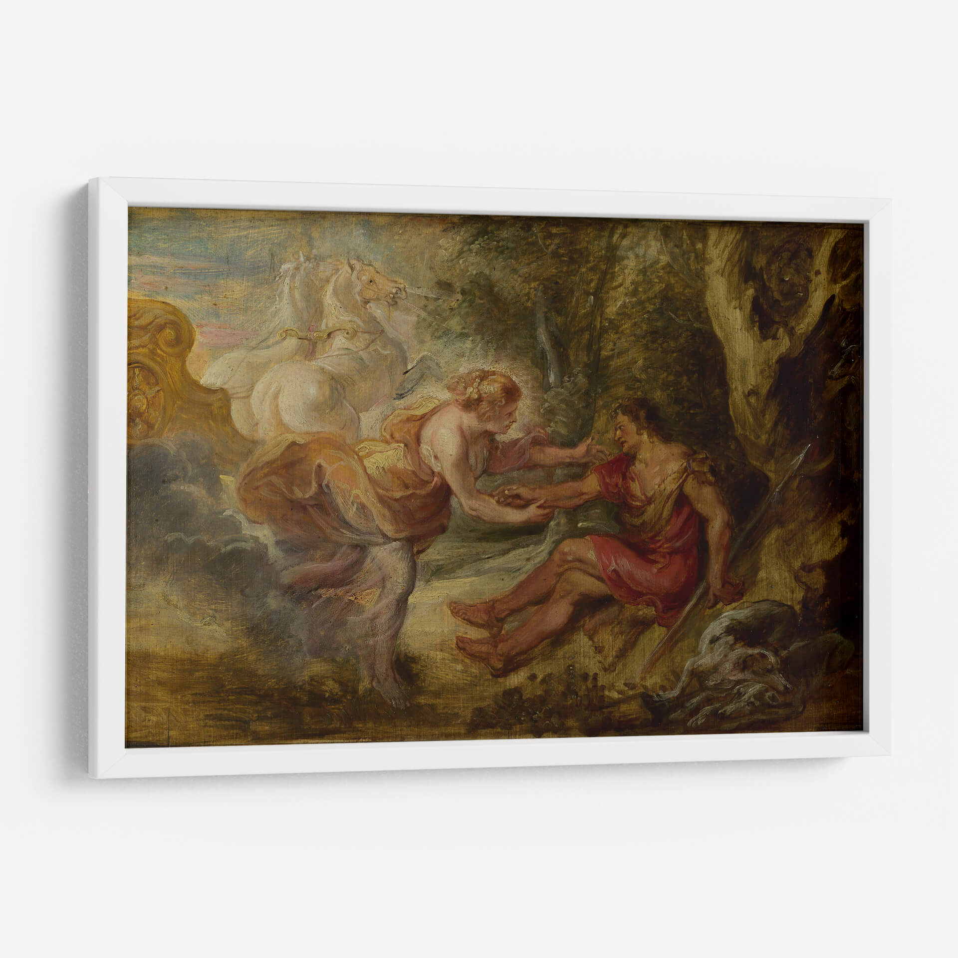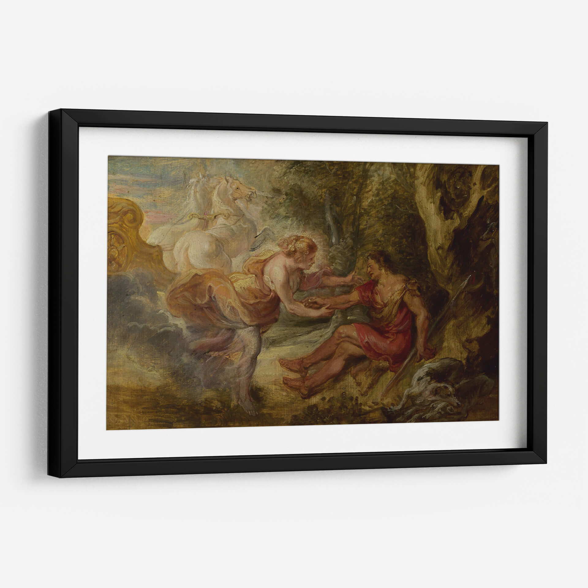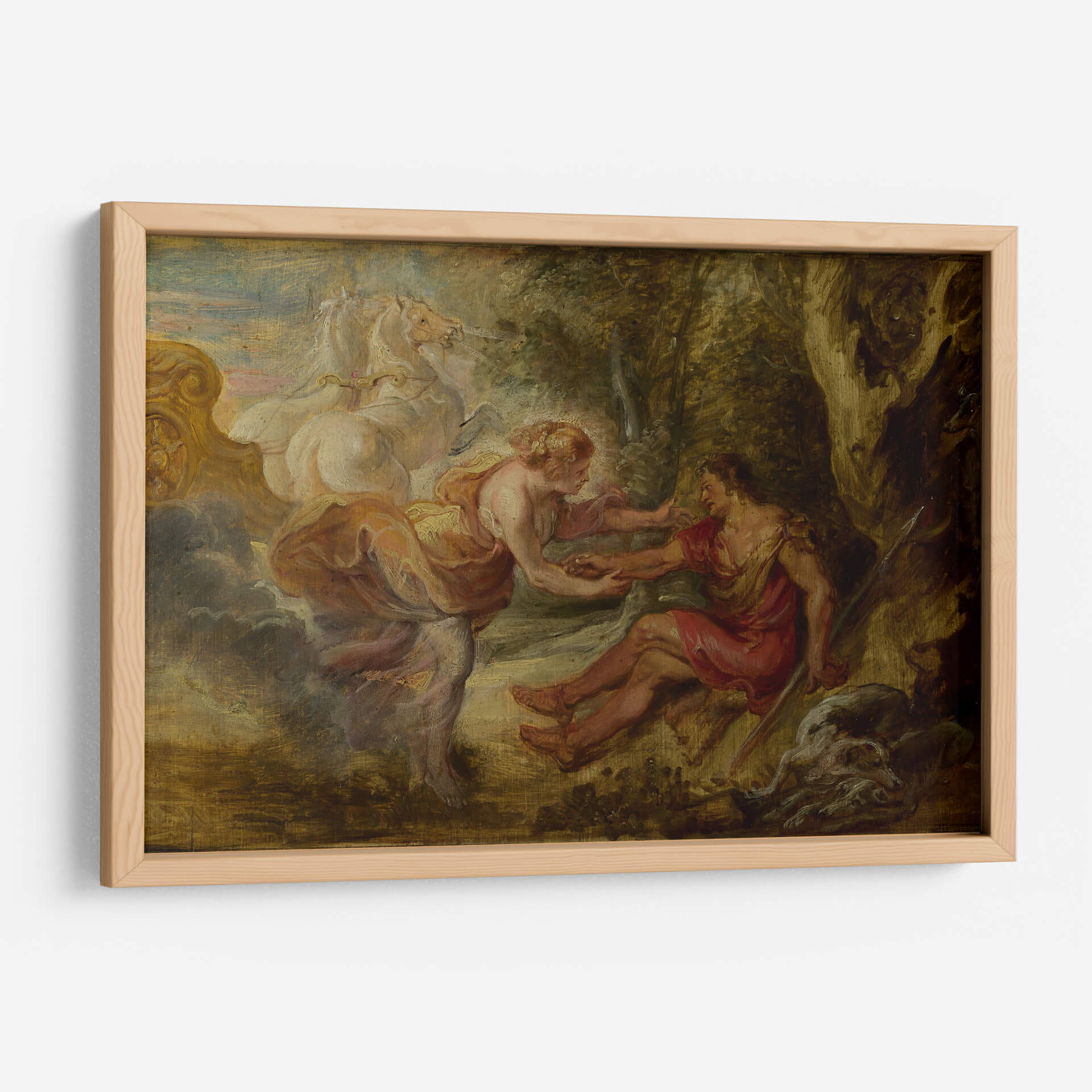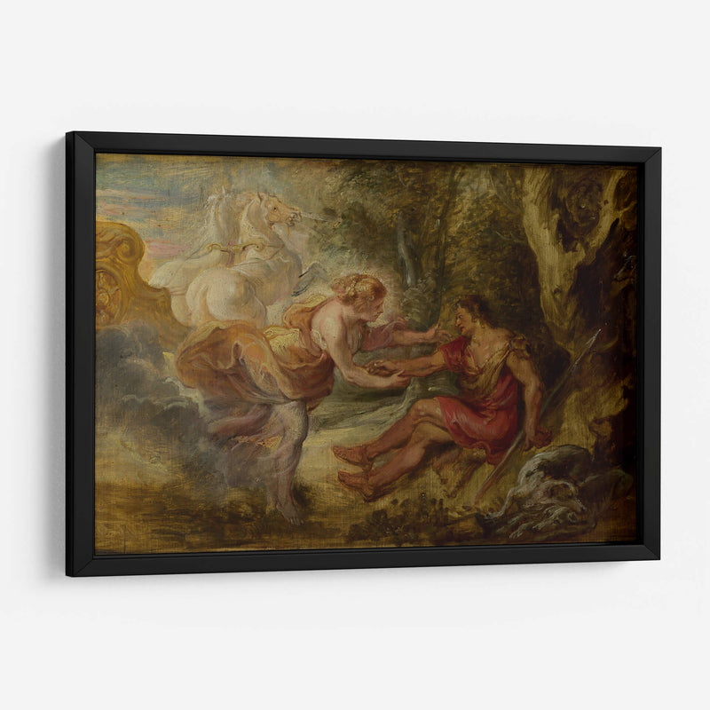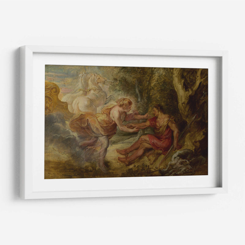 Sumérgete en la mitología clásica con este cautivador cuadro decorativo que representa la obra maestra "Aurora raptando a Céfalo" de Peter Paul Rubens. Esta pieza, llena de movimiento y dramatismo, captura el instante en que la diosa del amanecer se lleva al mortal Céfalo. La vibrante paleta de colores, con tonos cálidos y terrosos que contrastan con el blanco etéreo de los caballos y el cielo, crea una atmósfera de tensión y pasión. Las figuras musculosa y la composición dinámica evocan la energía característica del Barroco, invitando a la contemplación de la fuerza y la belleza de la naturaleza y la intervención divina. Este cuadro decorativo es ideal para añadir un toque de historia y arte clásico a cualquier espacio, desde una sala de estar elegante hasta un estudio privado o una oficina que busque inspirar grandeza. Su riqueza visual y narrativa lo convierten en un punto focal impresionante, capaz de dialogar con decoraciones tradicionales y modernas, aportando profundidad y un sentido de lo sublime al ambiente.