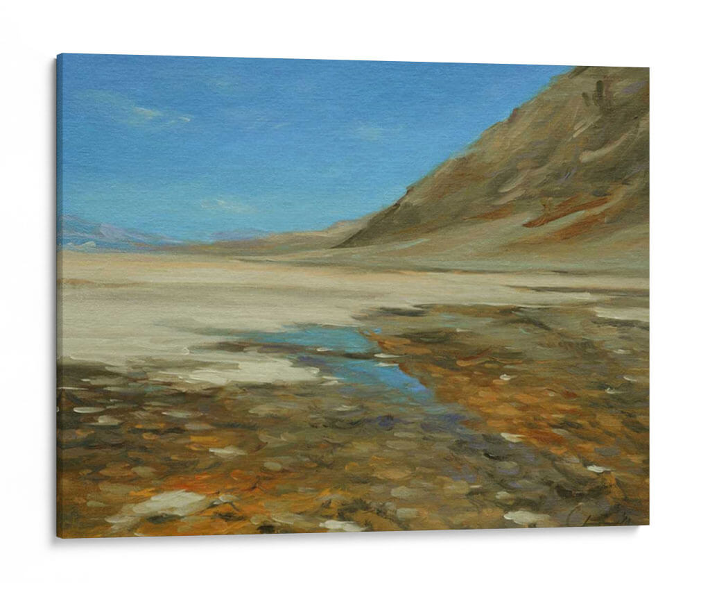 Sumérgete en la vastedad y la belleza austera de "Badwater Cuenca, Valle de la Muerte" de Chuck Larivey, un cuadro decorativo que captura la esencia de un paisaje desértico único. Esta obra evoca una profunda sensación de tranquilidad y contemplación, transportándote a un lugar de paz y reflexión. La paleta de colores, dominada por tonos tierra, ocres y azules celestes, crea una atmósfera serena y a la vez poderosa. Las texturas sugeridas por la pincelada invitan a explorar la profundidad de la escena, desde las formaciones montañosas hasta los reflejos del agua en el suelo salino. Ideal para añadir un toque de serenidad y sofisticación a tu sala de estar, oficina o dormitorio, este cuadro decorativo es una pieza que invita a la pausa y al asombro. Su estilo pictórico contemporáneo, con toques de realismo impresionista, lo convierte en un punto focal cautivador que complementa cualquier decoración interior, desde la más minimalista hasta la más ecléctica. Transforma tu espacio con la magia del desierto capturada en esta impresionante obra de arte.