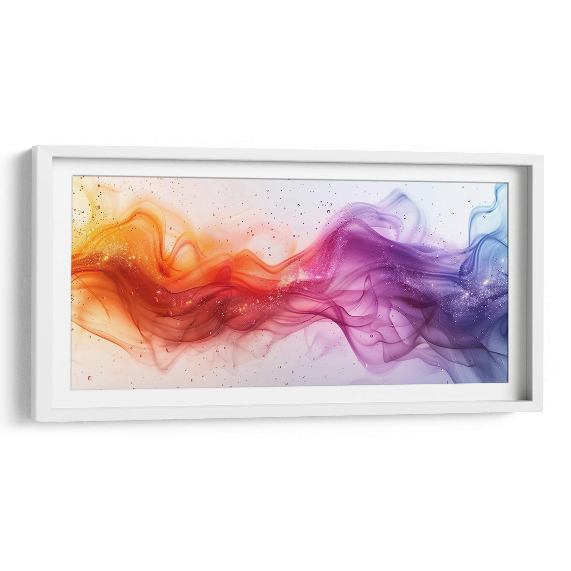 Sumérgete en la serenidad y el dinamismo de 'Bajo el agua', una obra de arte abstracta de Cecilia Flores. Este cuadro decorativo captura la fluidez etérea de las corrientes submarinas, manifestándose en una cascada de colores vibrantes que transitan del cálido naranja y rojo al frío púrpura y azul. La composición, adornada con delicadas motas que evocan burbujas o destellos de luz, crea una sensación de profundidad y movimiento hipnotizante. Las texturas suaves y las líneas sinuosas invitan a la contemplación, transformando cualquier espacio en un oasis de calma y sofisticación. Ideal para añadir un toque de color y vida a tu sala de estar, dormitorio u oficina, este cuadro abstracto contemporáneo es perfecto para quienes buscan una pieza que combine elegancia y una conexión emocional profunda. Su diseño versátil se adapta a decoraciones modernas, minimalistas o eclécticas, aportando un aire de frescura y vitalidad. Descubre la magia de las profundidades con esta cautivadora creación artística que transformará tu hogar.